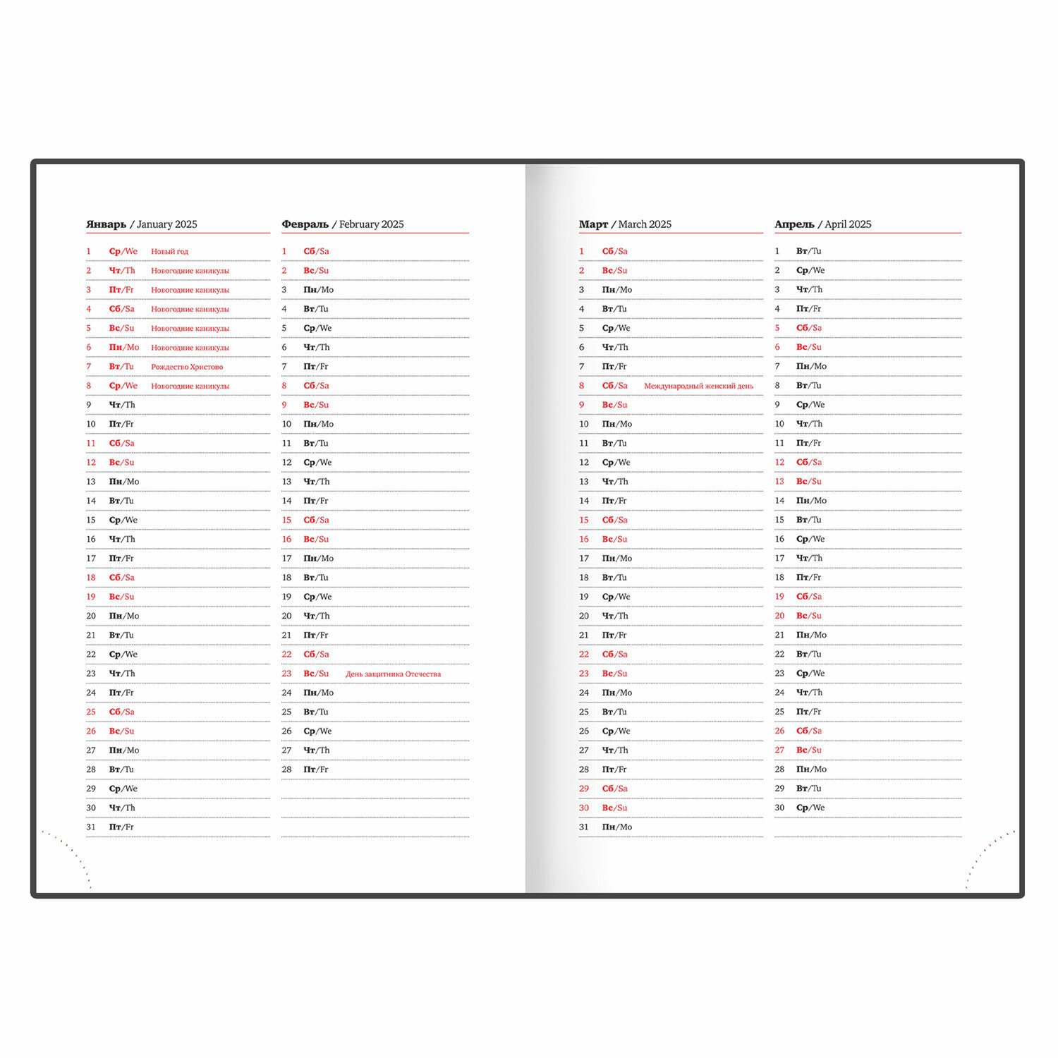 | Тип ежедневника | датированный |