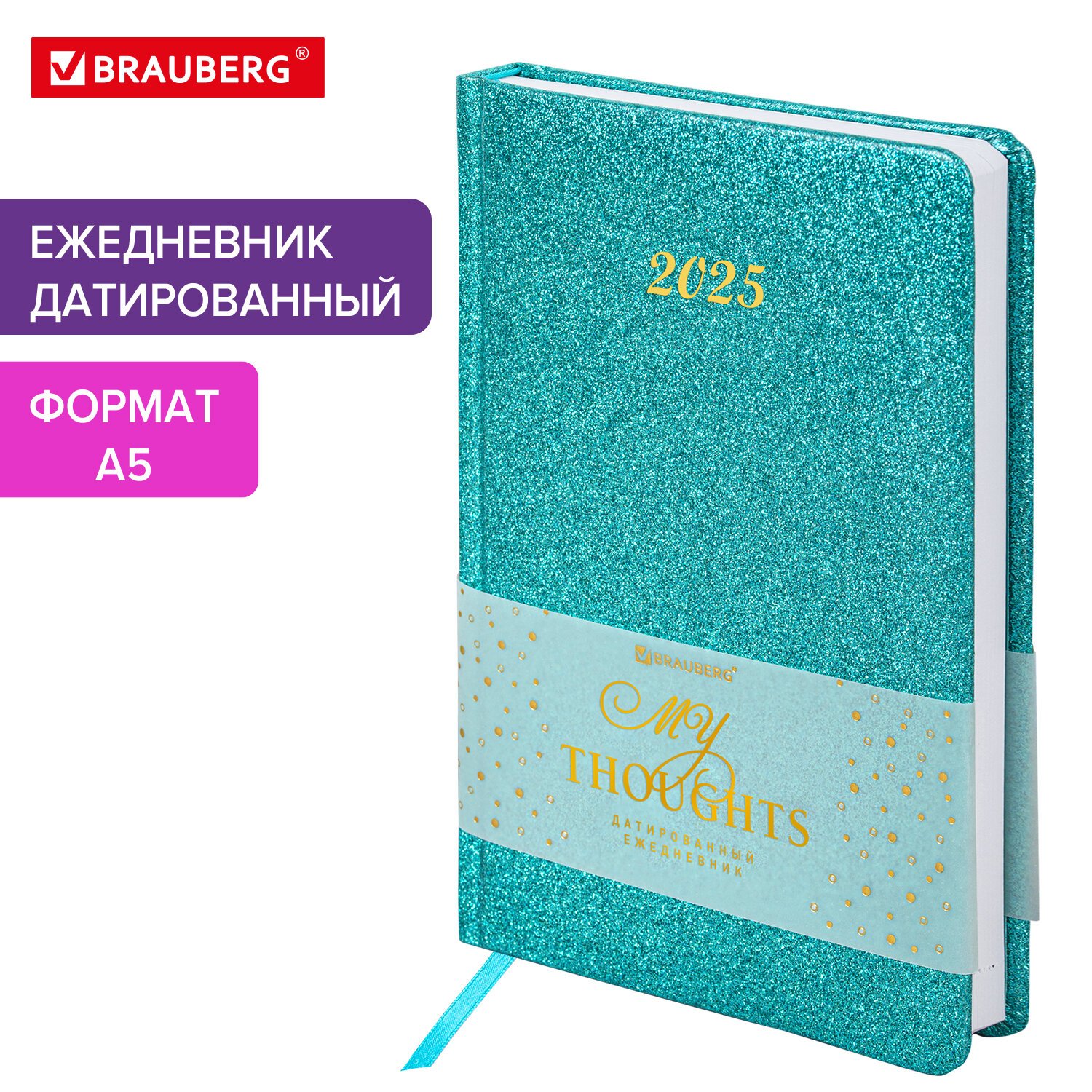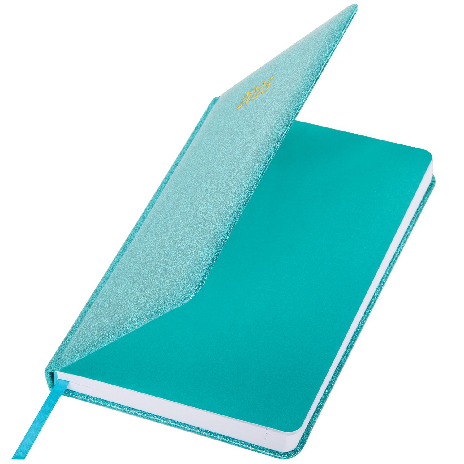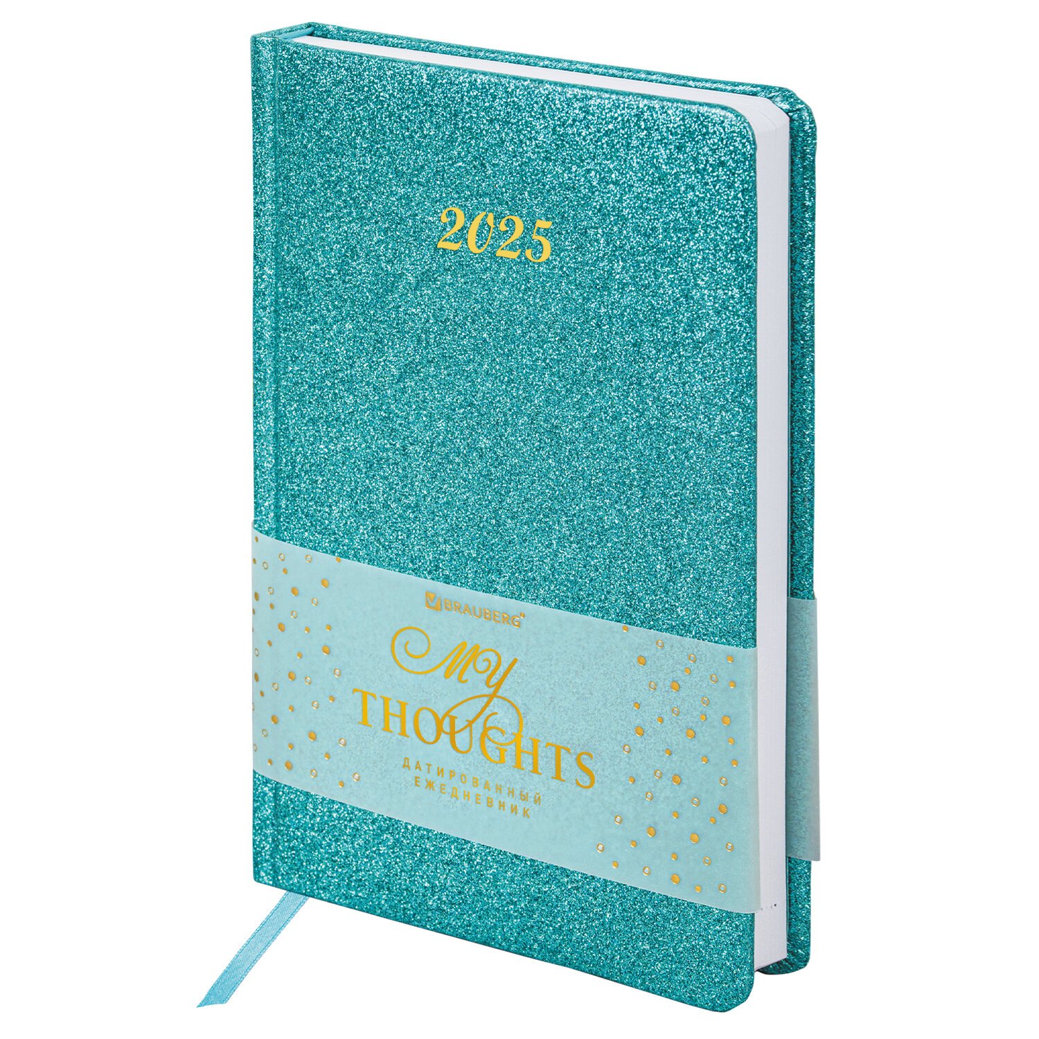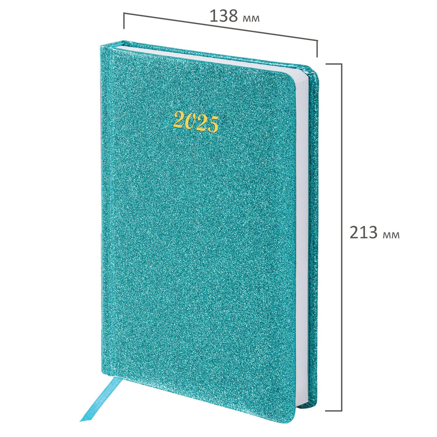 Ежедневник датированный 2025, А5, 138x213 мм, BRAUBERG "Sparkle", под кожу, блестки, бирюзовый, 115856