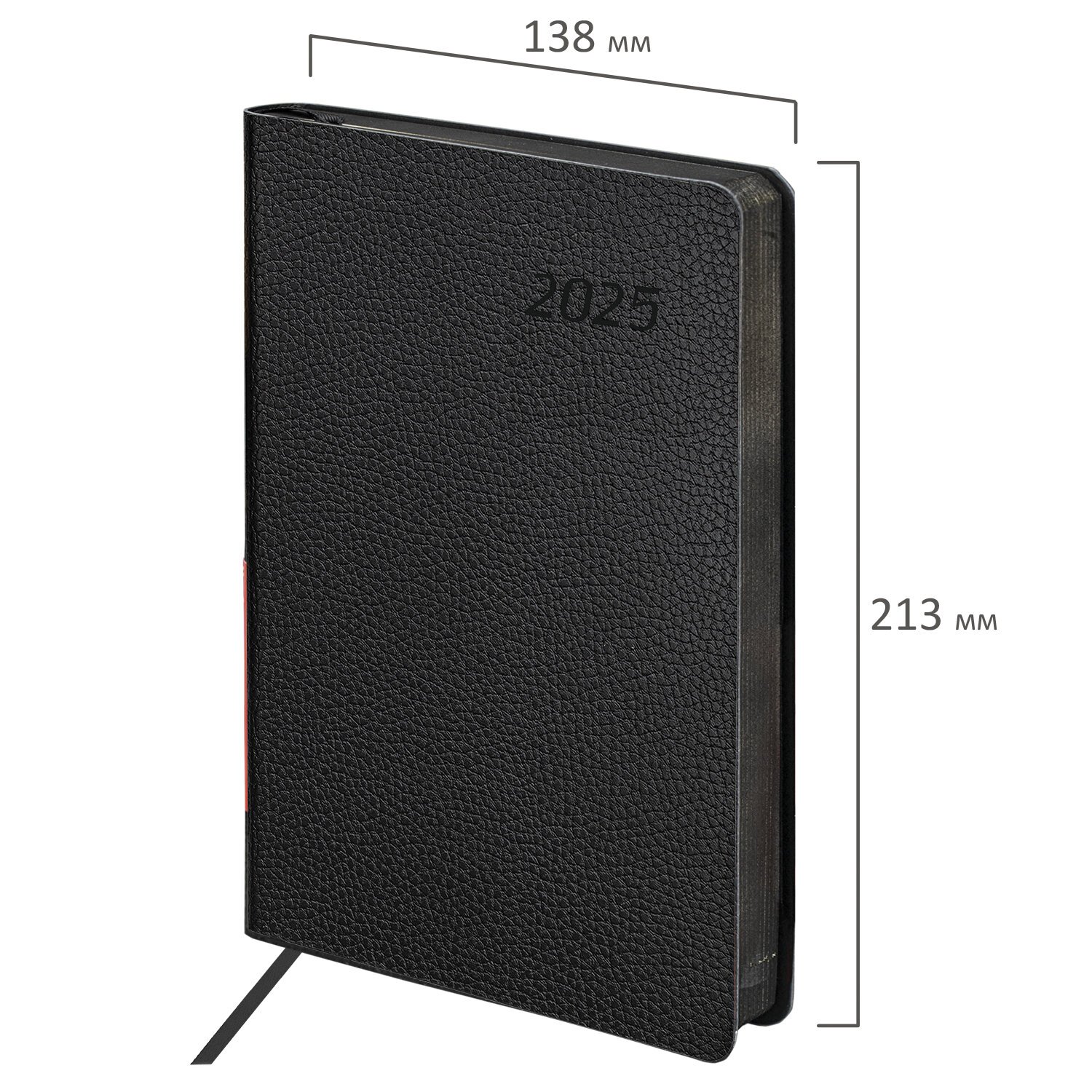Ежедневник датированный 2025, А5, 138x213 мм, BRAUBERG "Stylish", под кожу гибкий, черный, 115820