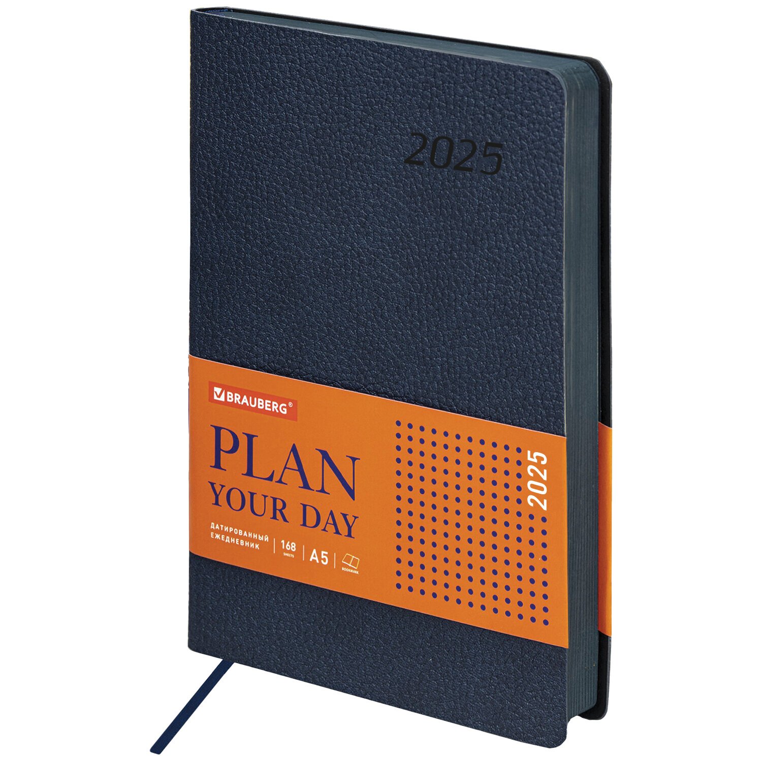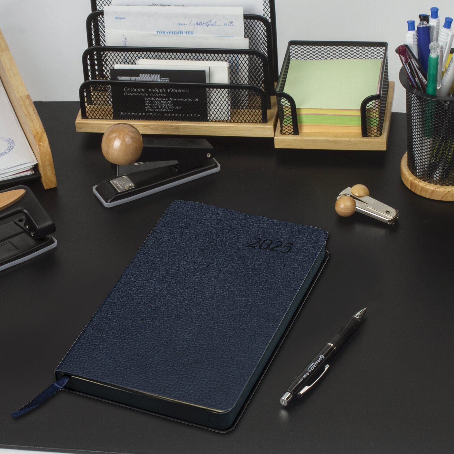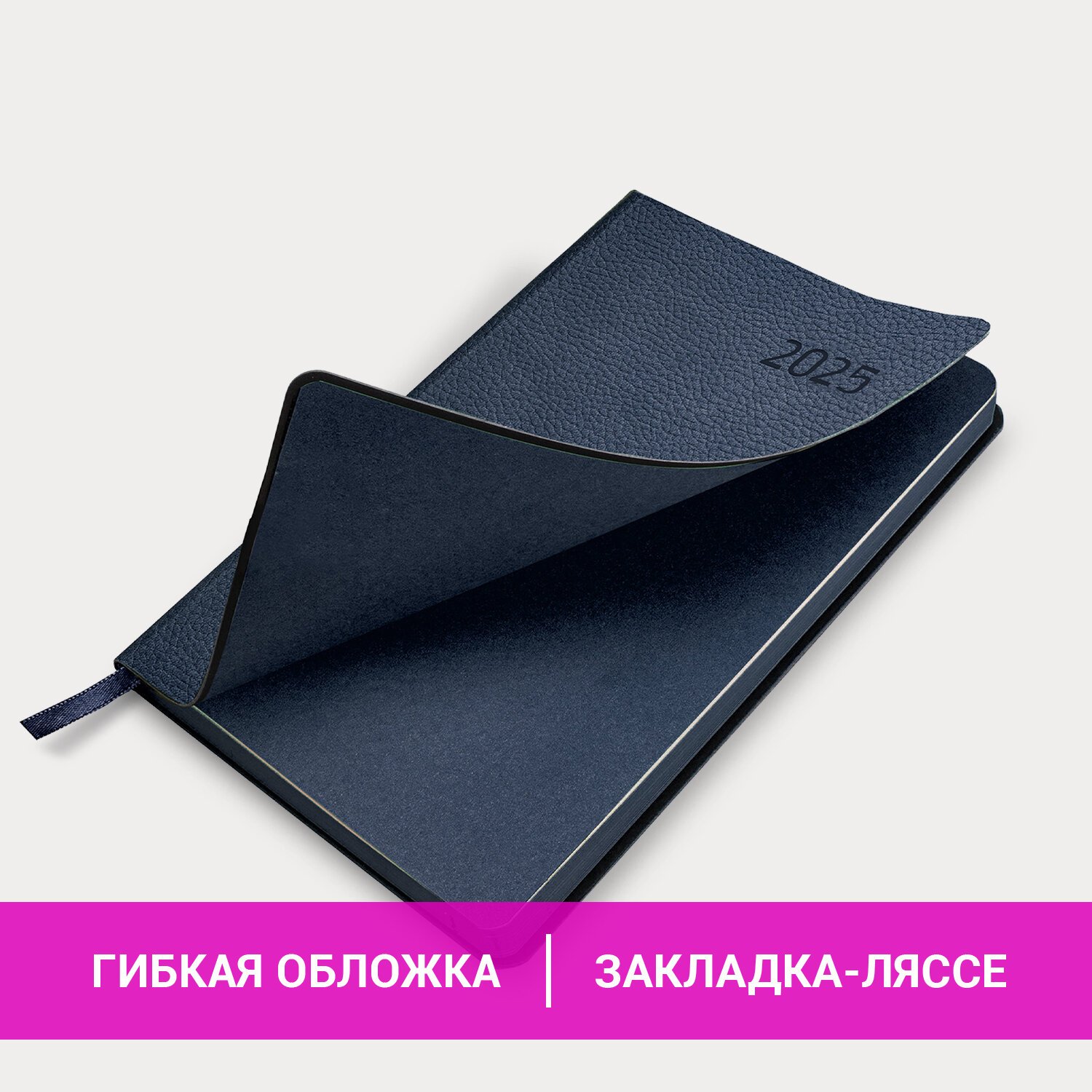 Ежедневник датированный 2025, А5, 138x213 мм, BRAUBERG "Stylish", под кожу гибкий, темно-синий, 115821