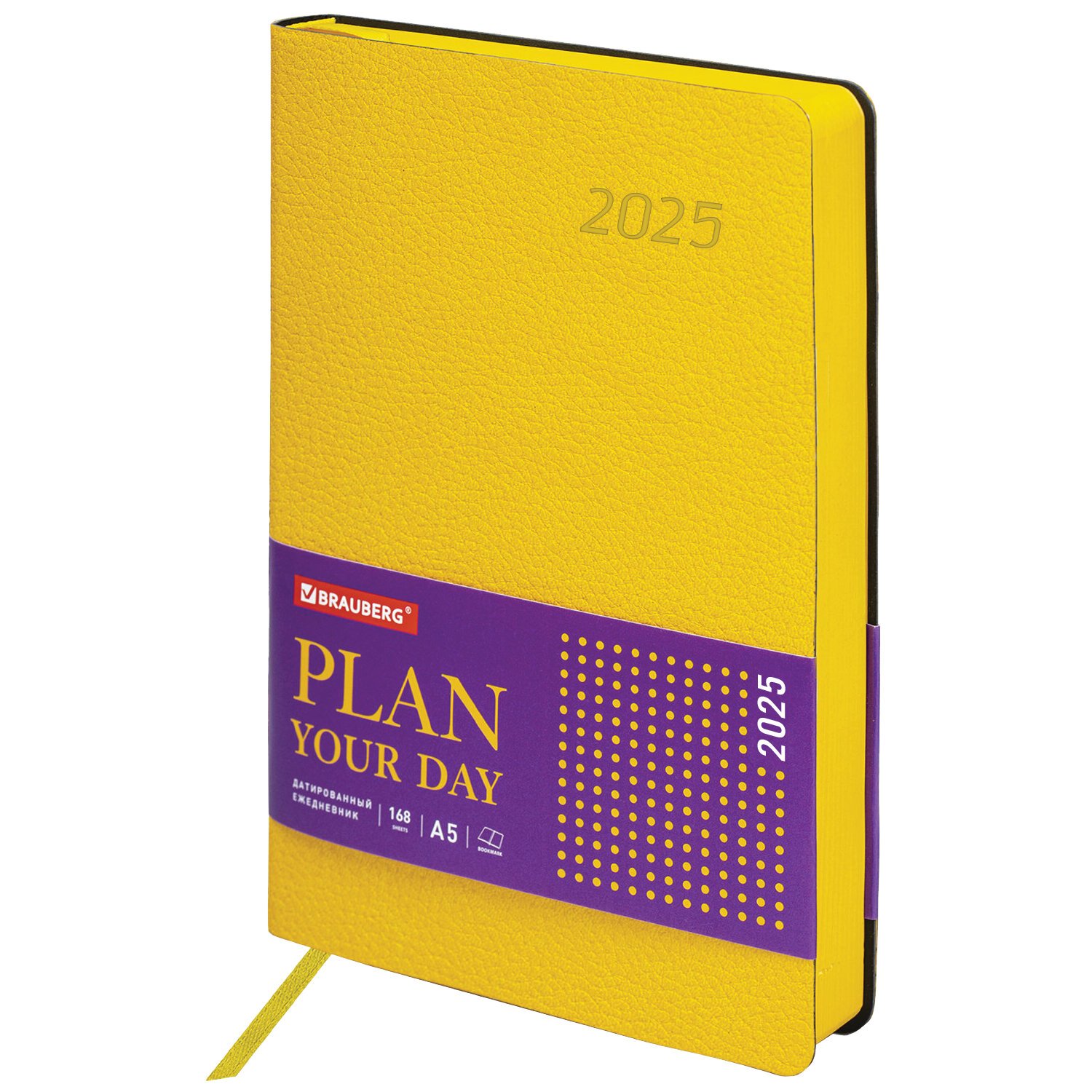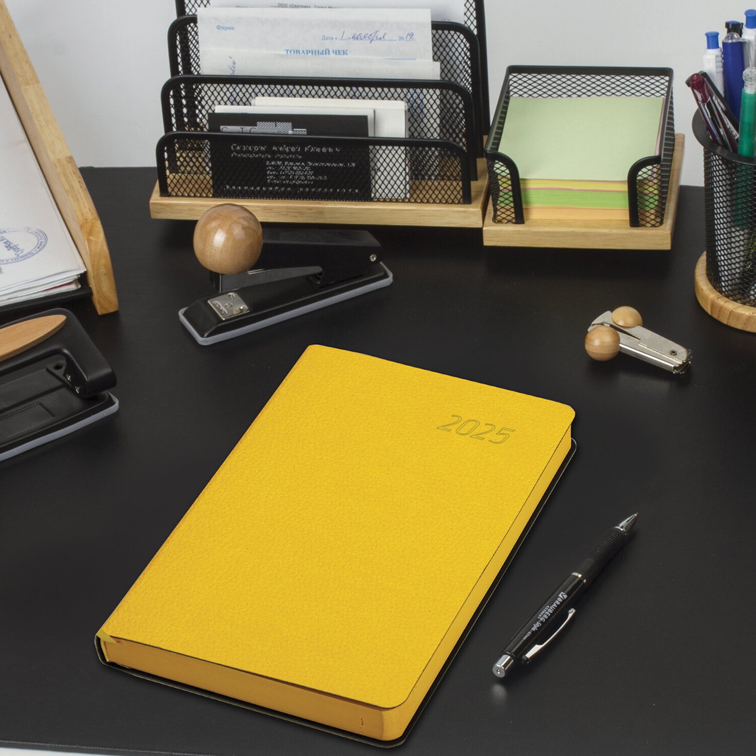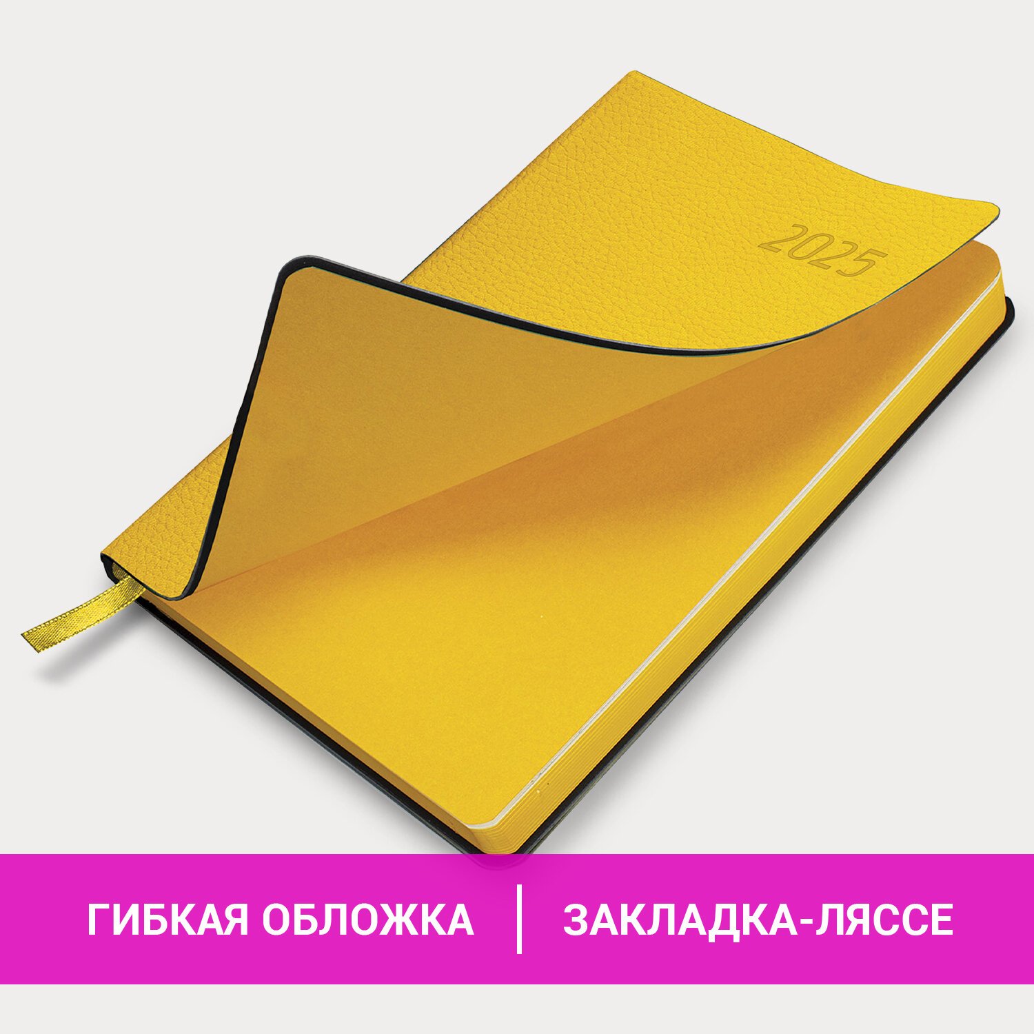 Ежедневник датированный 2025, А5, 138x213 мм, BRAUBERG "Stylish", под кожу гибкий, желтый, 115825