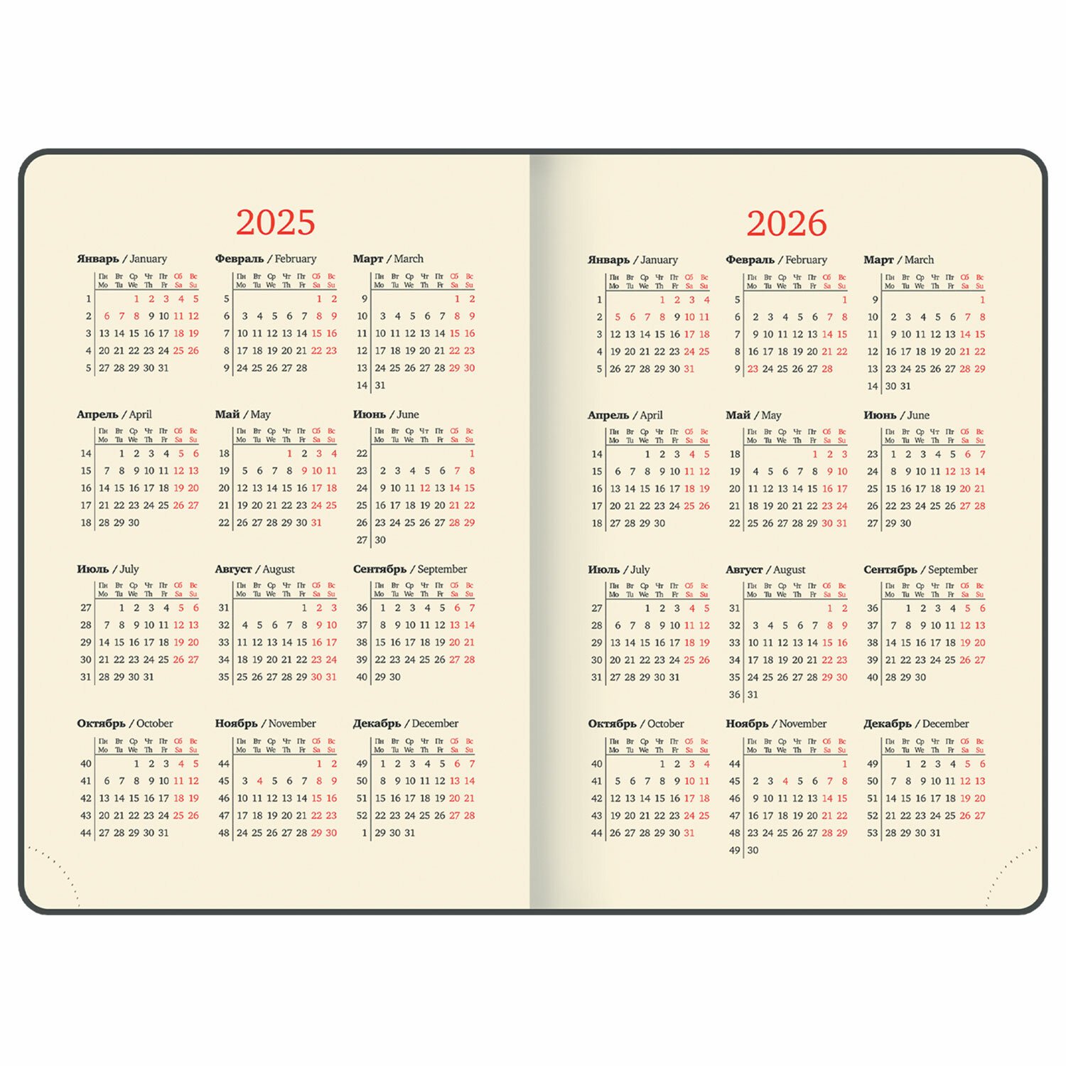 Внутренний блок включает 168 листов тонированной бумаги плотностью 70 г/м2. Каждая страничка имеет перфорированный угол. Благодаря стандартному формату А5 (138х213 мм) ежедневник удобно использовать как в офисе, так и на выездных деловых встречах.