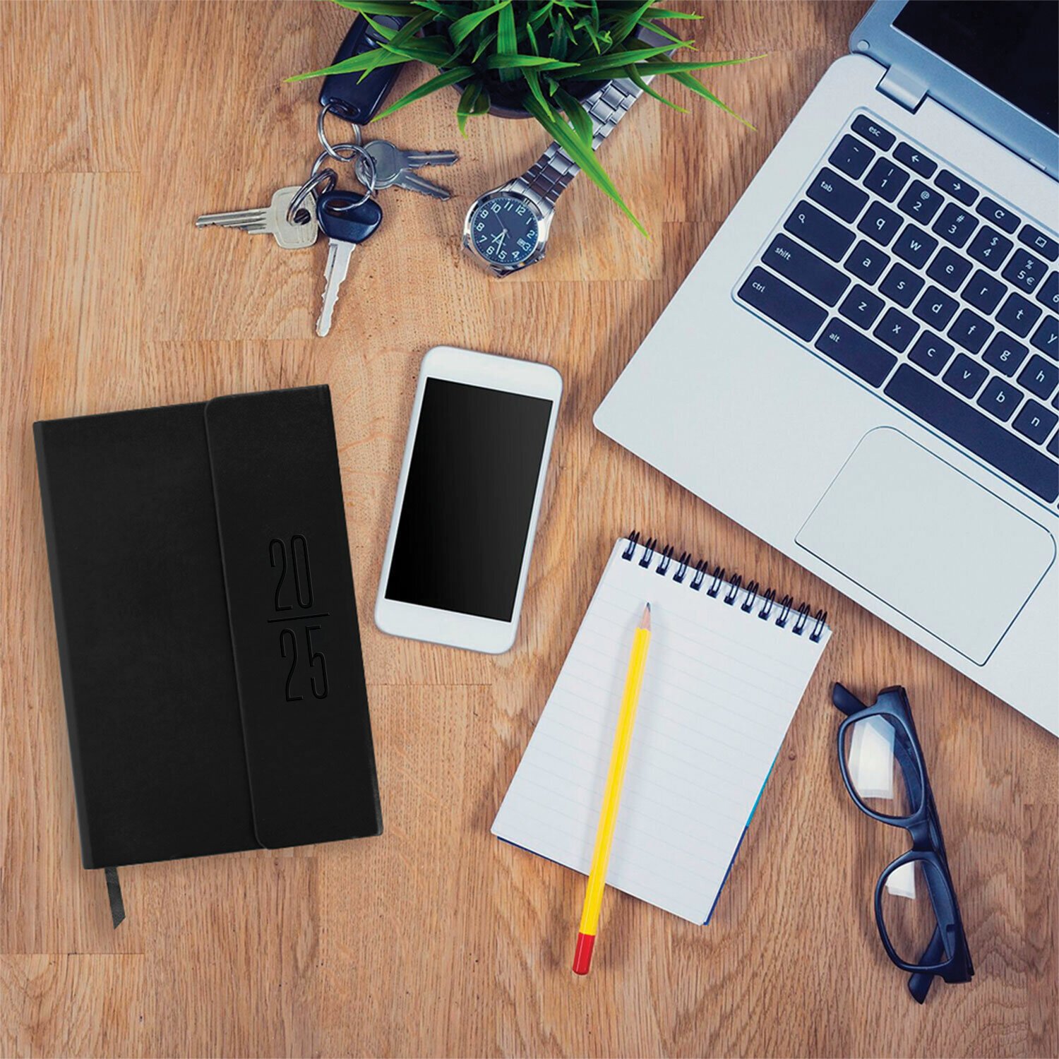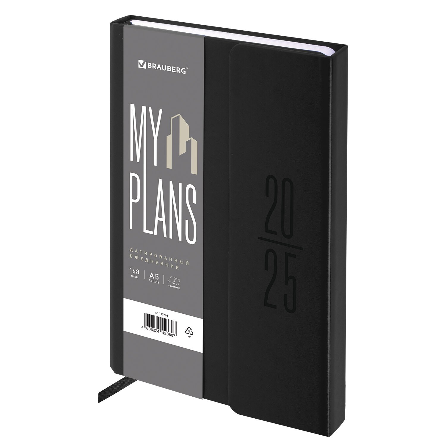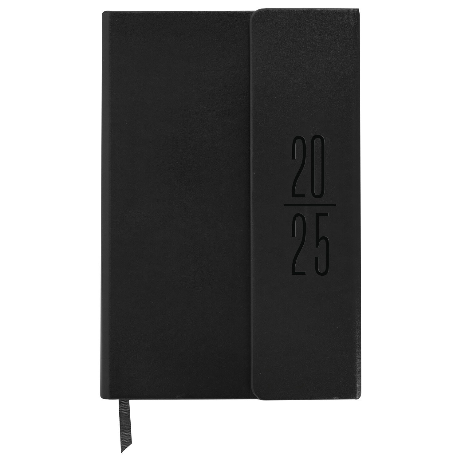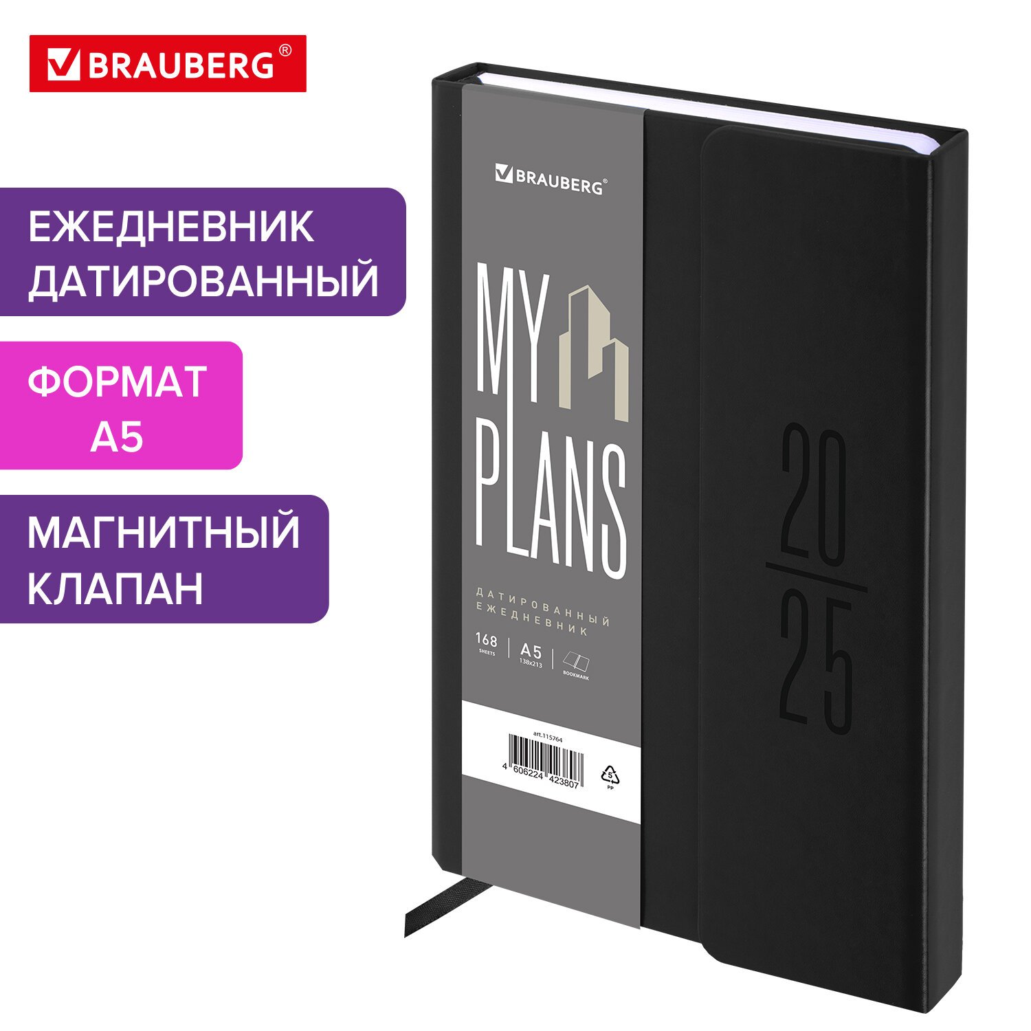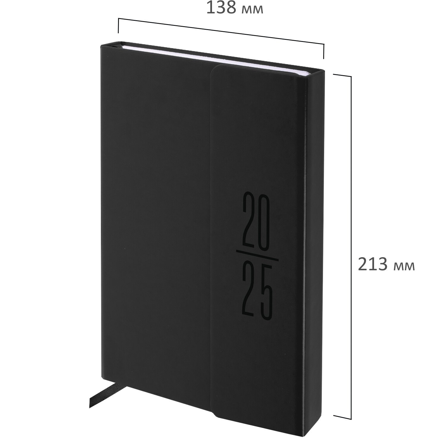 Ежедневник датированный 2025, А5, 138x213 мм, BRAUBERG "Towny", под кожу, клапан, черный, 115764