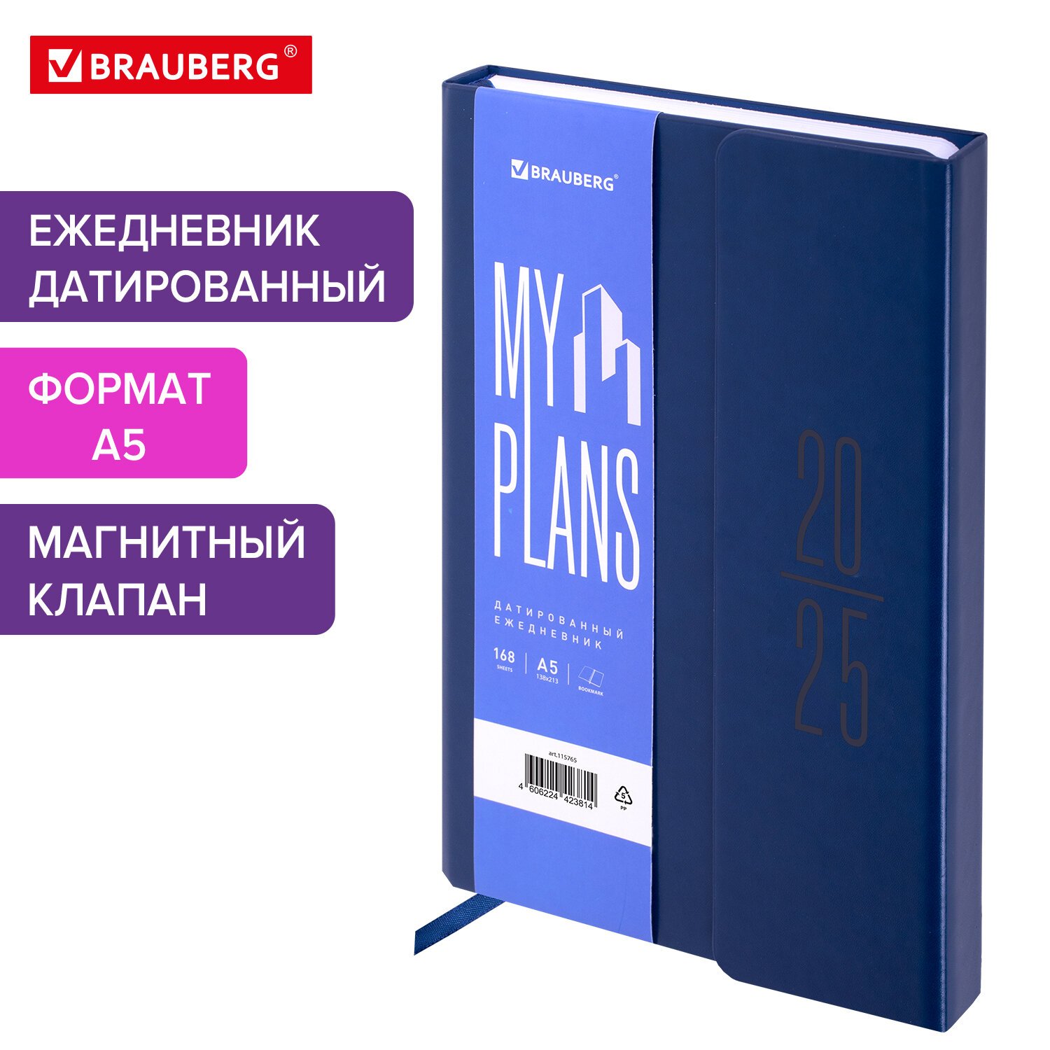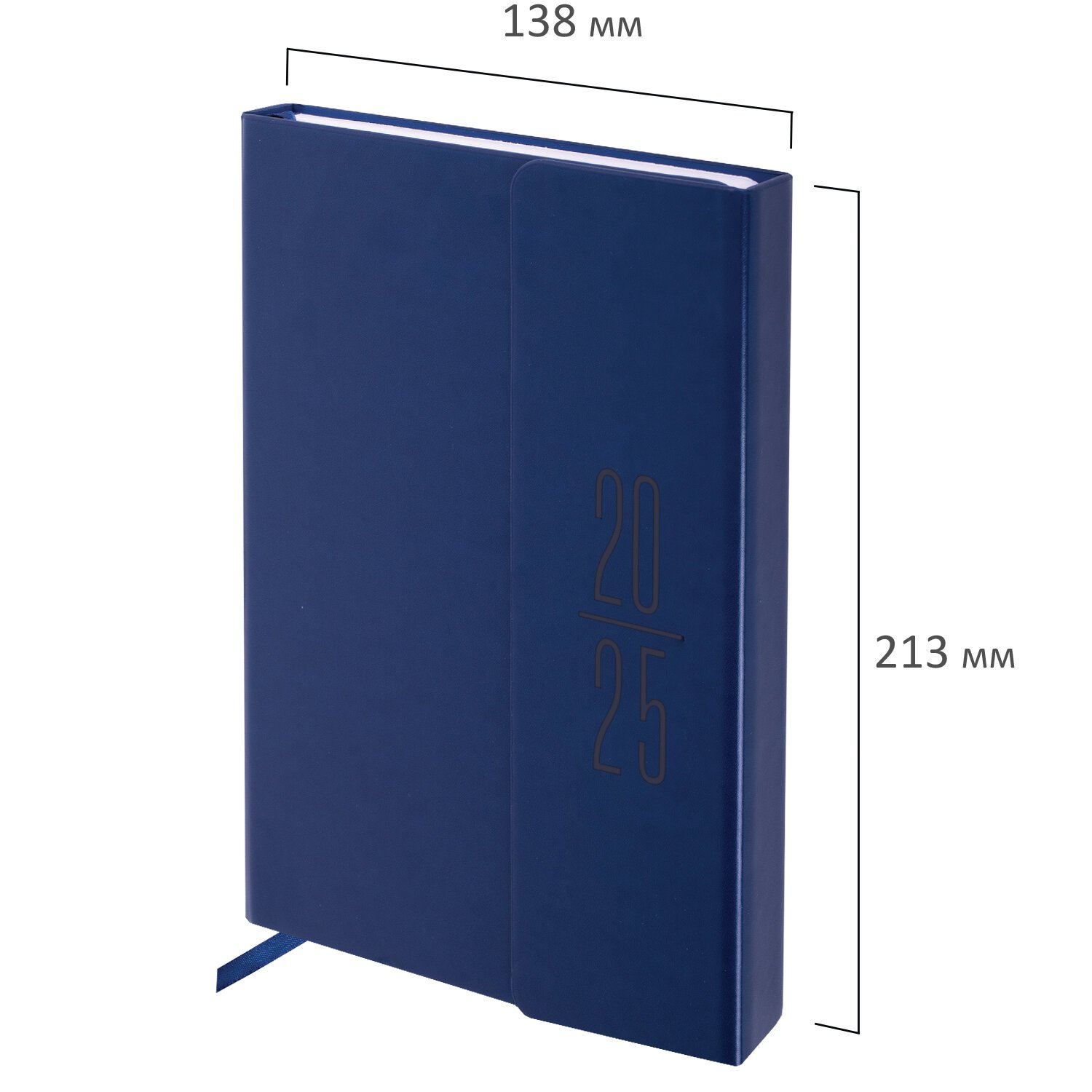 Ежедневник датированный 2025, А5, 138x213 мм, BRAUBERG "Towny", под кожу, клапан, синий, 115765