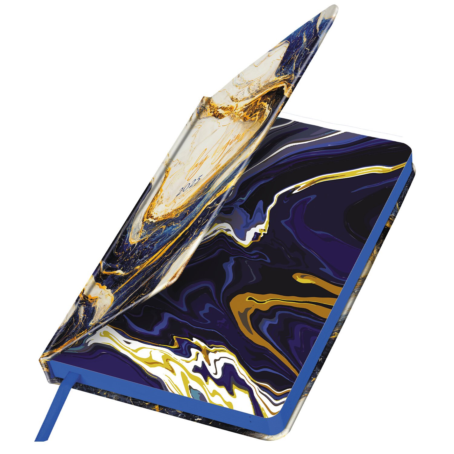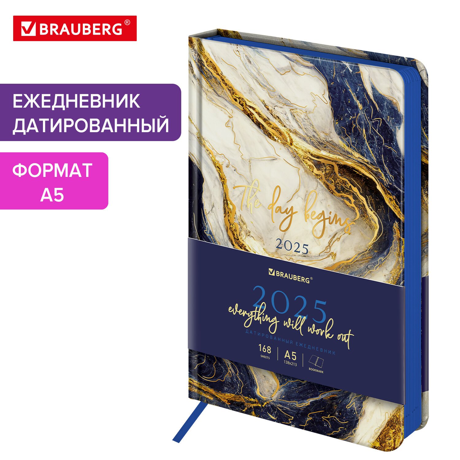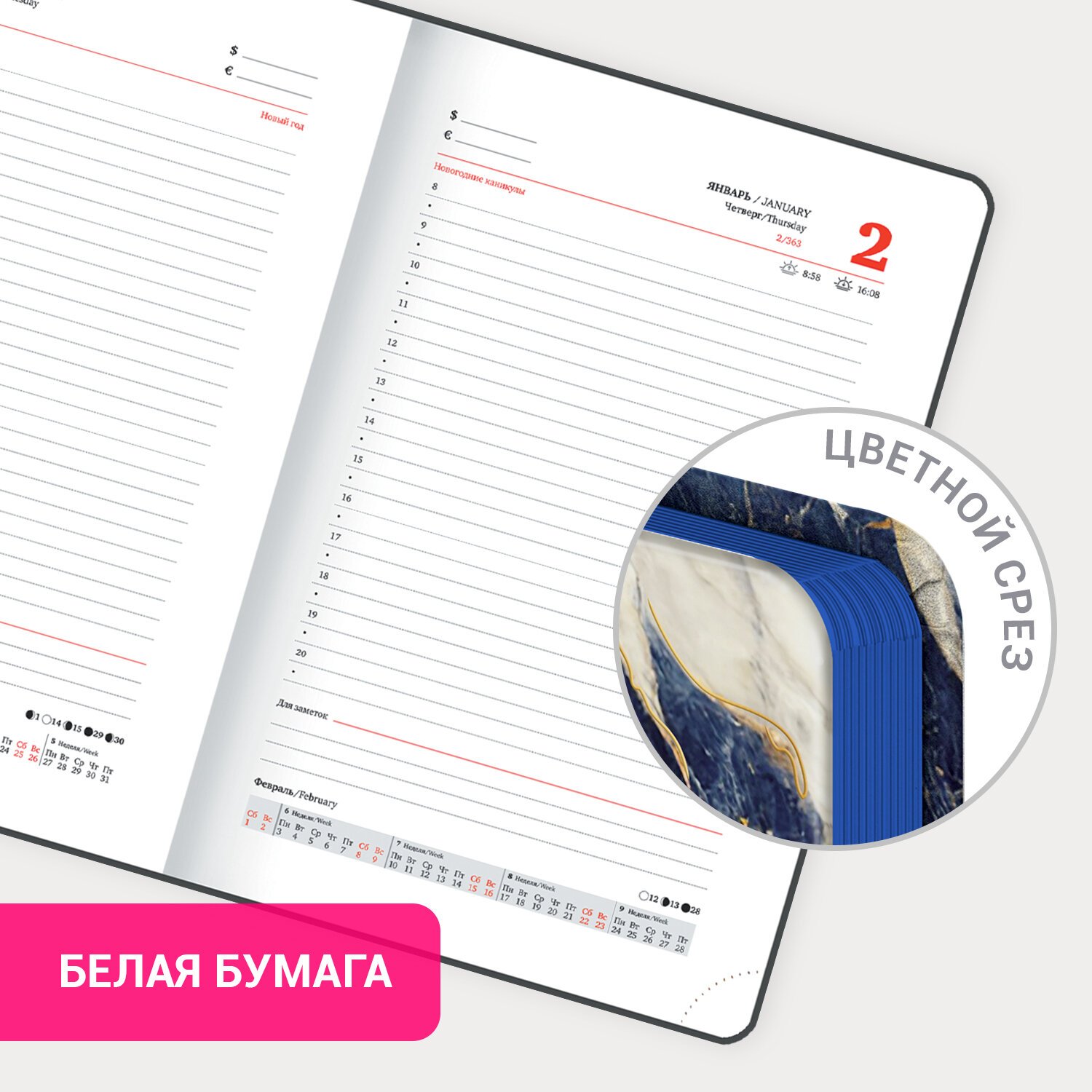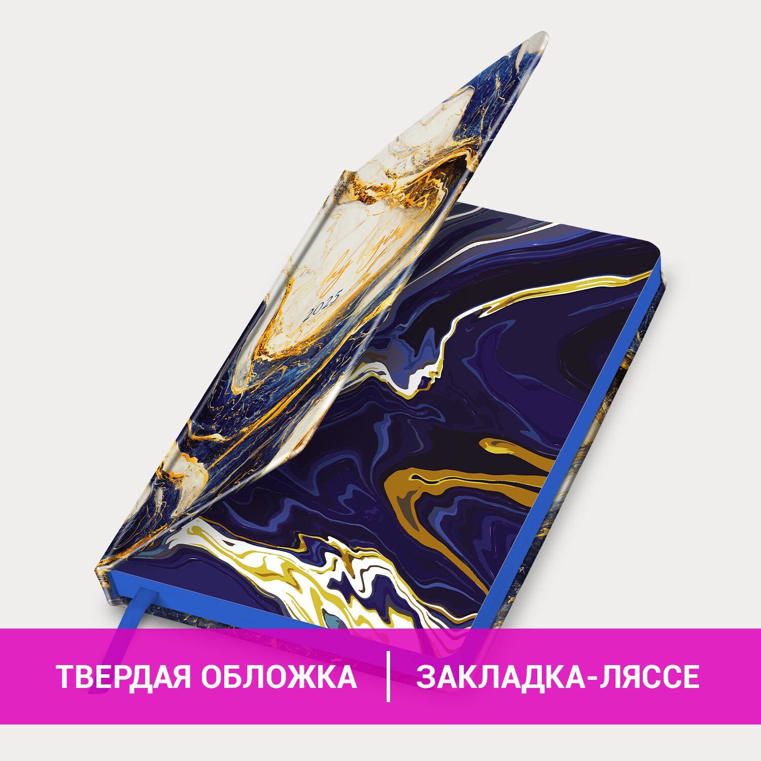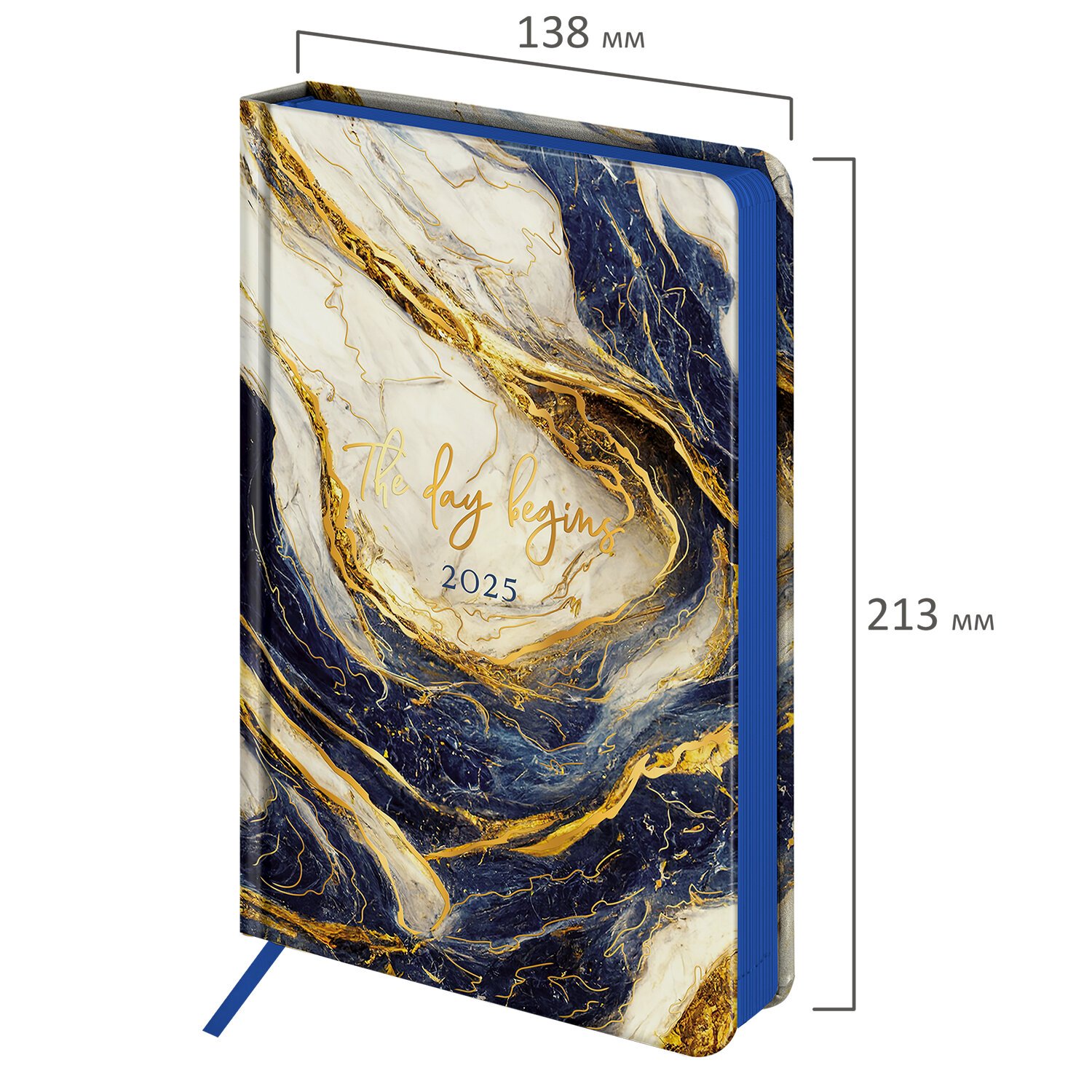 Ежедневник датированный 2025 А5 138x213 мм BRAUBERG "Vista", под кожу твердый, "Blue Marble", 115871