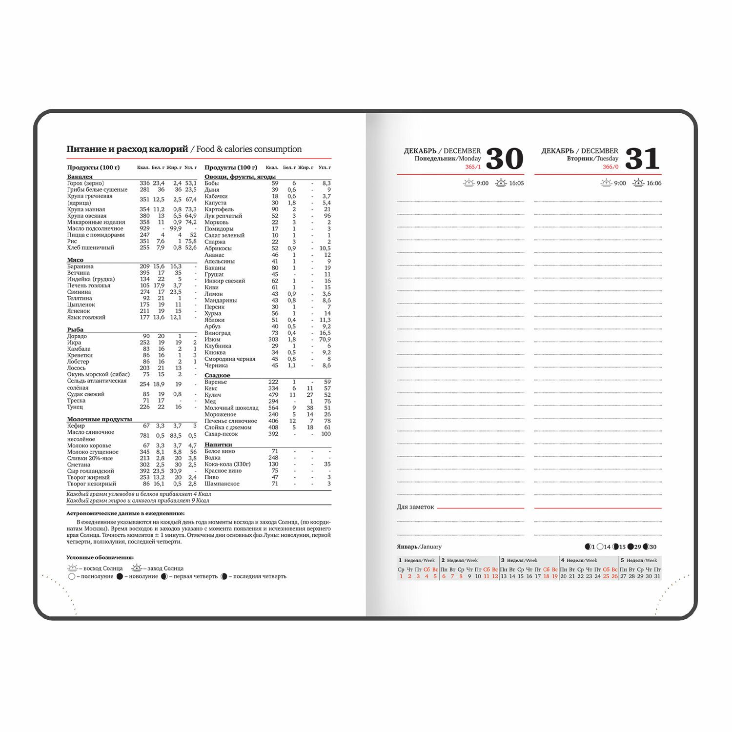 Дополнением является закладка-ляссе, с помощью которой при необходимости можно быстро открыть ежедневник на нужной странице. Помимо прочего, ежедневник снабжен обширным справочным материалом. В конце ежедневника есть 4 страницы для записей и заметок.