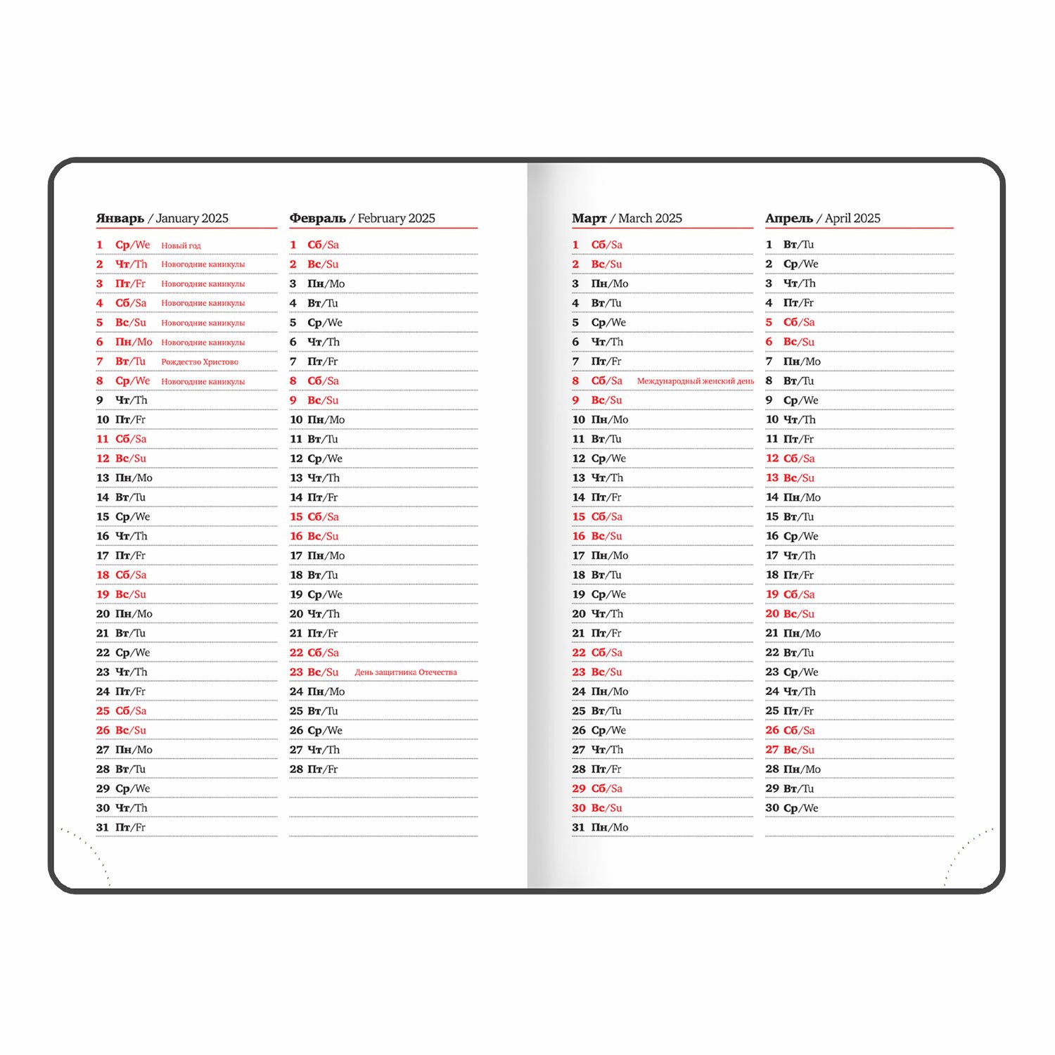 | Тип ежедневника | датированный |