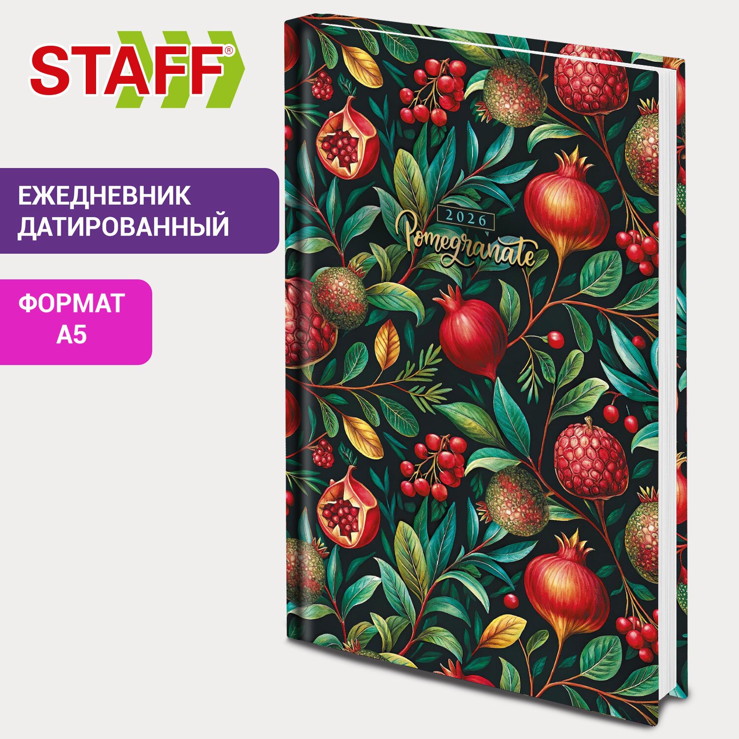 Ежедневник датированный 2026 145х215мм, А5, STAFF, ламинированная обложка, "Гранаты", 117312