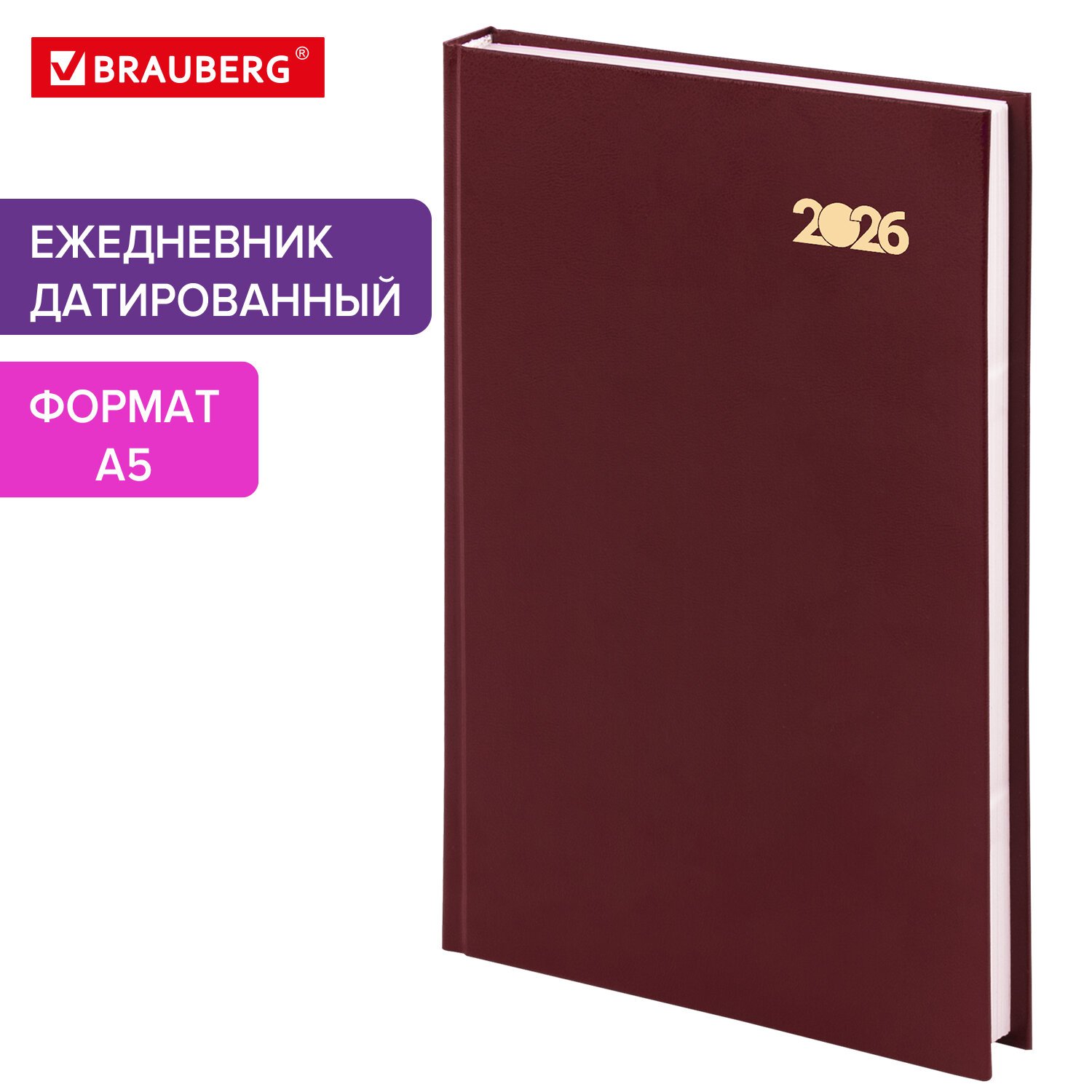 Ежедневник датированный 2026 с резинкой 145х203 мм, А5, BRAUBERG, твердый, "Гранаты", 117333