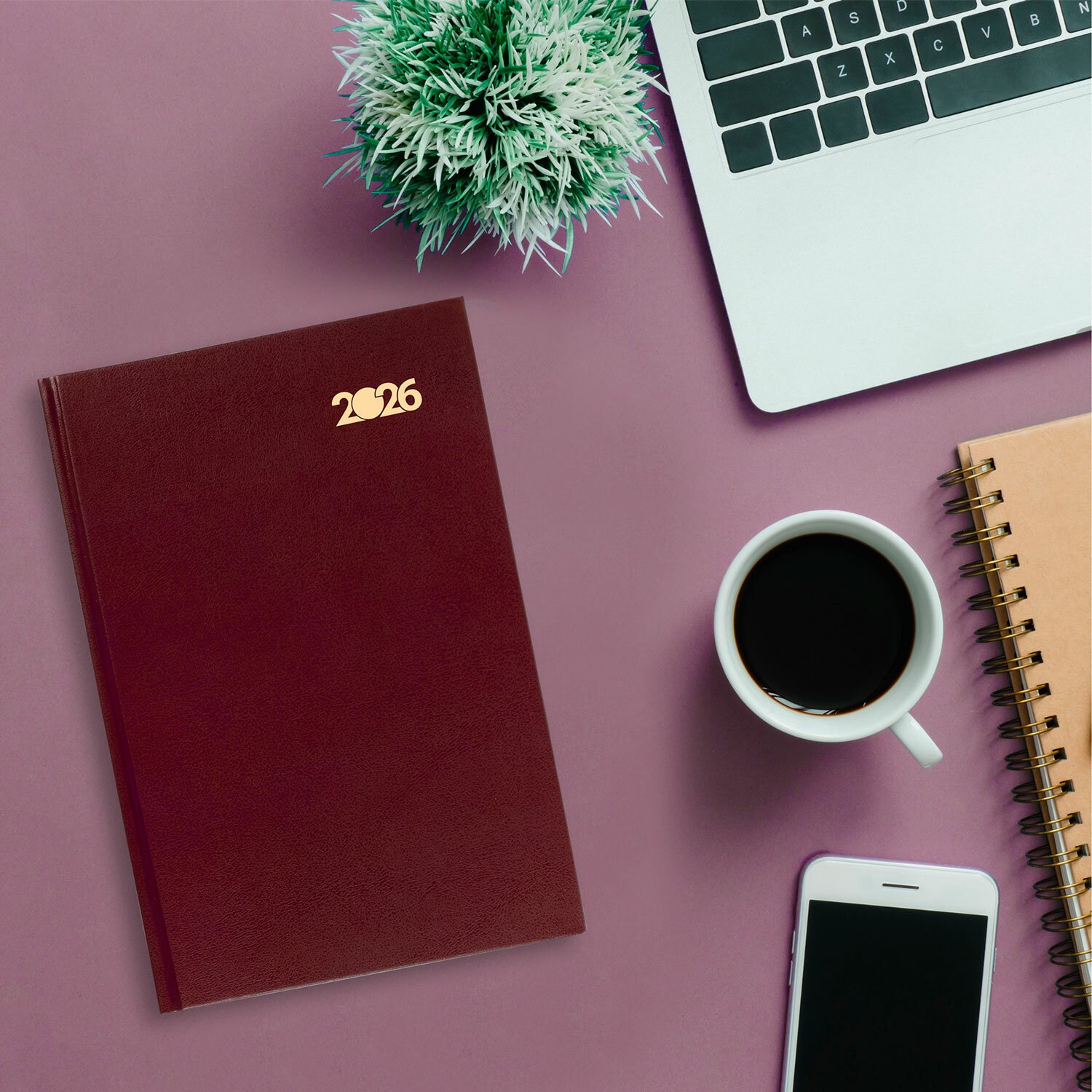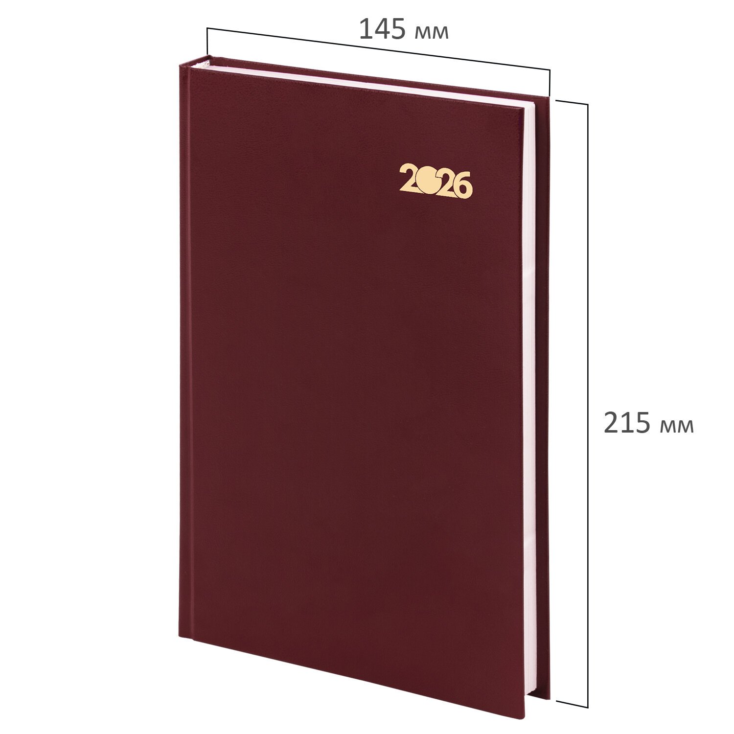 Ежедневник датированный 2026 145х215мм, А5, STAFF, обложка бумвинил, бордовый, 117306