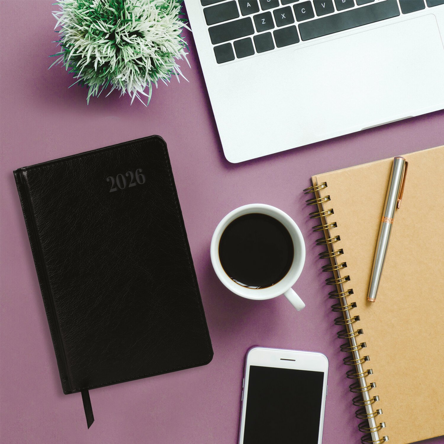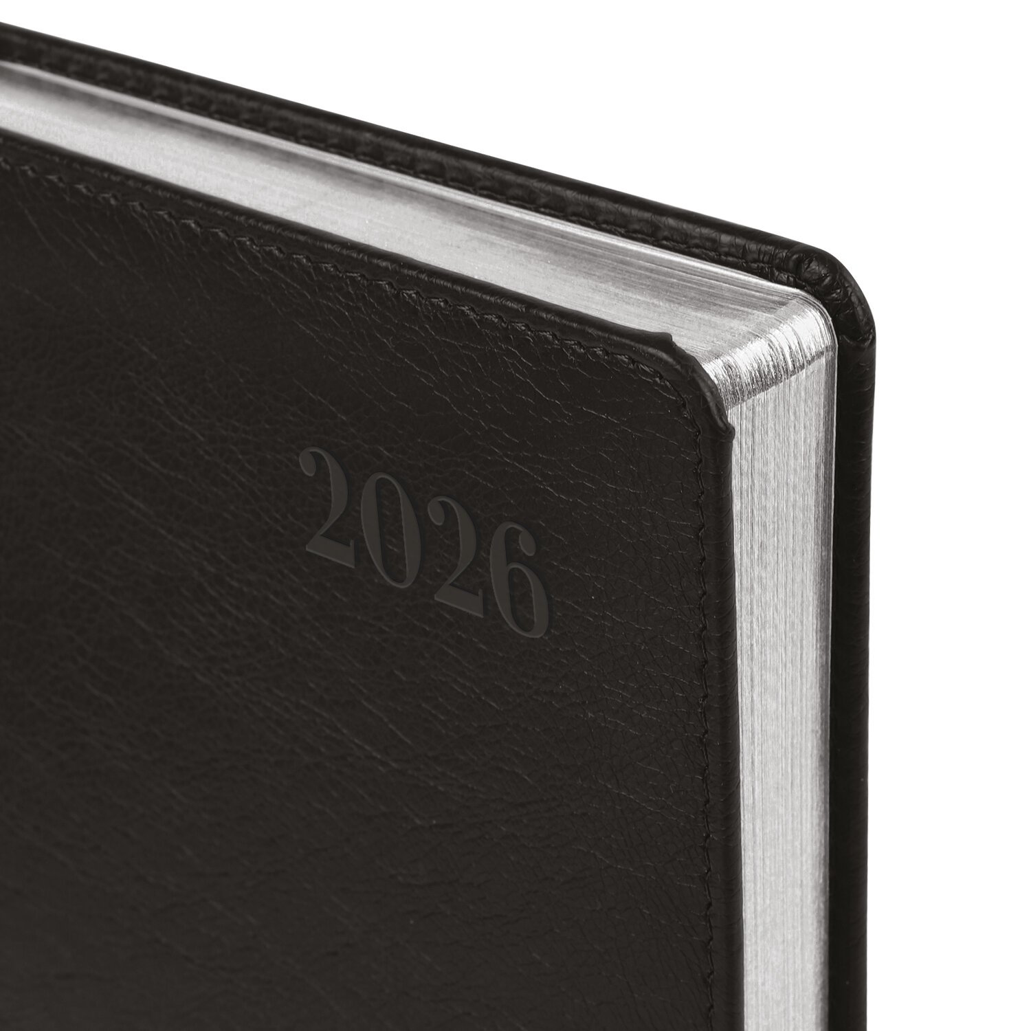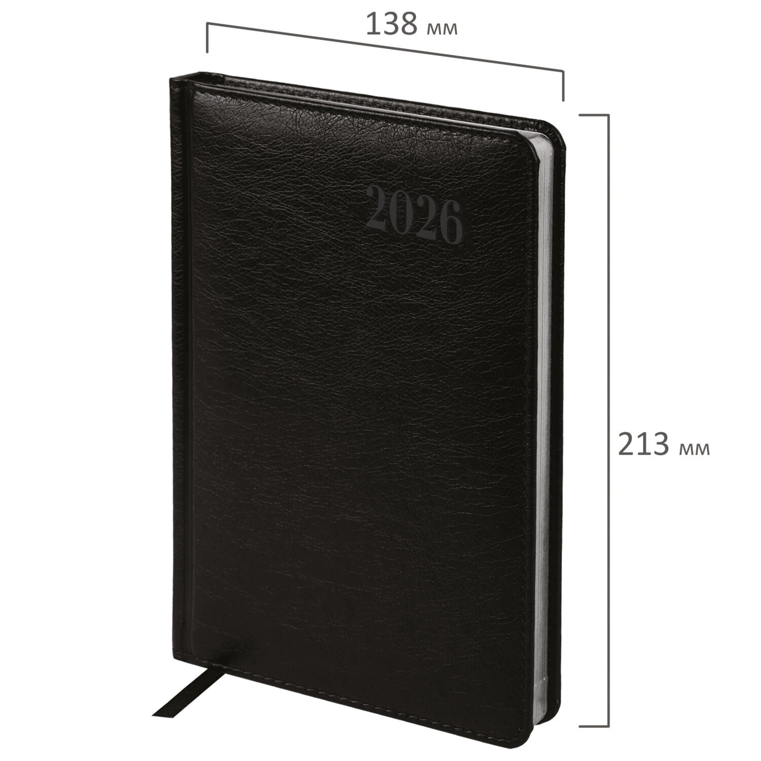 Ежедневник датированный 2026, А5, 138х213 мм, BRAUBERG "Impression", под кожу, черный, 117510