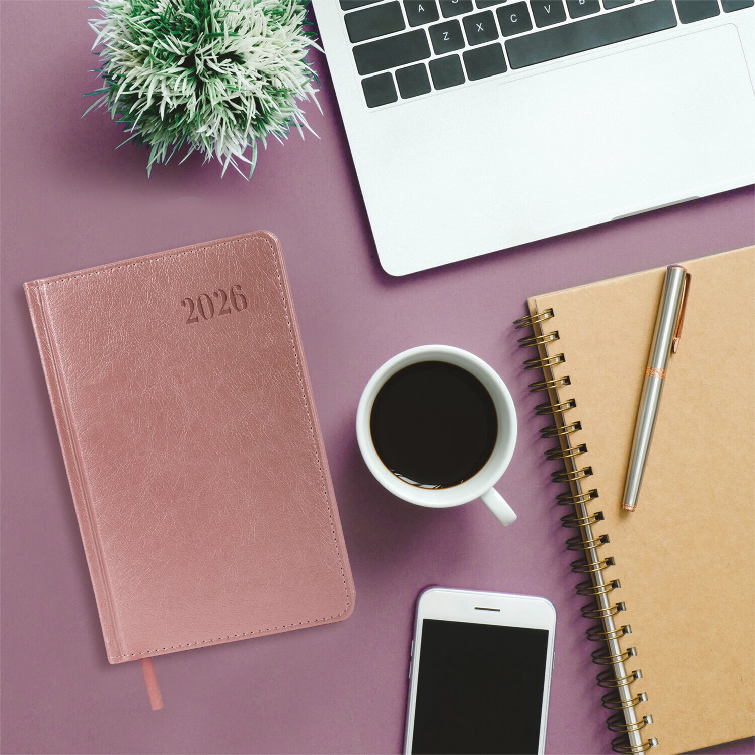 Ежедневник датированный 2026, А5, 138х213 мм, BRAUBERG "Impression", под кожу, розовый, 117514