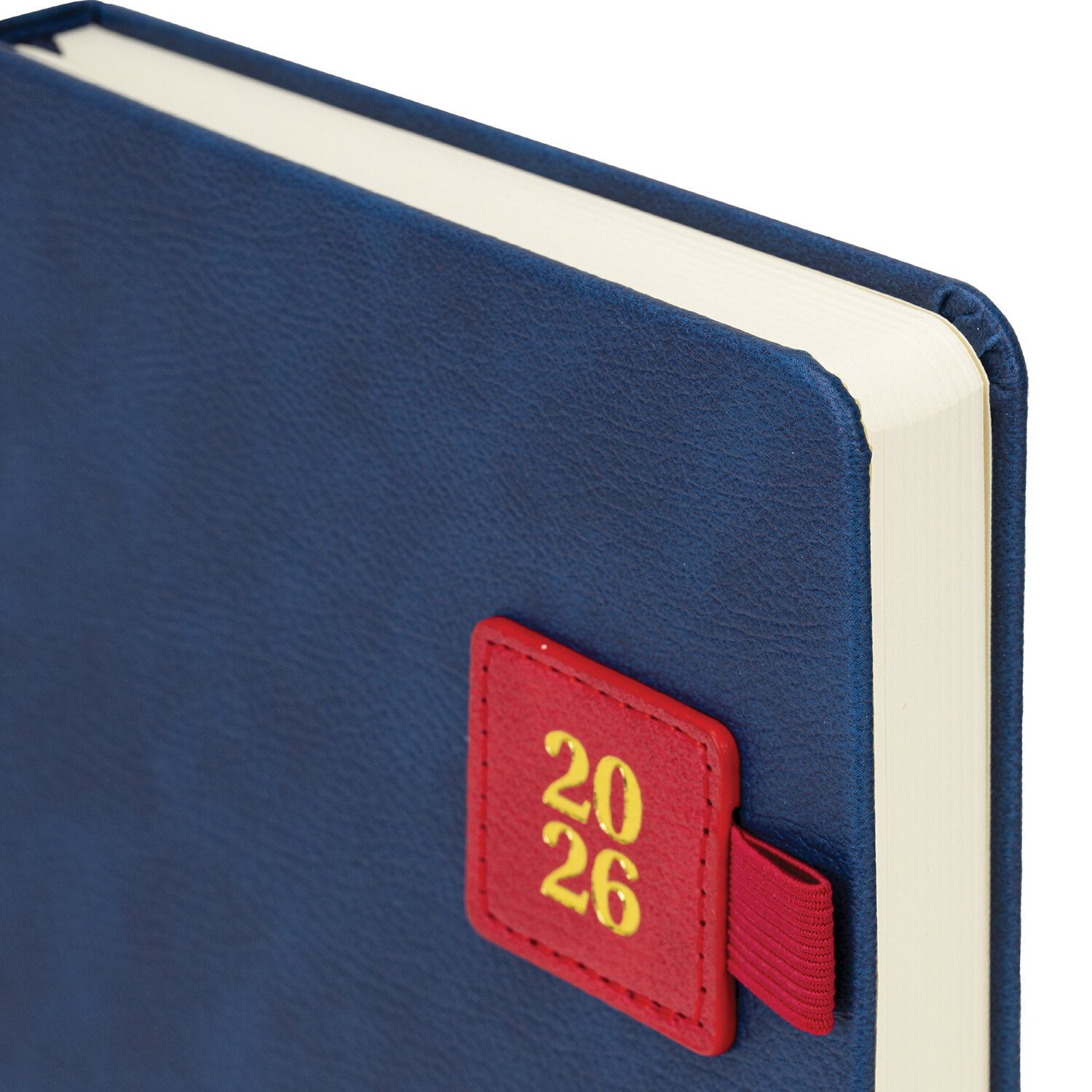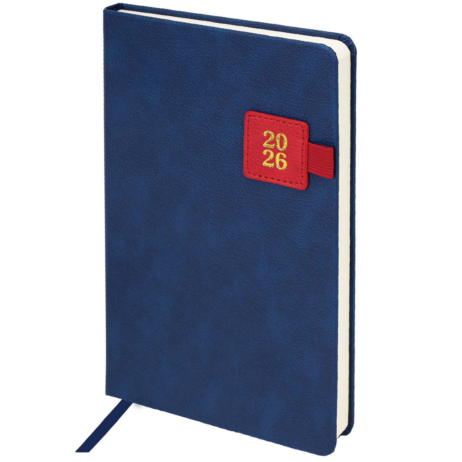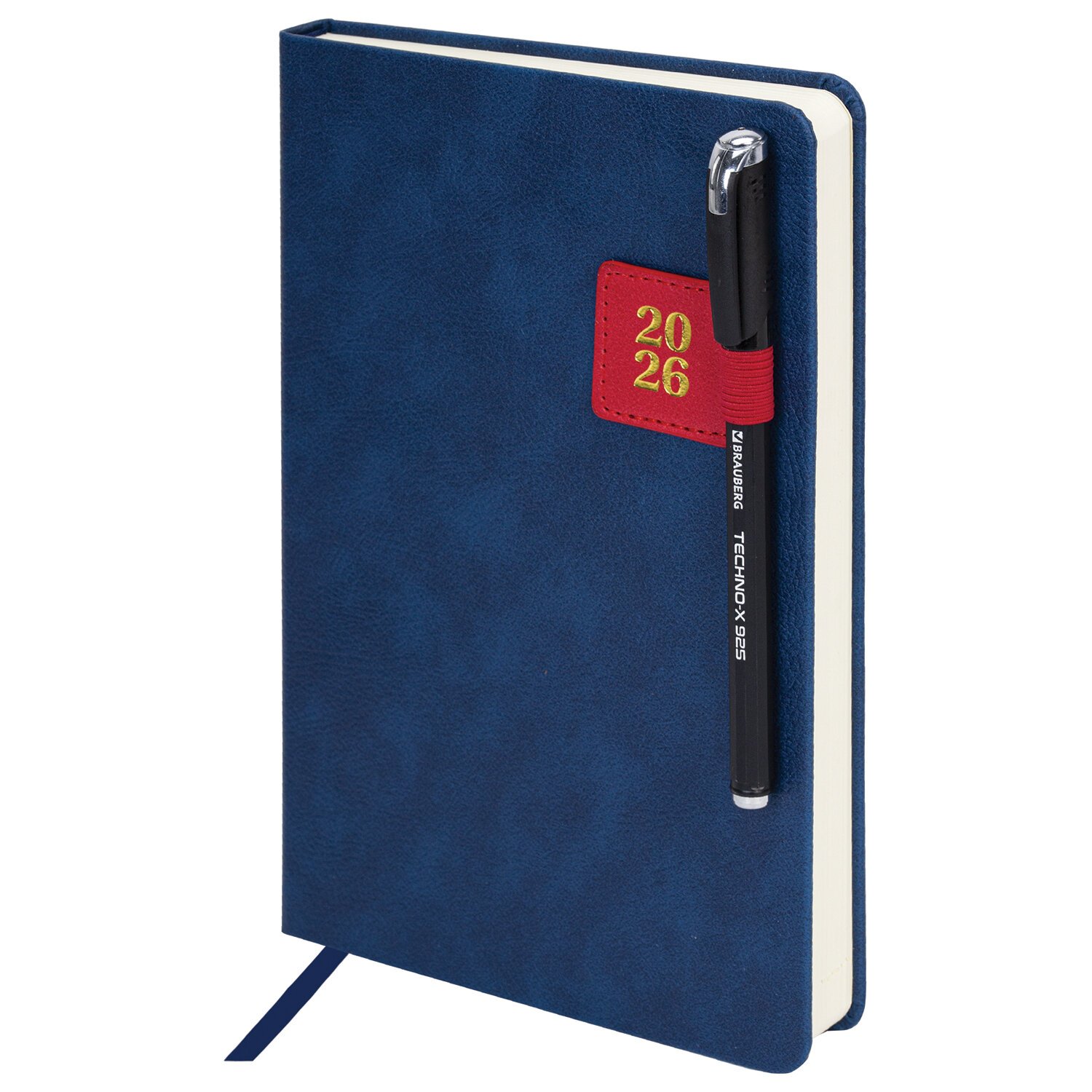 Ежедневник датированный 2026 А5 138х213мм BRAUBERG Accent под кожу, держатель, синий/красный, 117386