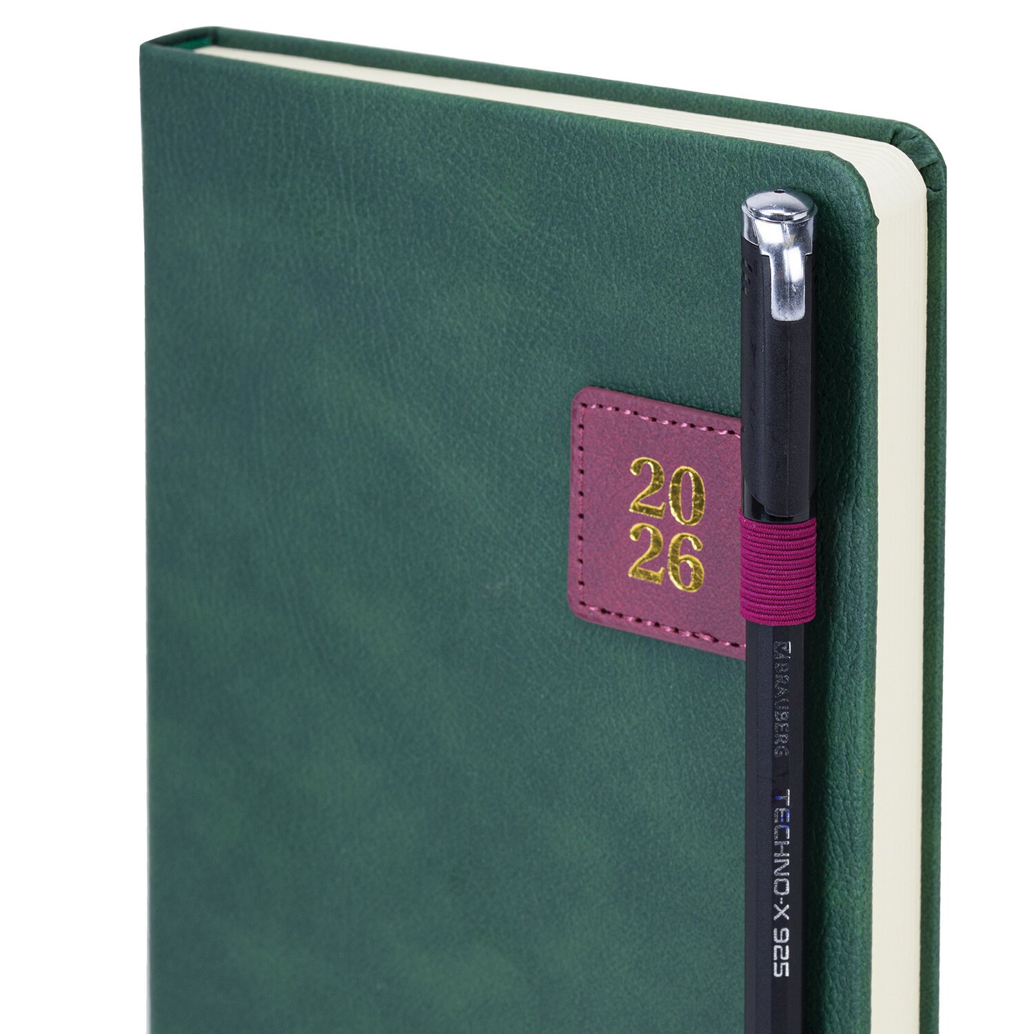 Ежедневник датированный 2026 А5 138х213мм BRAUBERG Accent под кожу, держатель, зеленый/бордо, 117387