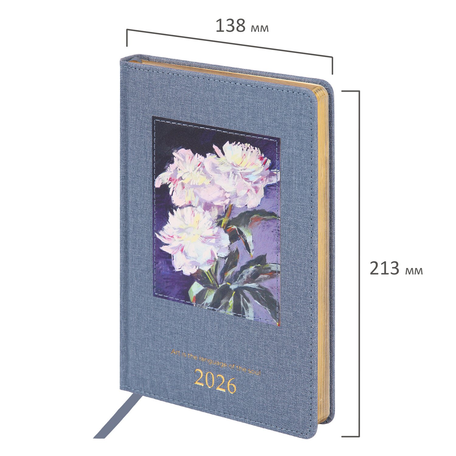 Ежедневник датированный 2026 А5 138х213мм BRAUBERG ArtGallery, под кожу, нашивка, голубой, 117407