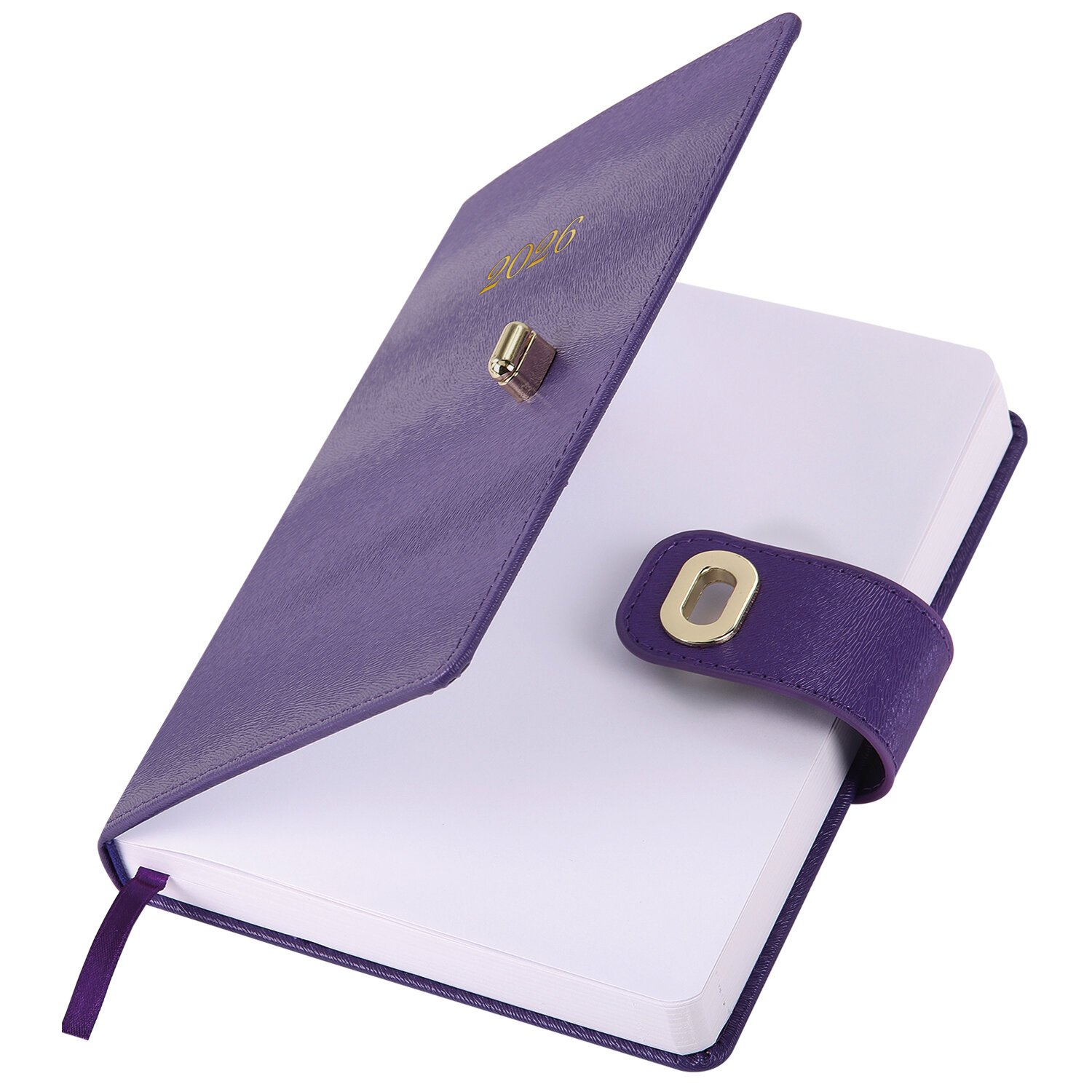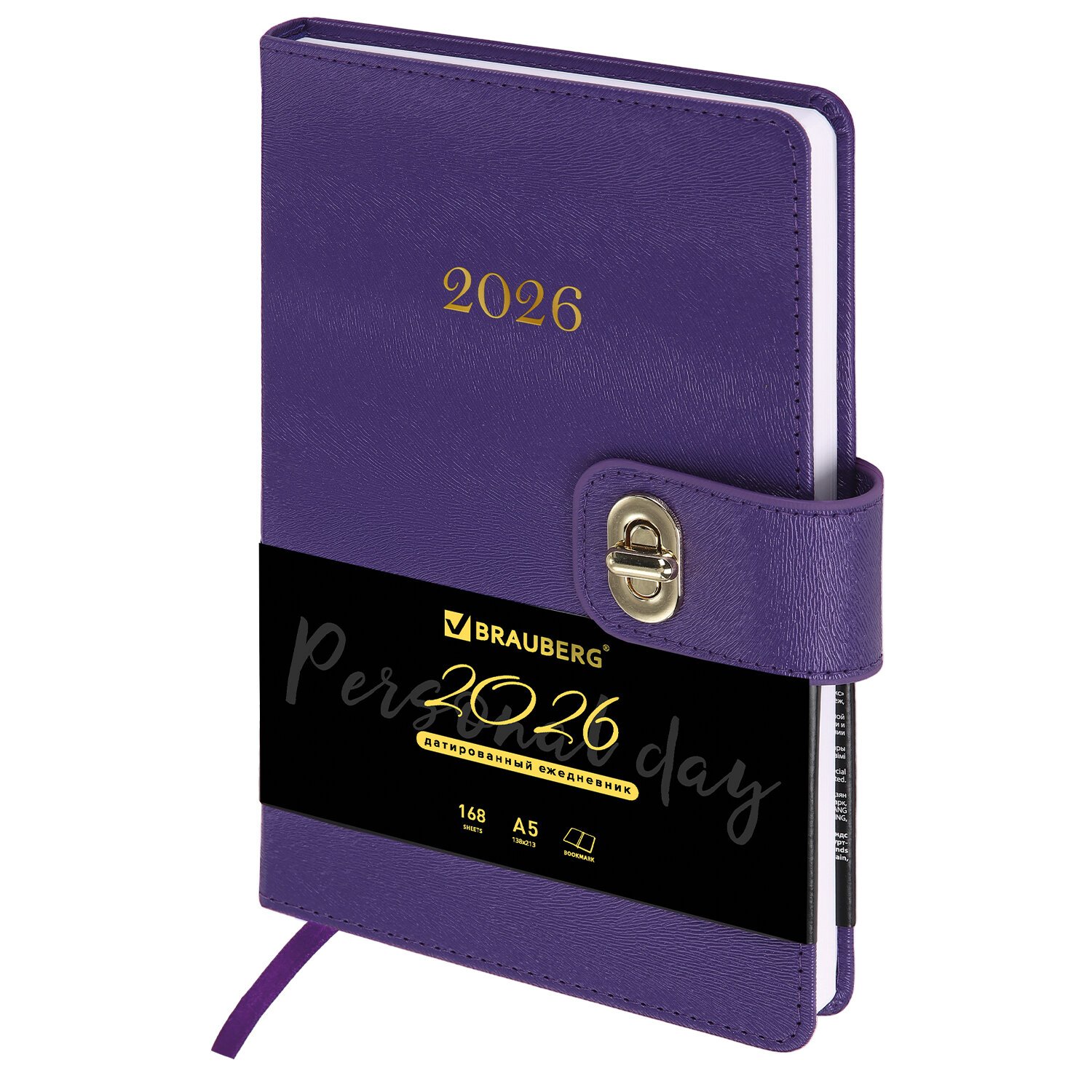 Ежедневник датированный 2026 А5 138х213мм BRAUBERG Elegant, под кожу, застежка, фиолетовый, 117370