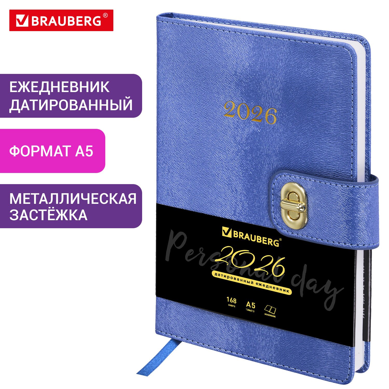 Ежедневник датированный 2026 А5 138х213мм BRAUBERG Elegant, под кожу, застежка, фиолетовый, 117370