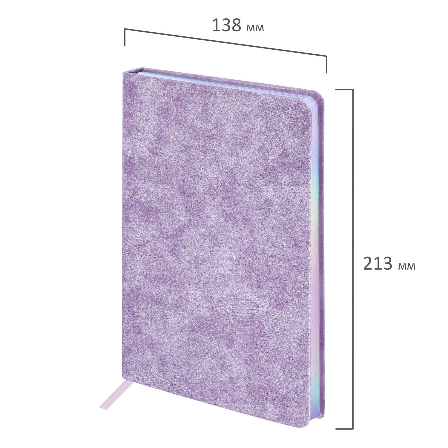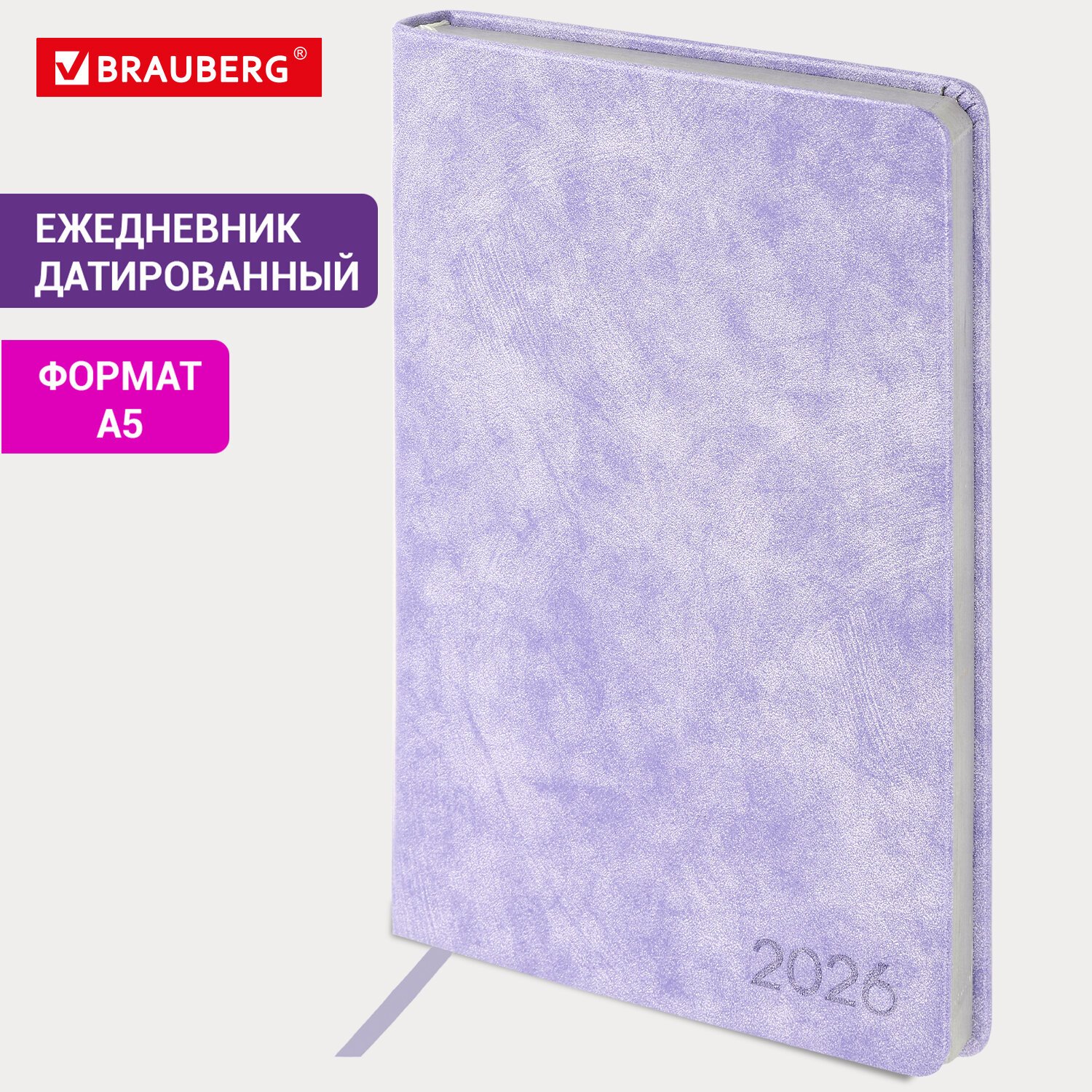 Ежедневник датированный 2026 А5 138х213мм BRAUBERG Ice, под кожу, сиреневый, 117392