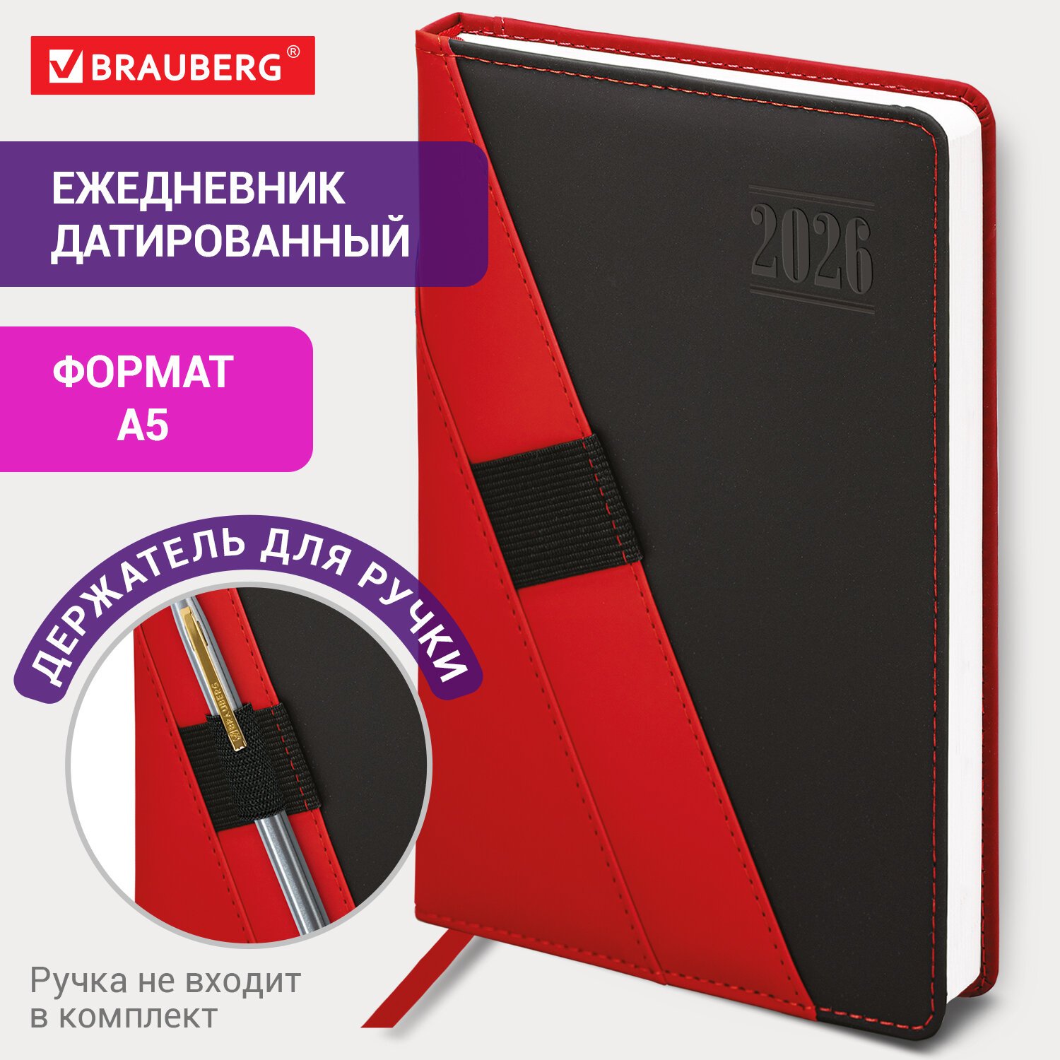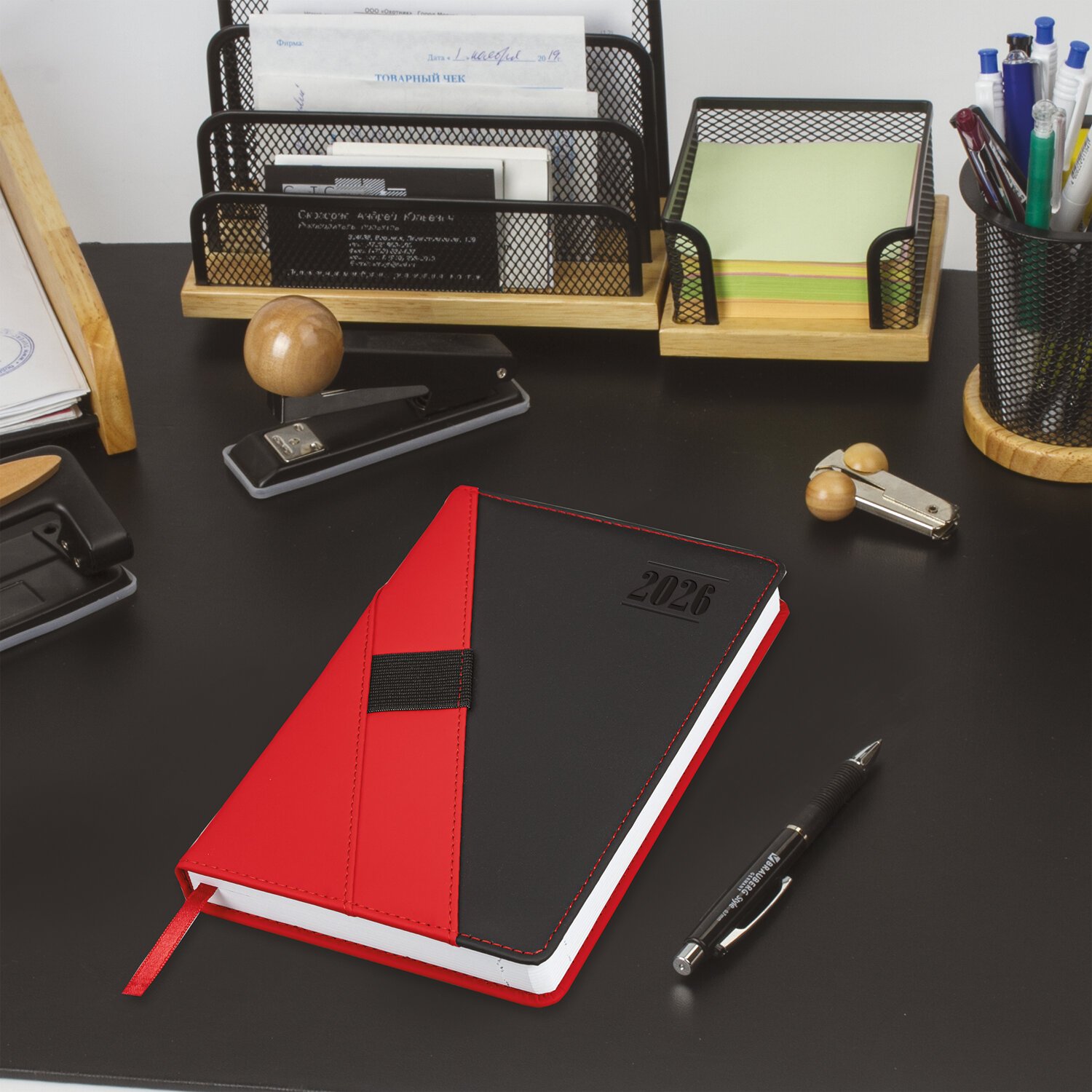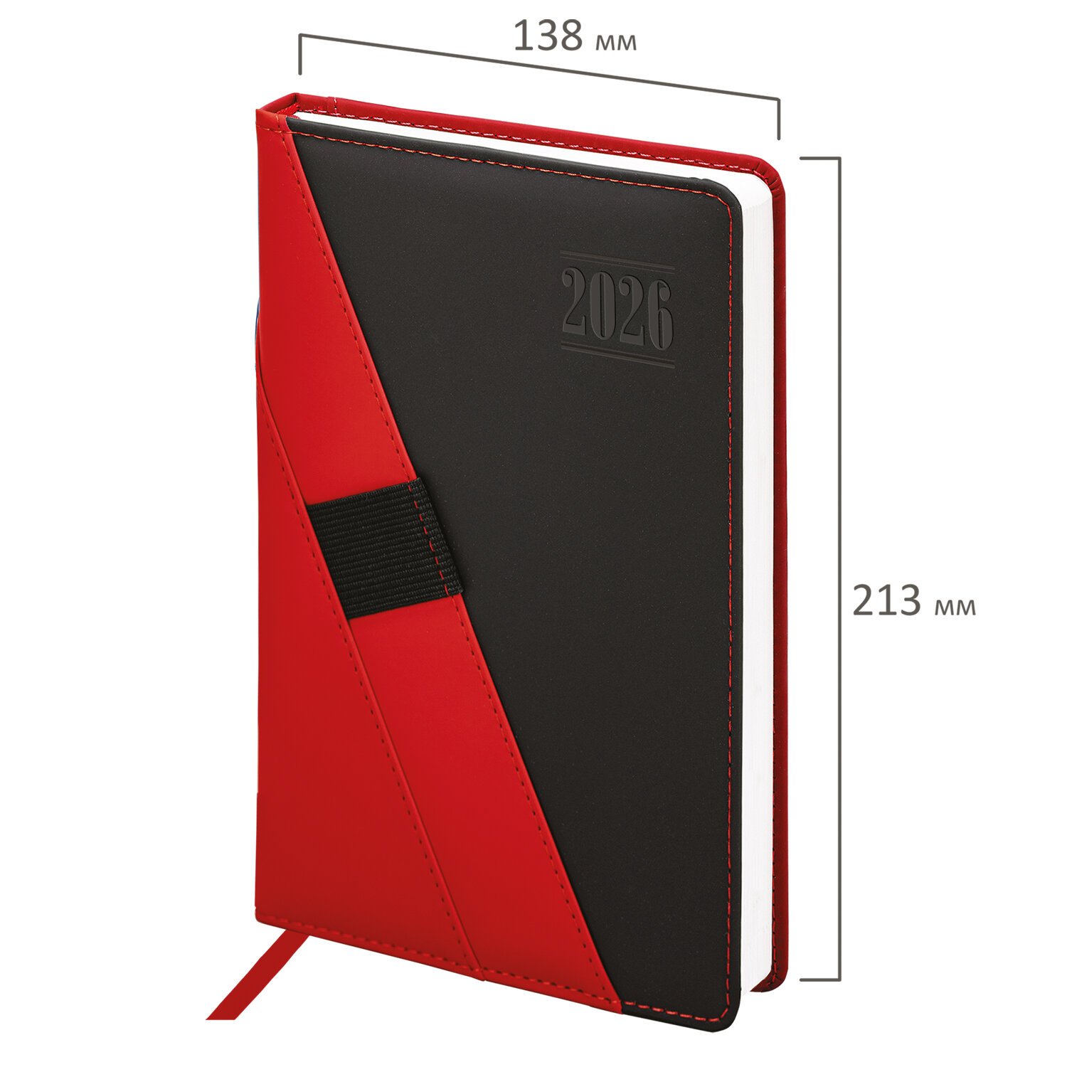 Ежедневник датированный 2026 А5 138х213мм BRAUBERG Swirl, под кожу, держатель для ручки, красный, 117481