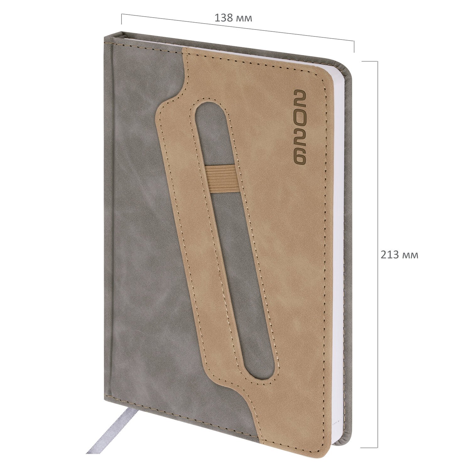 Ежедневник датированный 2026 А5 138x213мм BRAUBERG Assistant, под кожу, держатель, серый, 117378