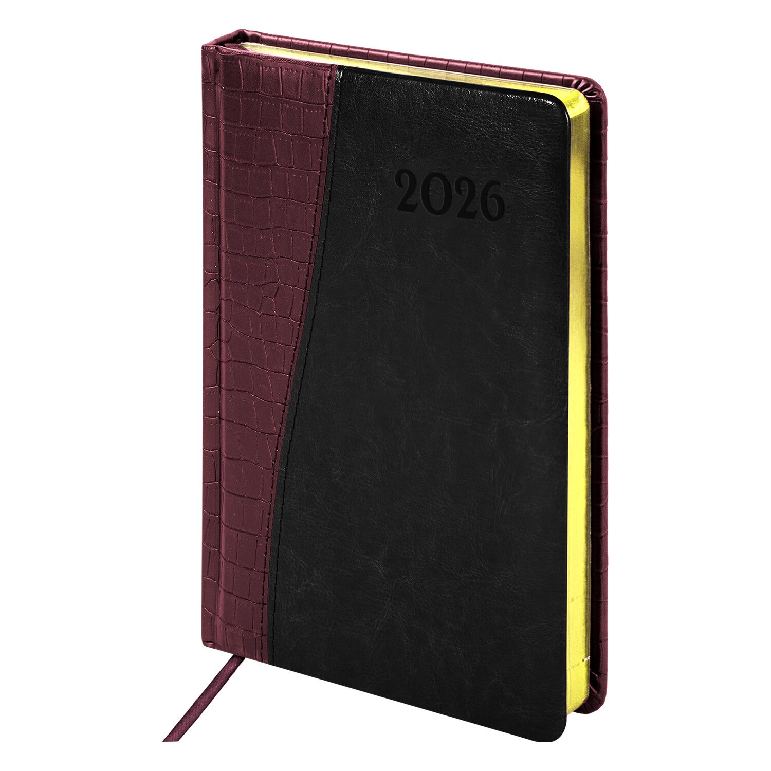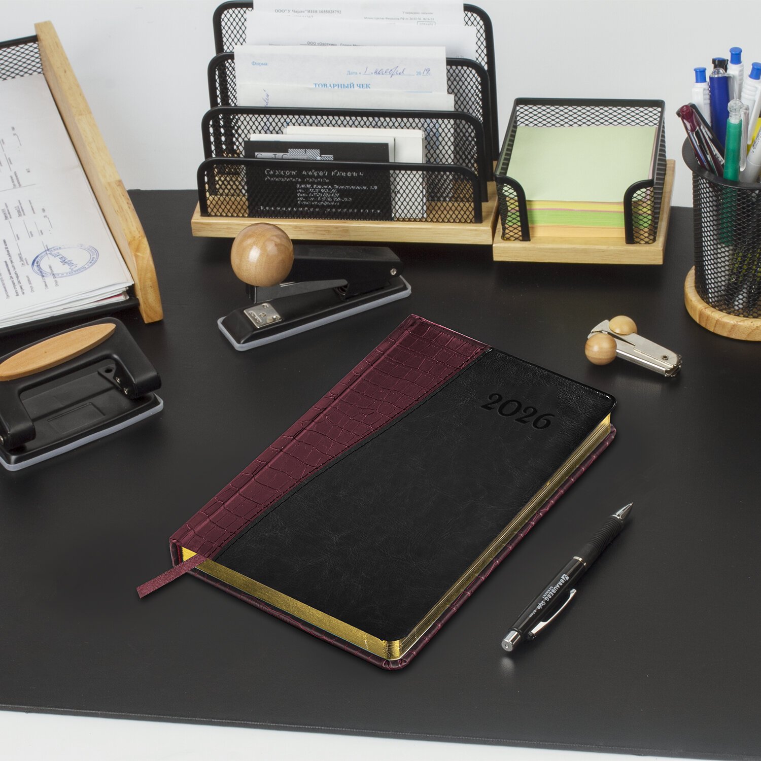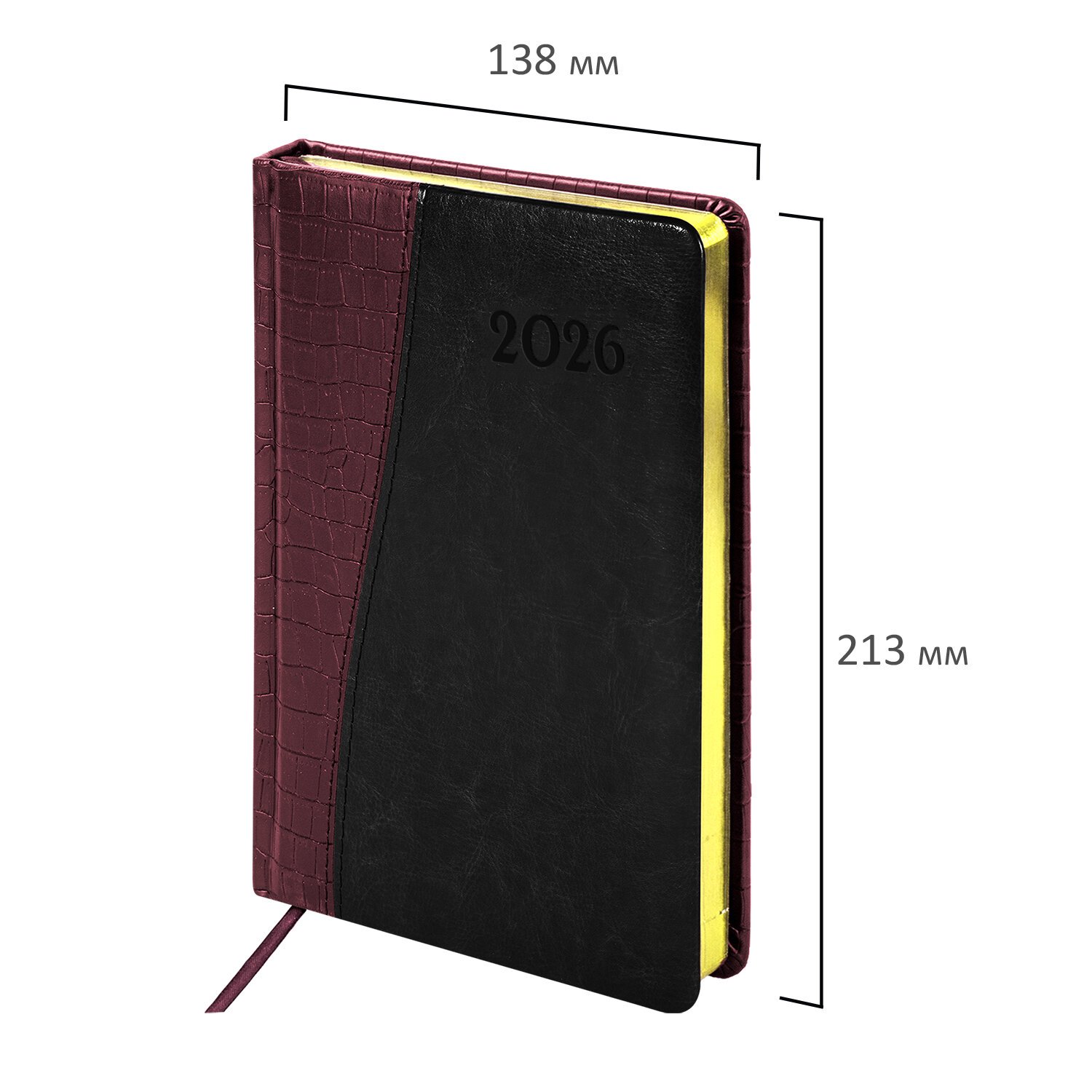 Ежедневник датированный 2026 А5 138x213мм BRAUBERG Cayman, под кожу, бордовый/черный, 117046