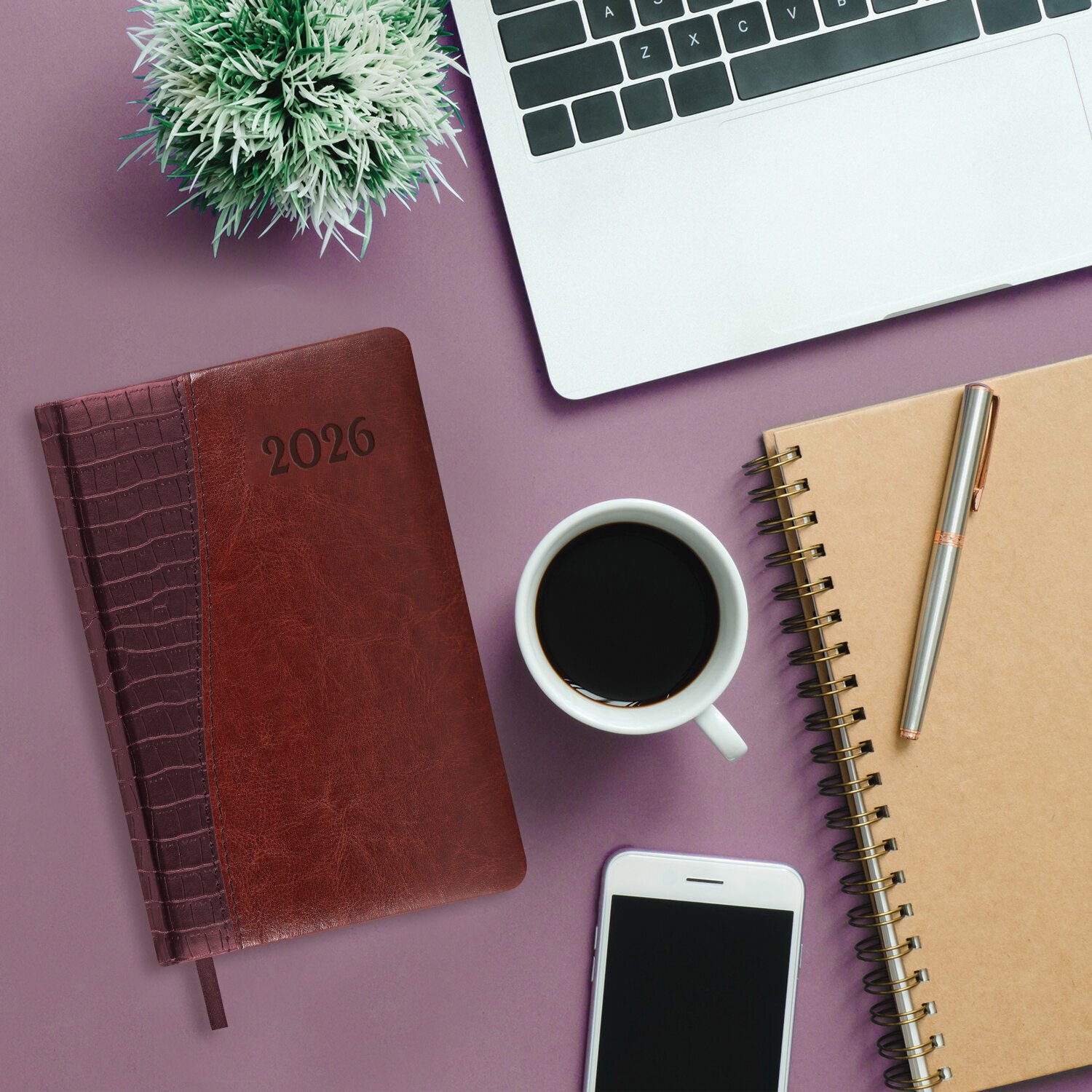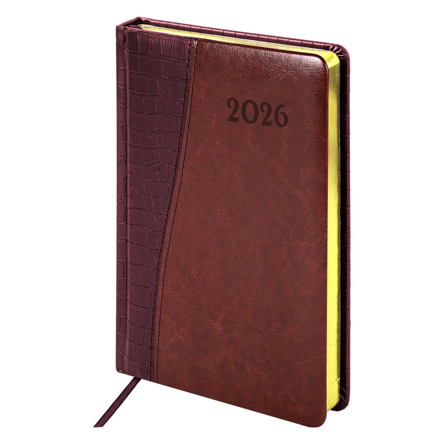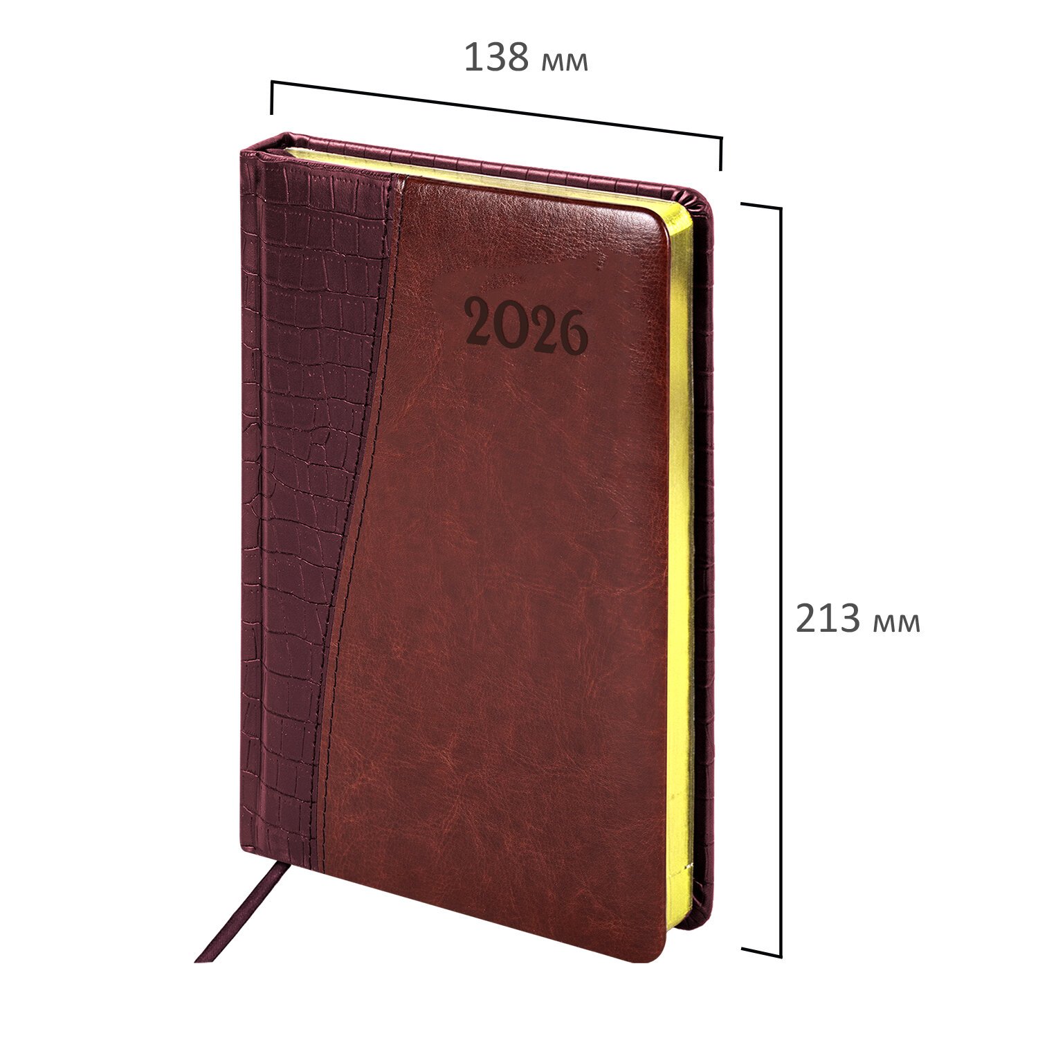 Ежедневник датированный 2026 А5 138x213мм BRAUBERG Cayman, под кожу, бордовый/коричневый, 117044