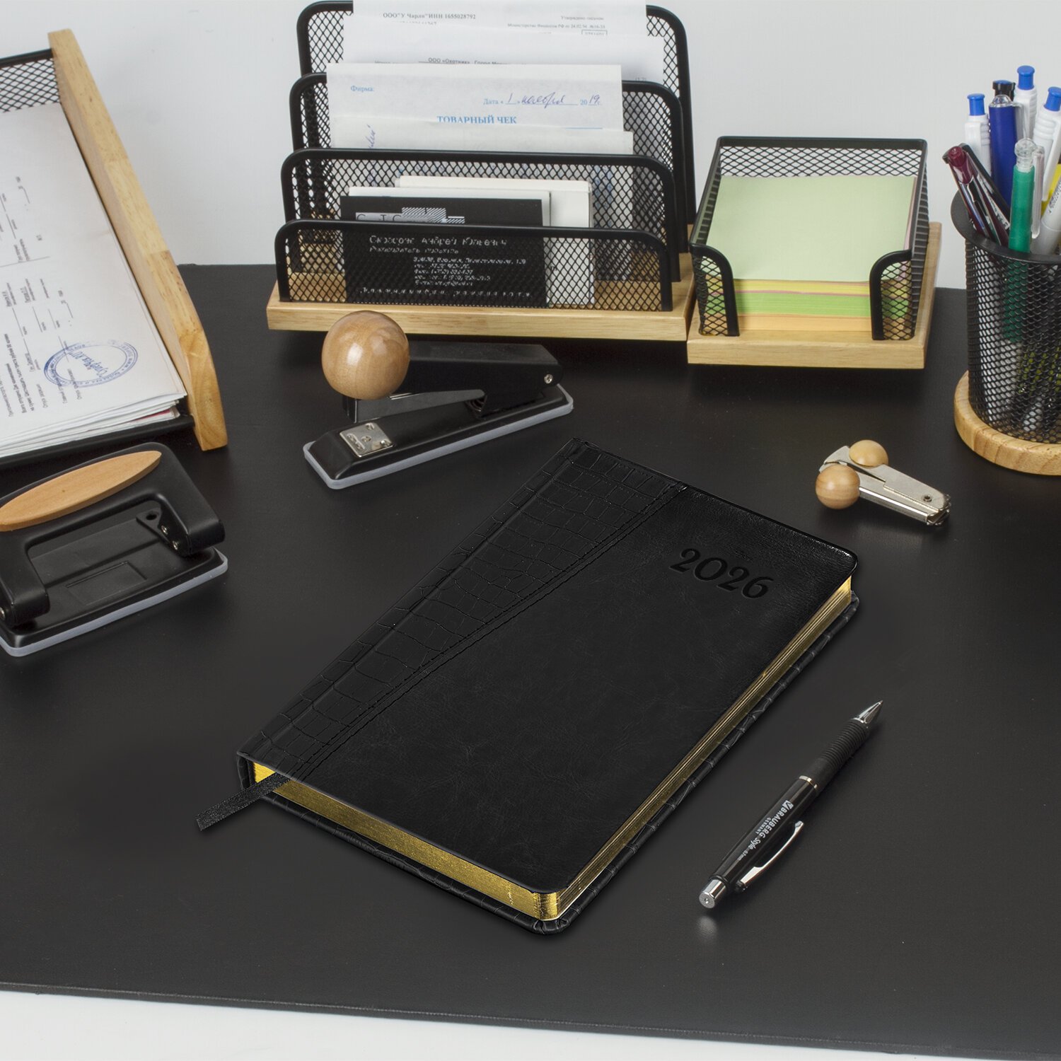 Ежедневник датированный 2026 А5 138x213мм BRAUBERG Mosaic, под кожу, карман для ручки, черный, 117114
