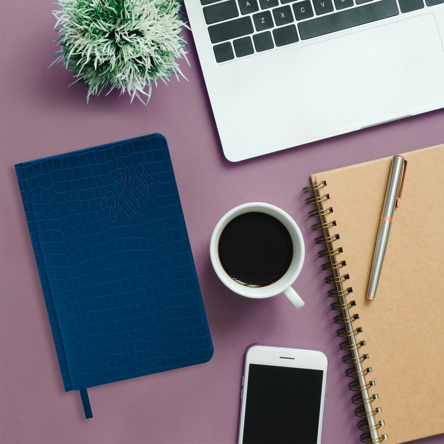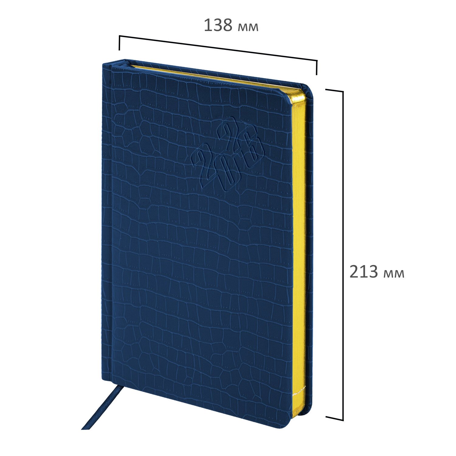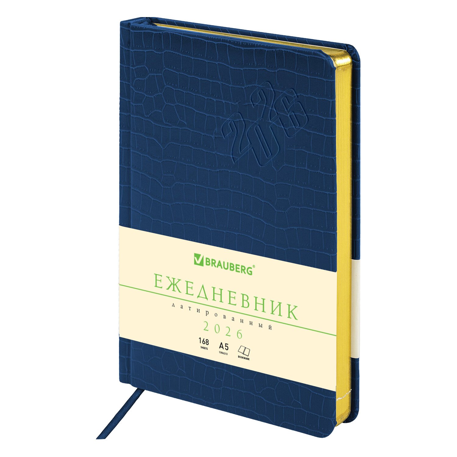 Ежедневник датированный 2026 А5 138x213мм BRAUBERG Comodo, под кожу, синий, 117050