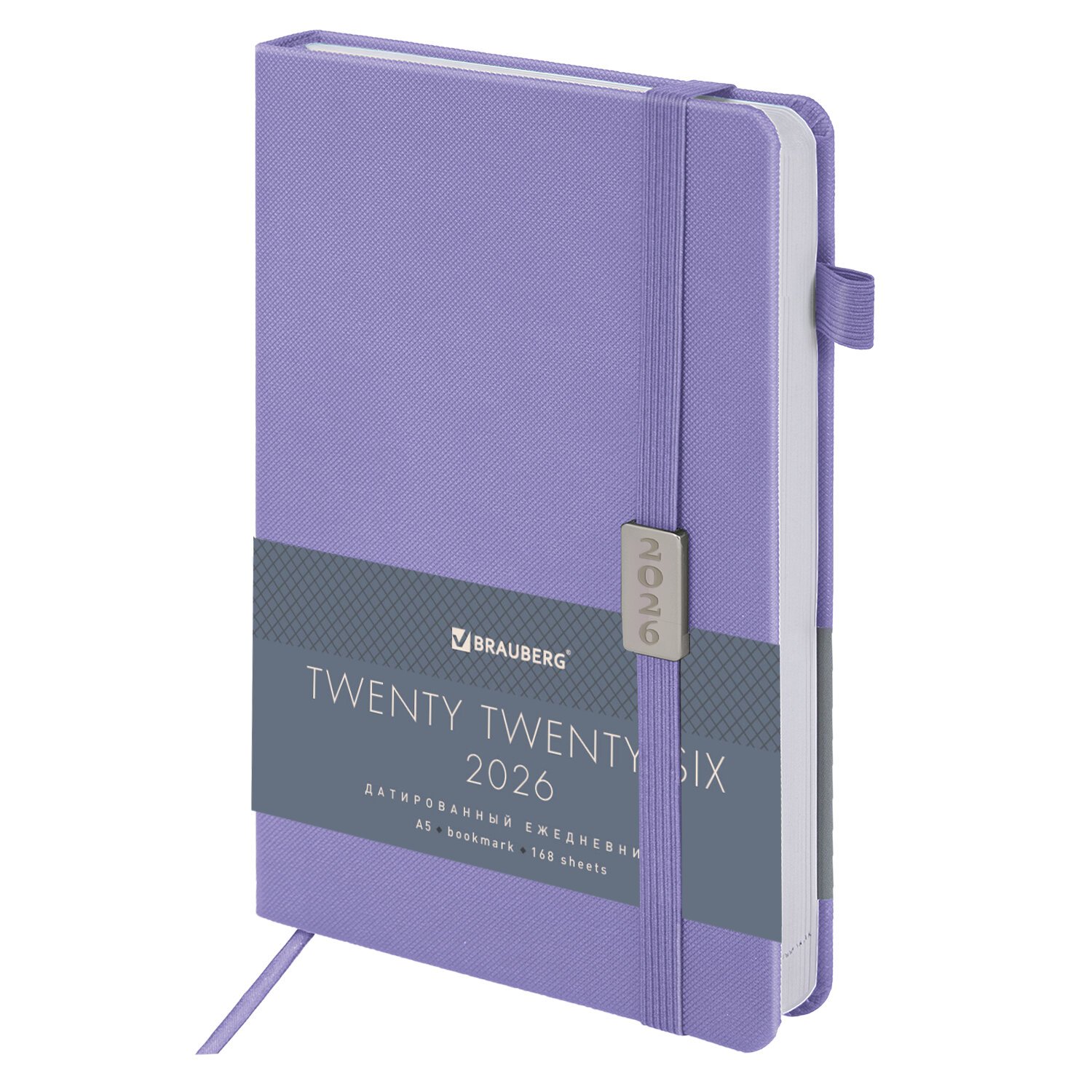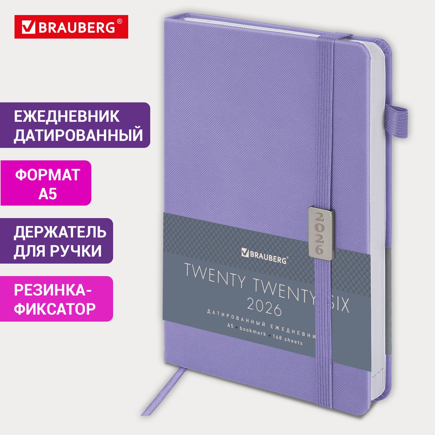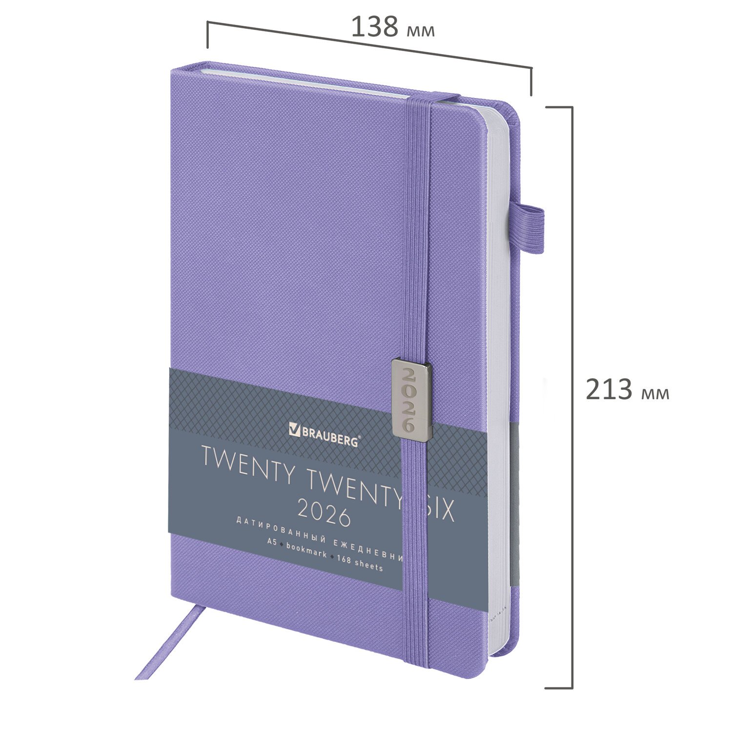 Ежедневник датированный 2026 А5 138x213мм BRAUBERG Control, под кожу, держатель для ручки, сиреневый, 117125