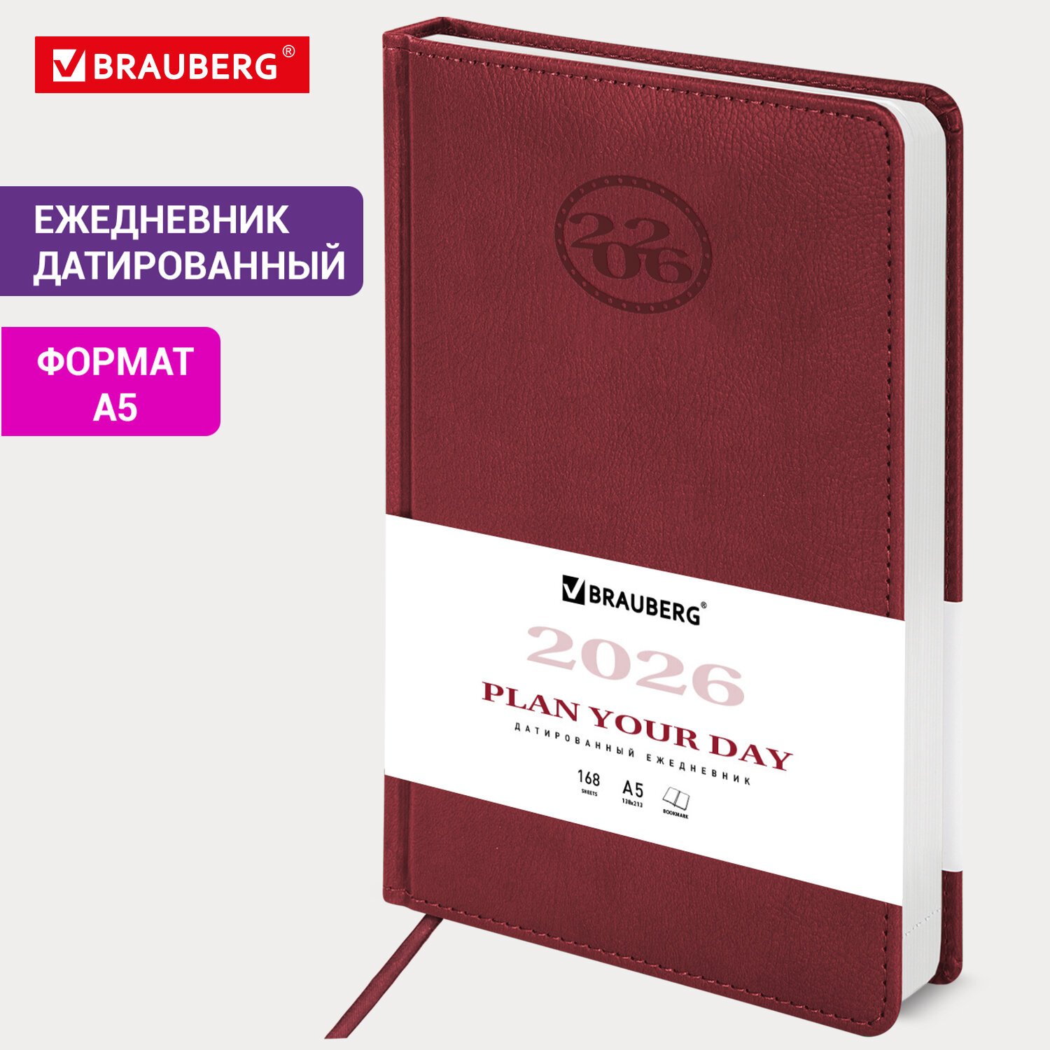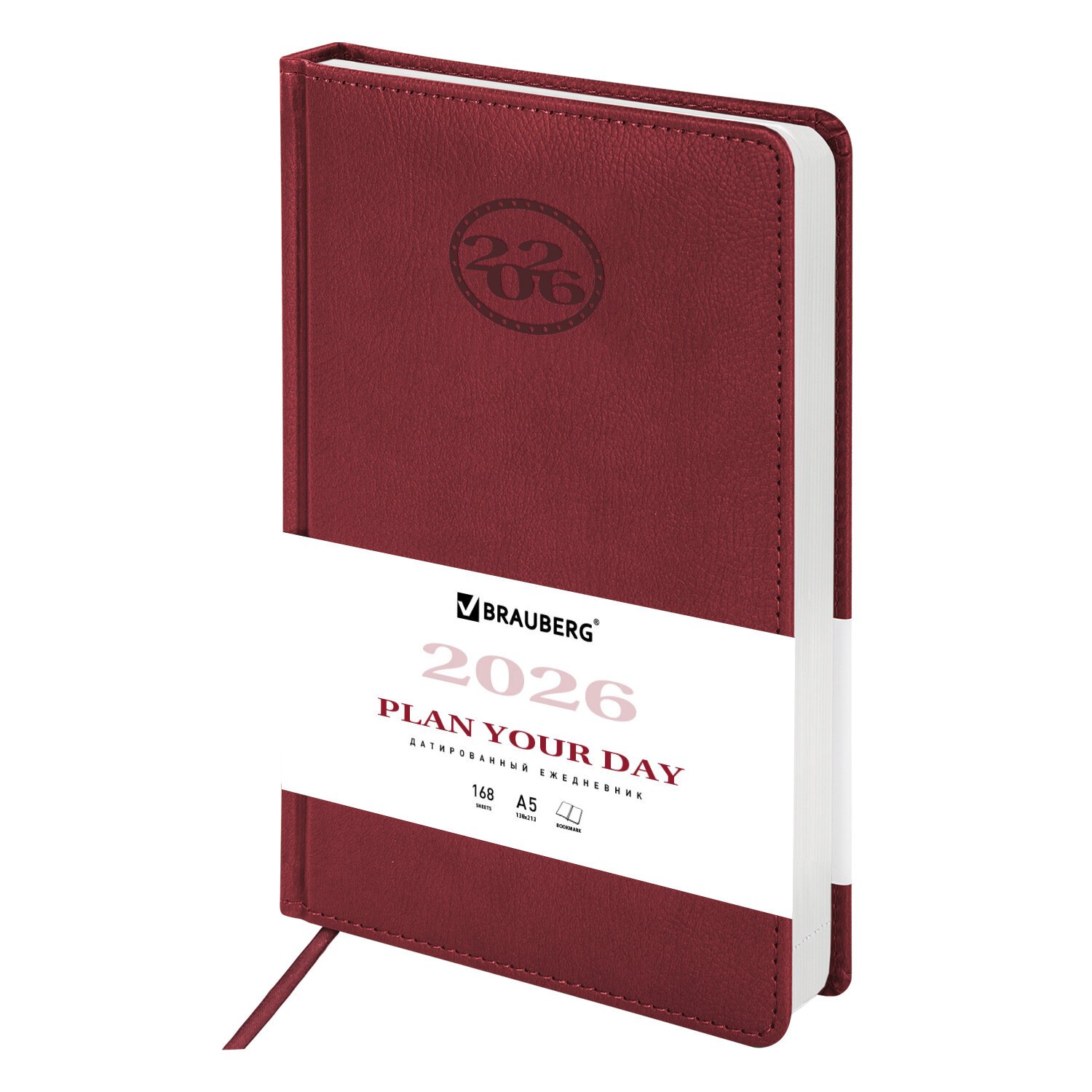 Ежедневник датированный 2026 А5 138x213мм BRAUBERG Favorite, под кожу, бордовый, 117034