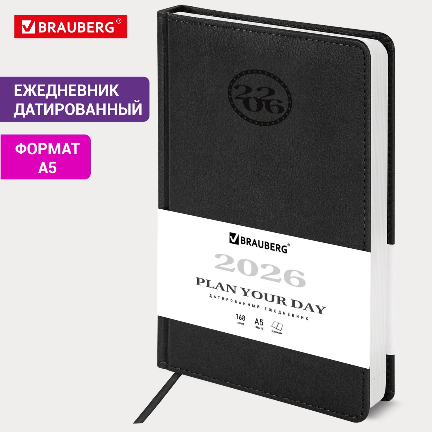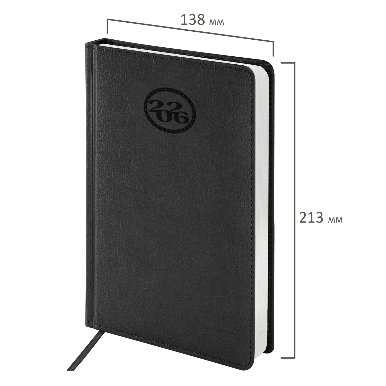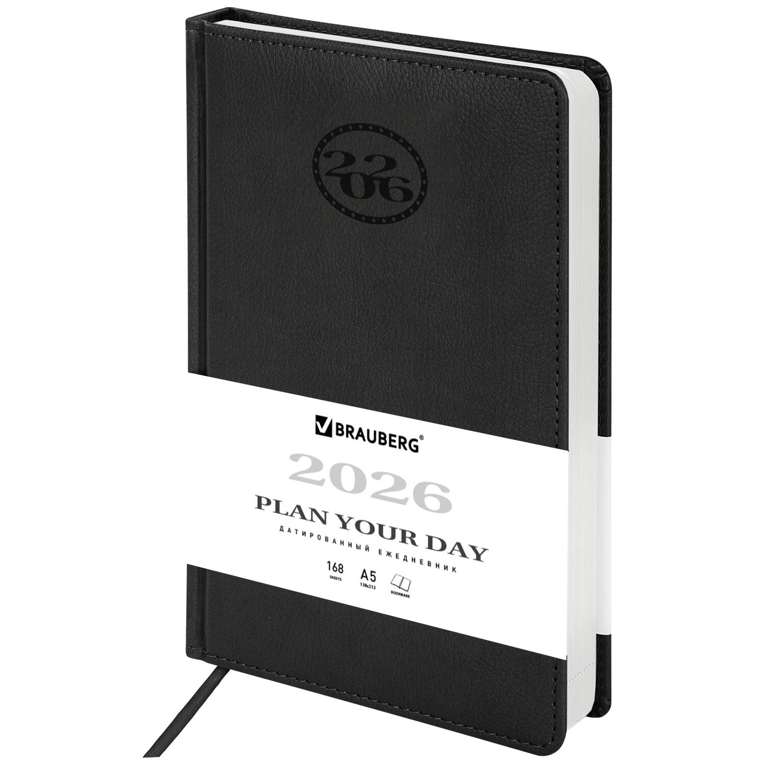 Ежедневник датированный 2026 А5 138x213мм BRAUBERG Stylish, под кожу гибкий, черный, 117097