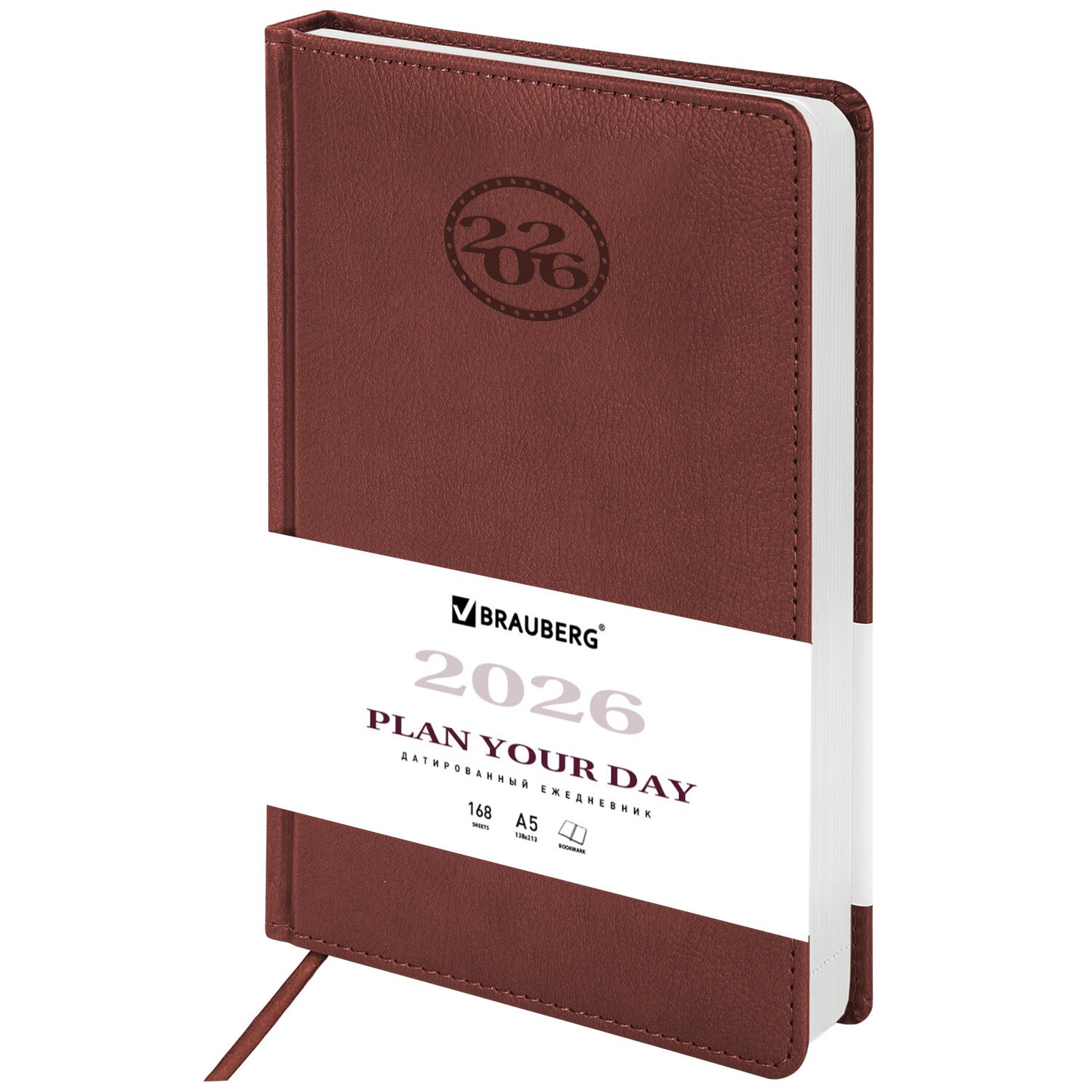 Ежедневник датированный 2026 А5 138x213мм BRAUBERG Favorite, под кожу, коричневый, 117035