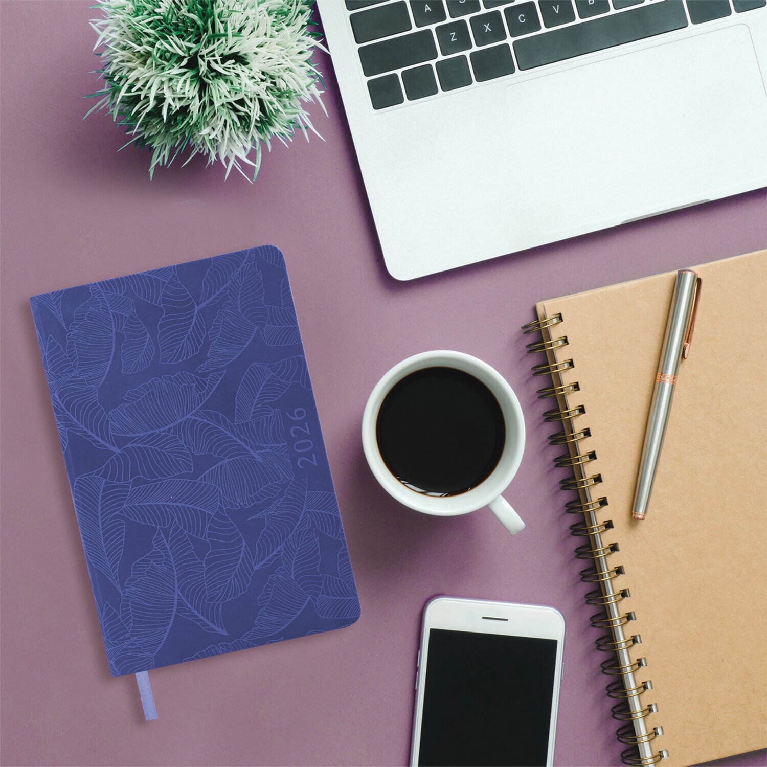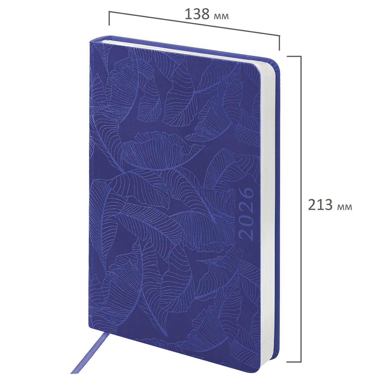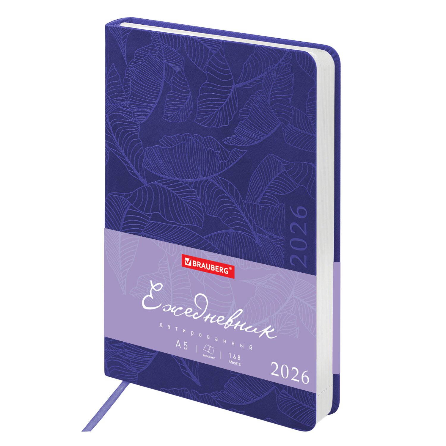 Ежедневник датированный 2026 А5 138x213мм BRAUBERG Foliage, под кожу гибкий, сиреневый, 117131
