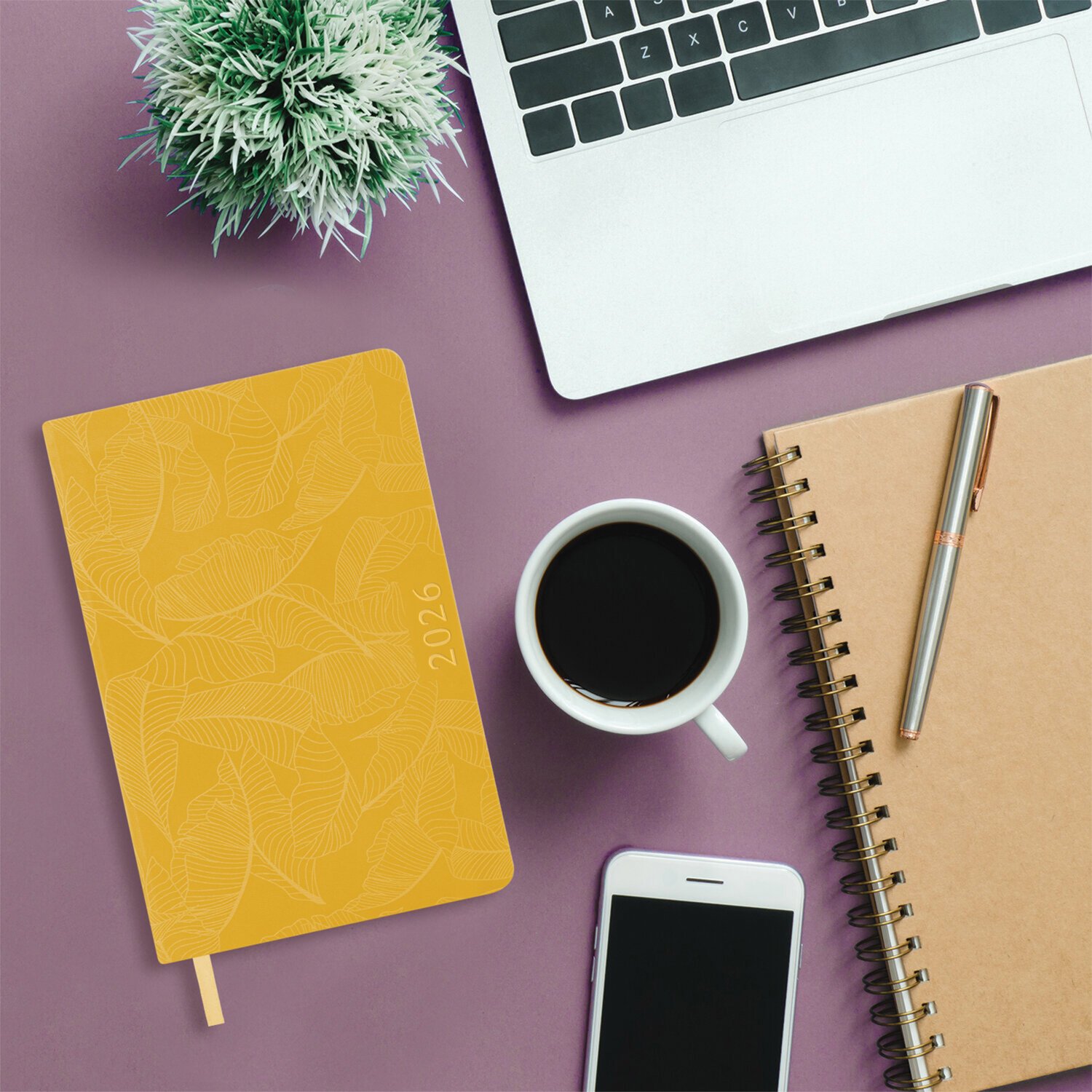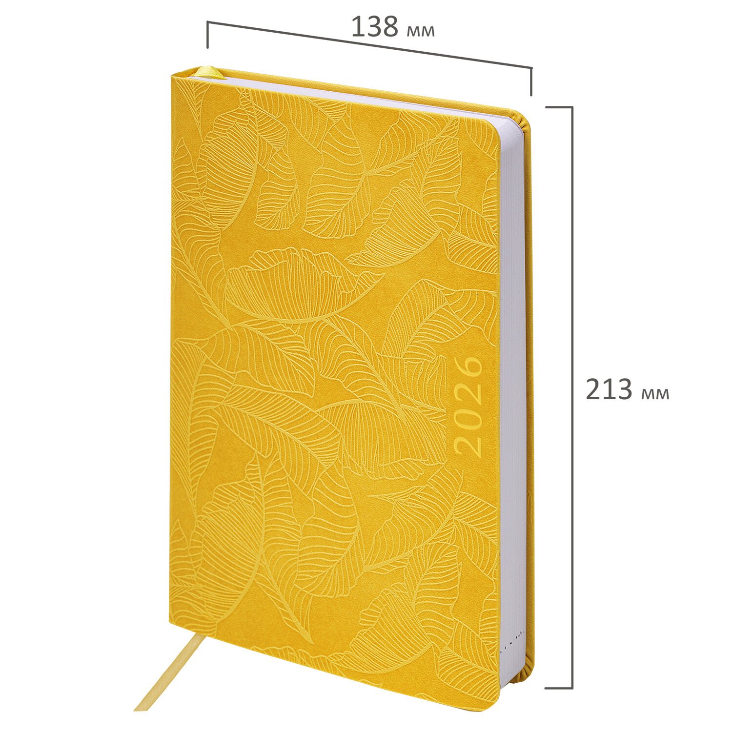 Ежедневник датированный 2026 А5 138x213мм BRAUBERG Foliage, под кожу гибкий, желтый, 117130