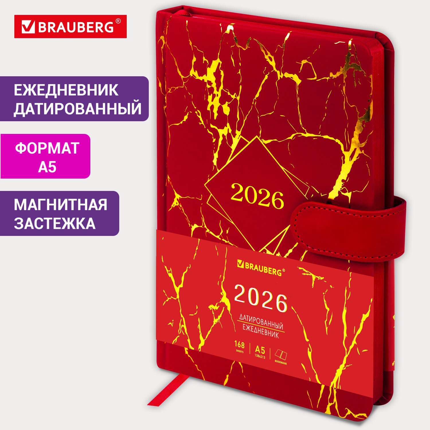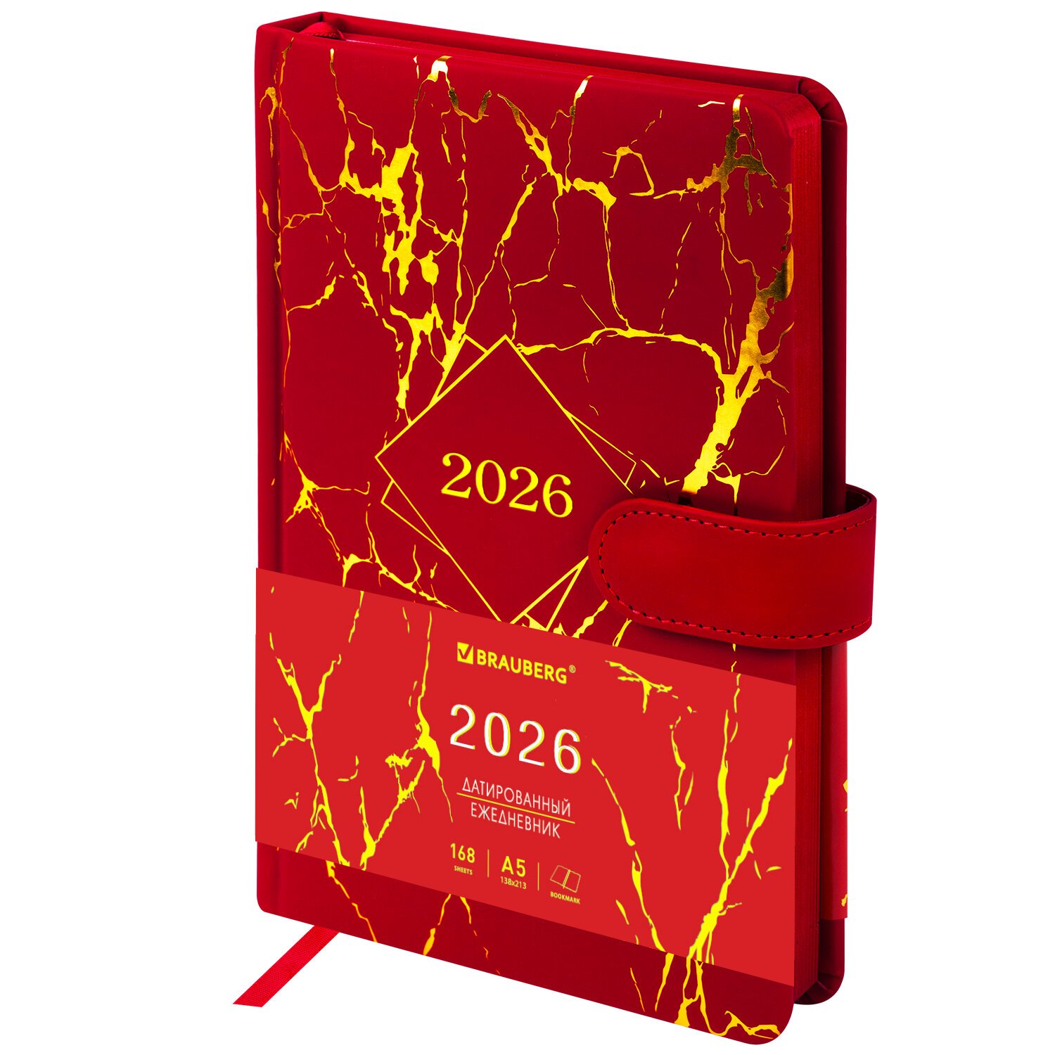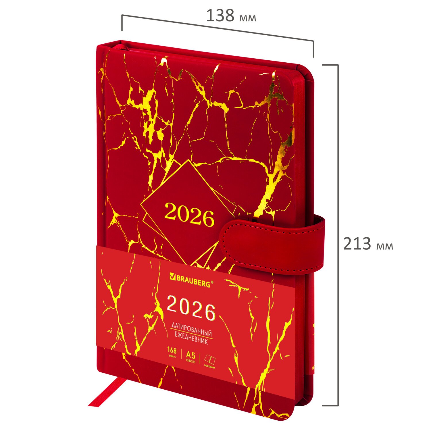 Ежедневник датированный 2026 А5 138x213мм BRAUBERG Goldy, под кожу, цветной срез, красный, 117471