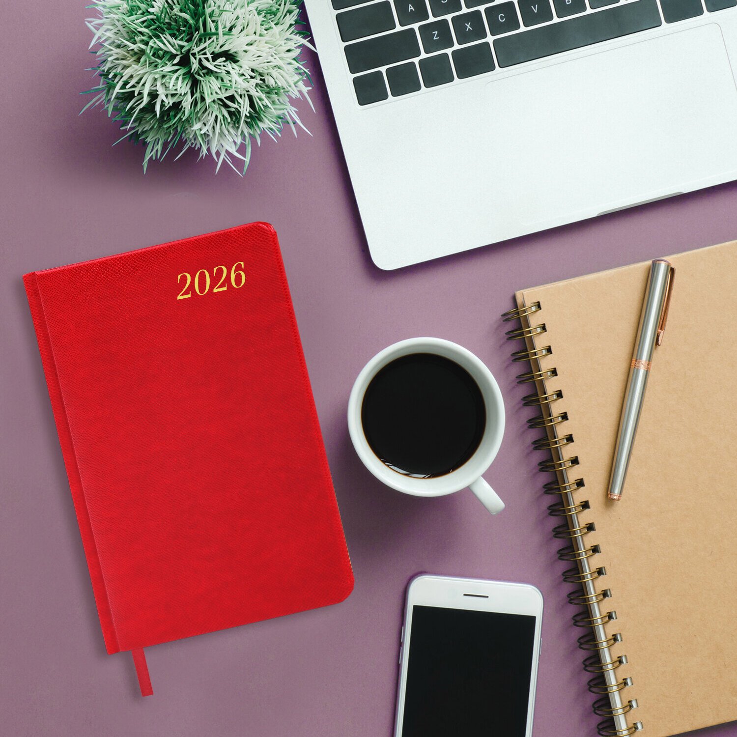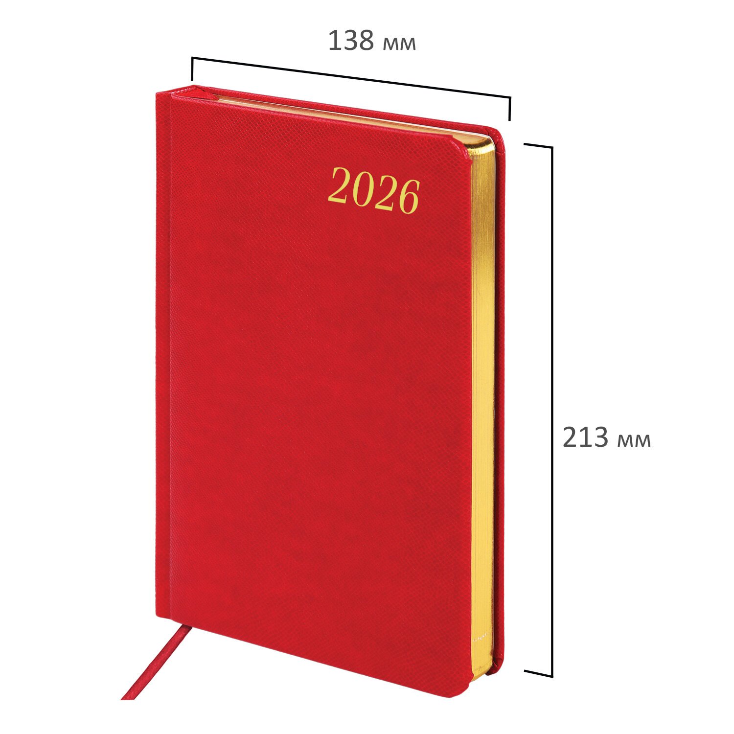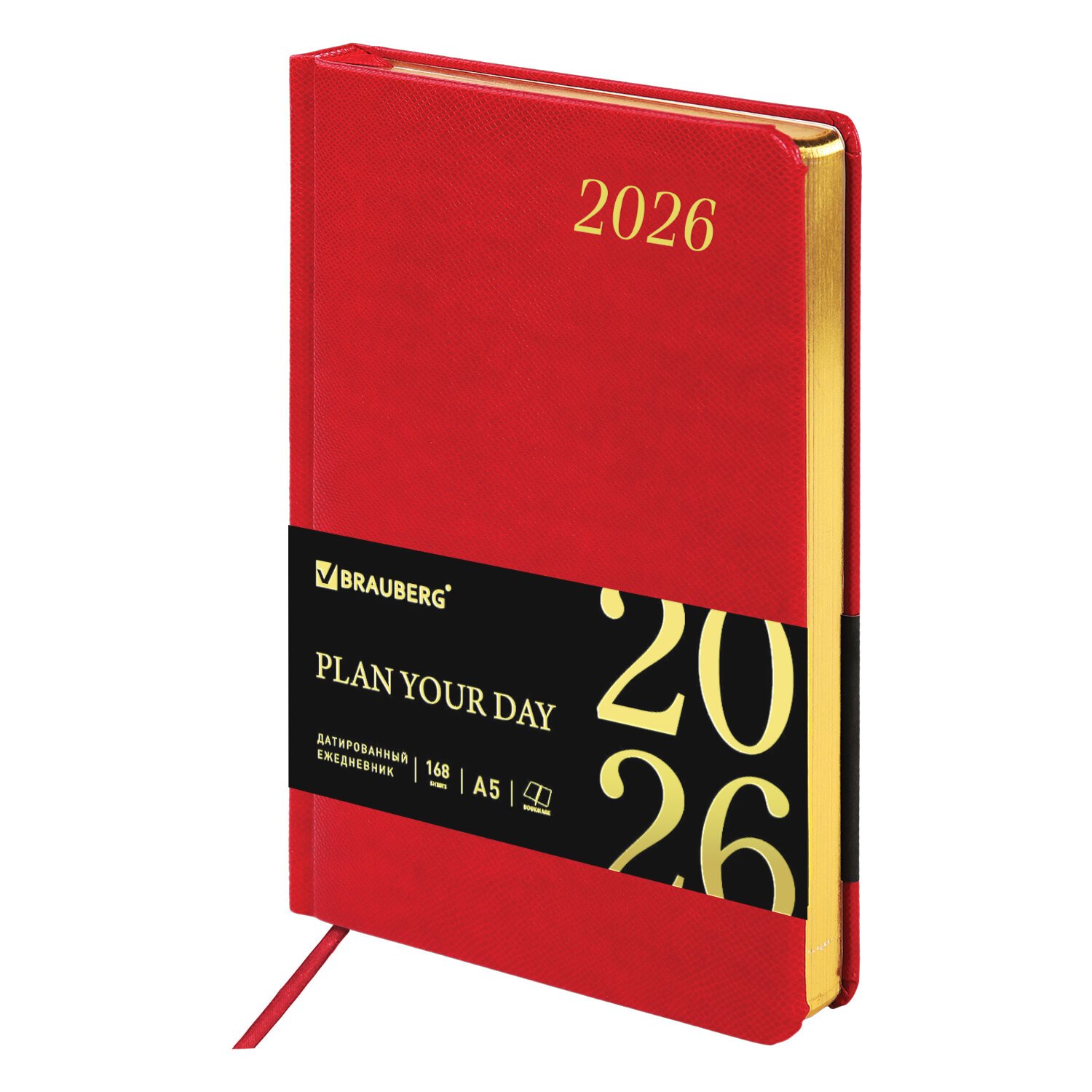 Ежедневник датированный 2026, А5, 138х213 мм, BRAUBERG "Plain", под кожу, резинка, держатель для ручки, красный, 117508