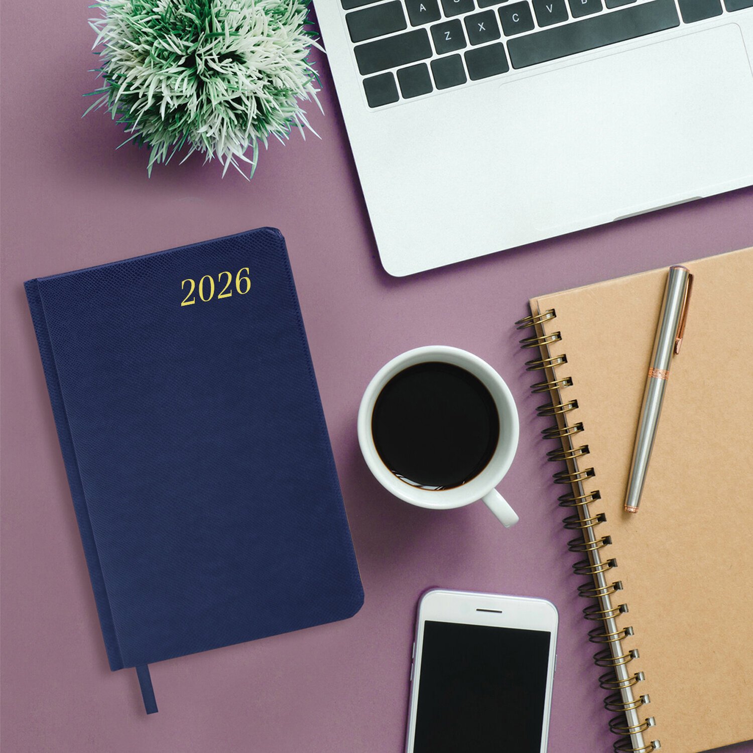 Ежедневник датированный 2026, А5, 138х213 мм, BRAUBERG "Plain", под кожу, резинка, держатель для ручки, фиолетовый, 117509