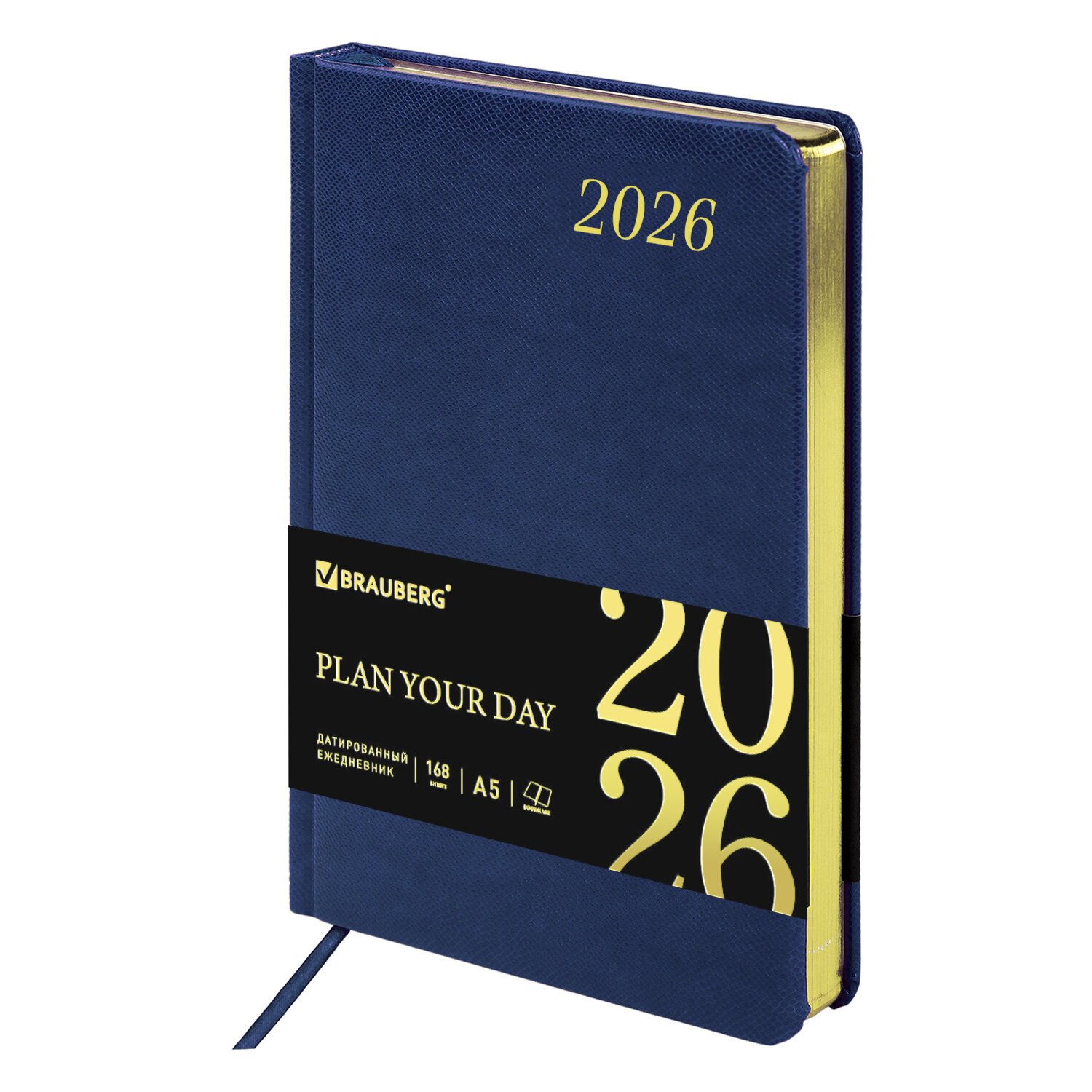 Ежедневник датированный 2026 А5 138x213мм BRAUBERG Optimal, под кожу, резинка, держатель для ручки, черный, 117465