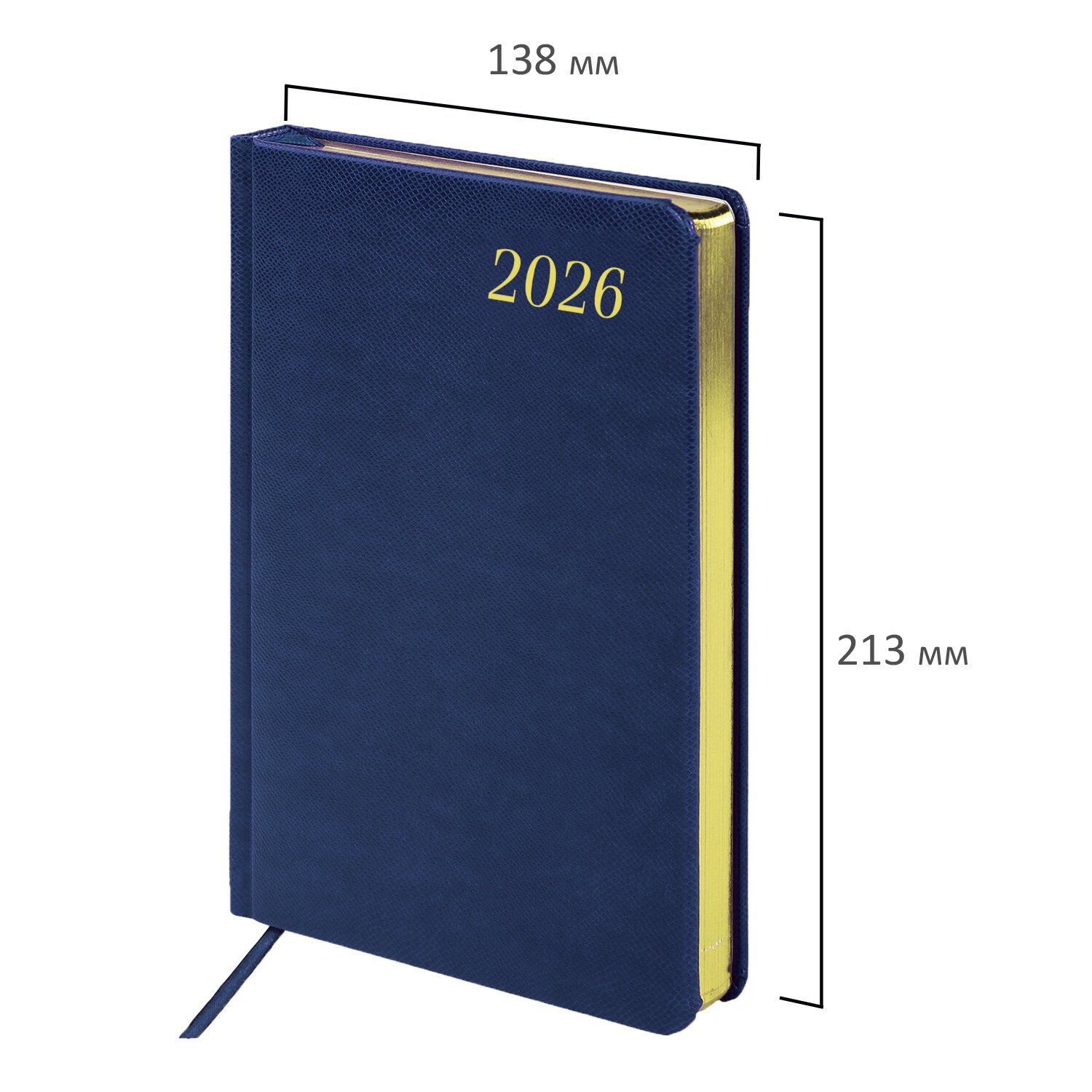 Ежедневник датированный 2026 А5 138x213мм BRAUBERG Iguana, под кожу, синий, 117056