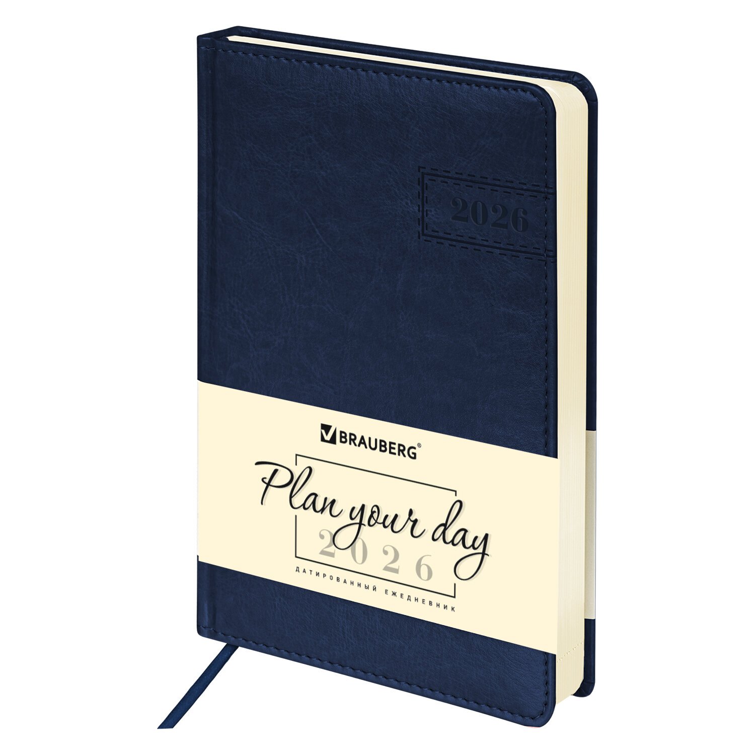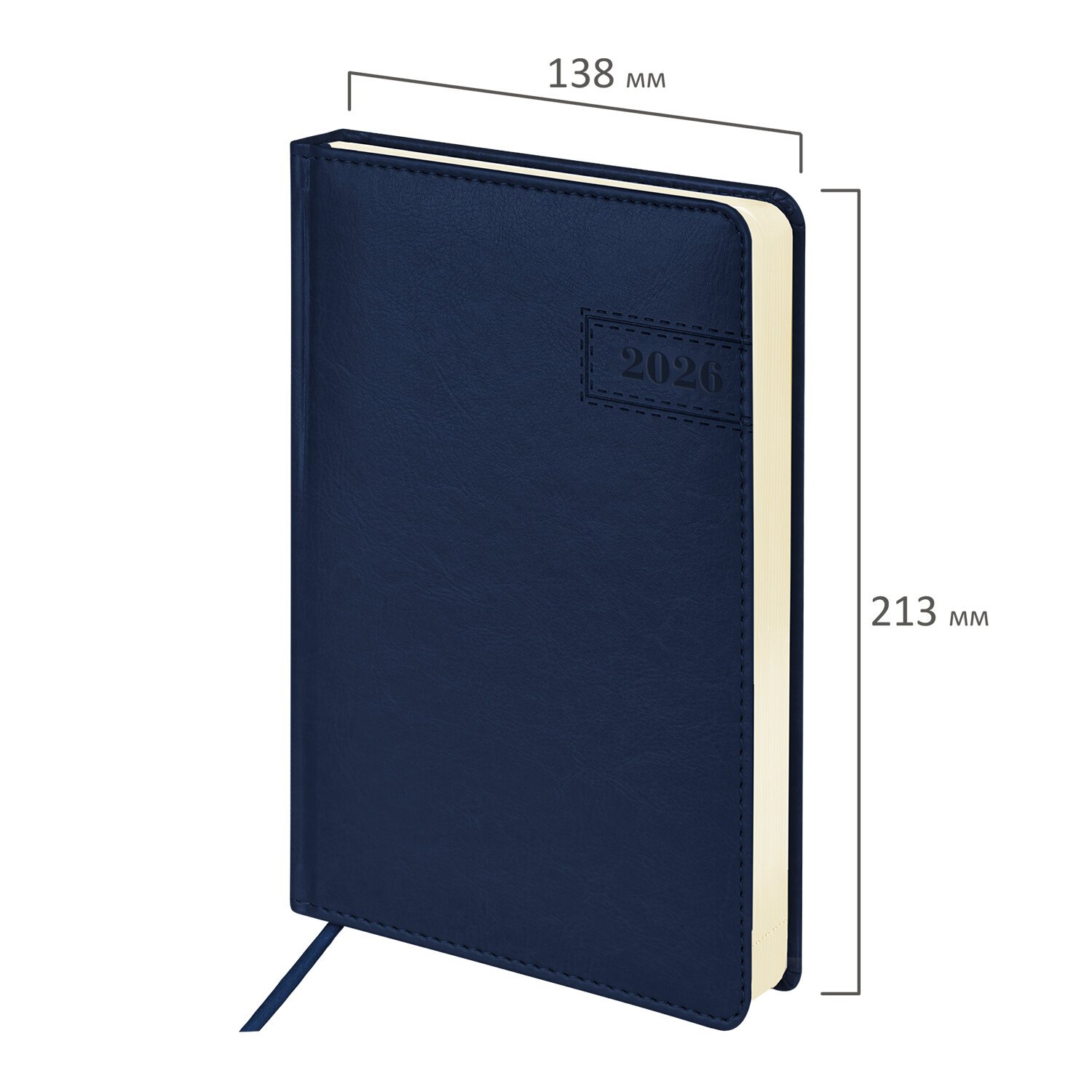 Ежедневник датированный 2026 А5 138x213мм BRAUBERG Imperial, под кожу, синий, 117062