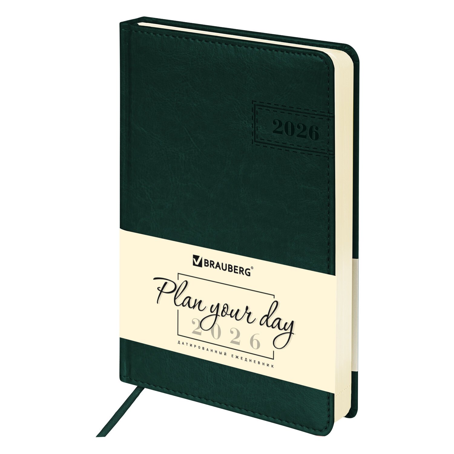 Ежедневник датированный 2026 А5 138x213мм BRAUBERG Imperial, под кожу, темно-зеленый, 117066