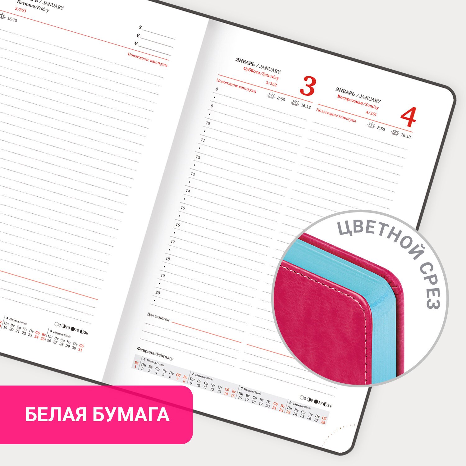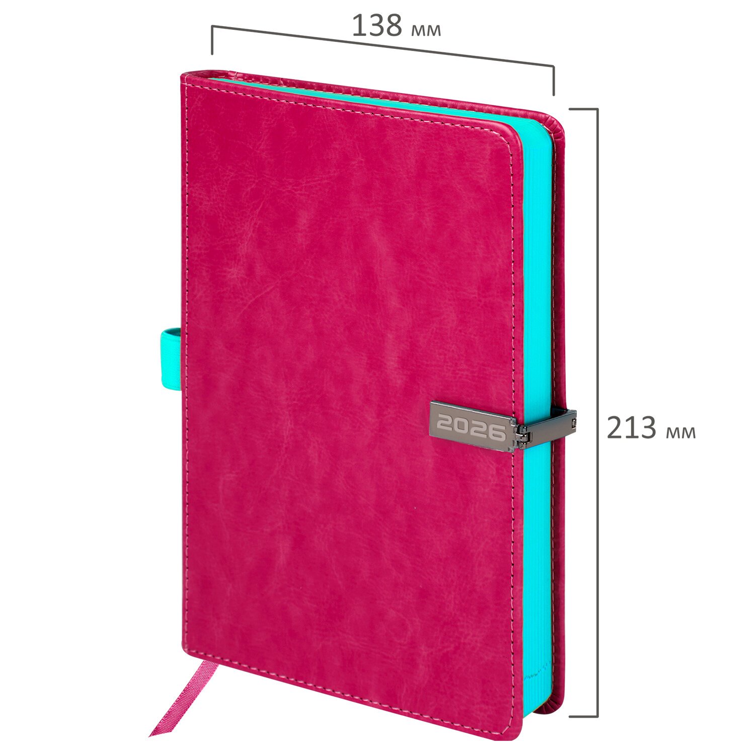 Ежедневник датированный 2026 А5 138x213мм BRAUBERG Inspiration, под кожу, цветной срез, розовый, 117478