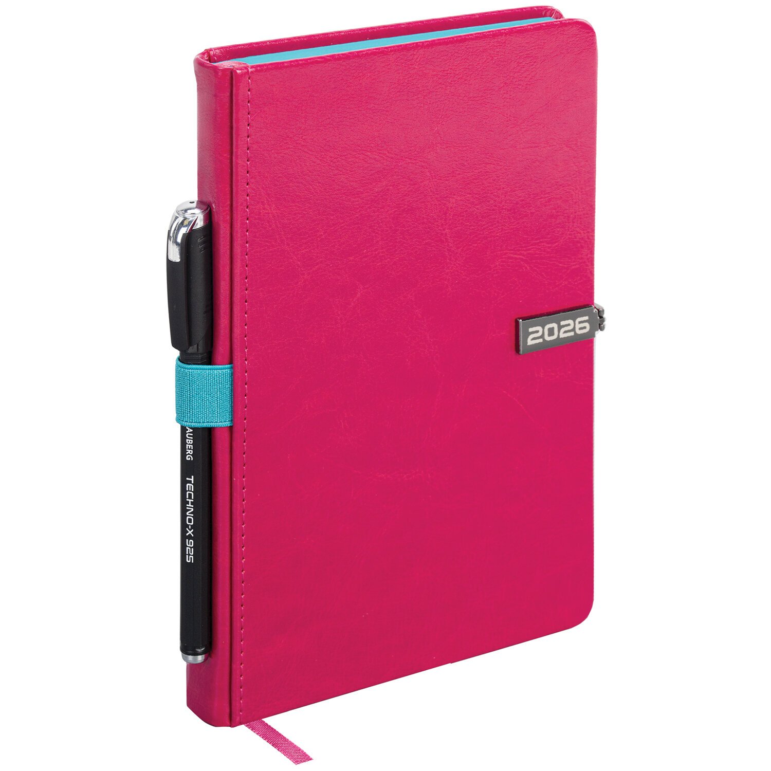 Твердая обложка стилизована под гладкую кожу розового цвета. Материал обложки подходит для горячего тиснения. Для удобства пользования ежедневник снабжен держателем для ручки. Цветной срез в контраст обложки придает ежедневнику особый шарм. Дополнением является закладка-ляссе, с помощью которой при необходимости можно быстро открыть ежедневник на нужной странице. Ежедневник снабжен обширным справочным материалом. В конце имеются 4 страницы для записей и заметок.