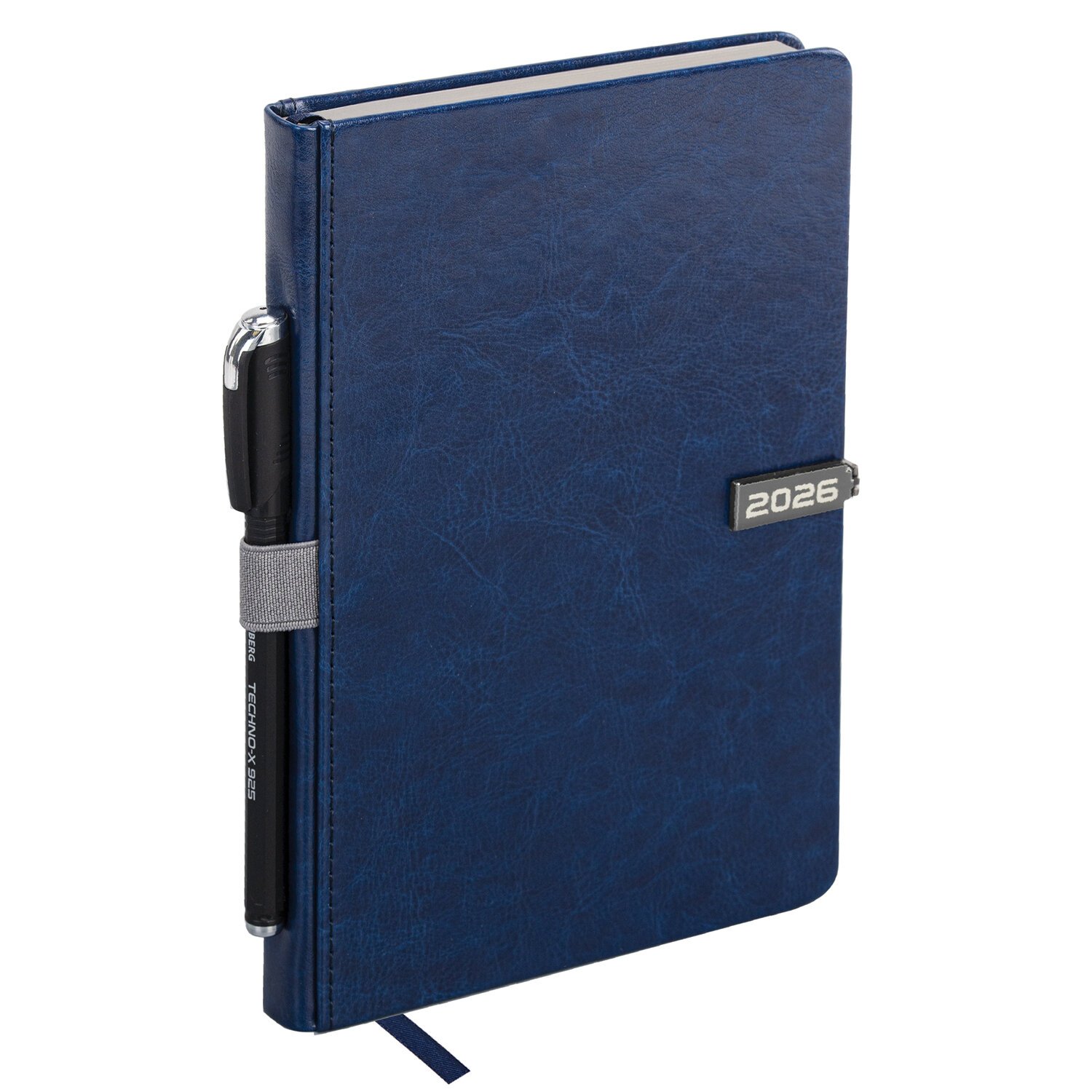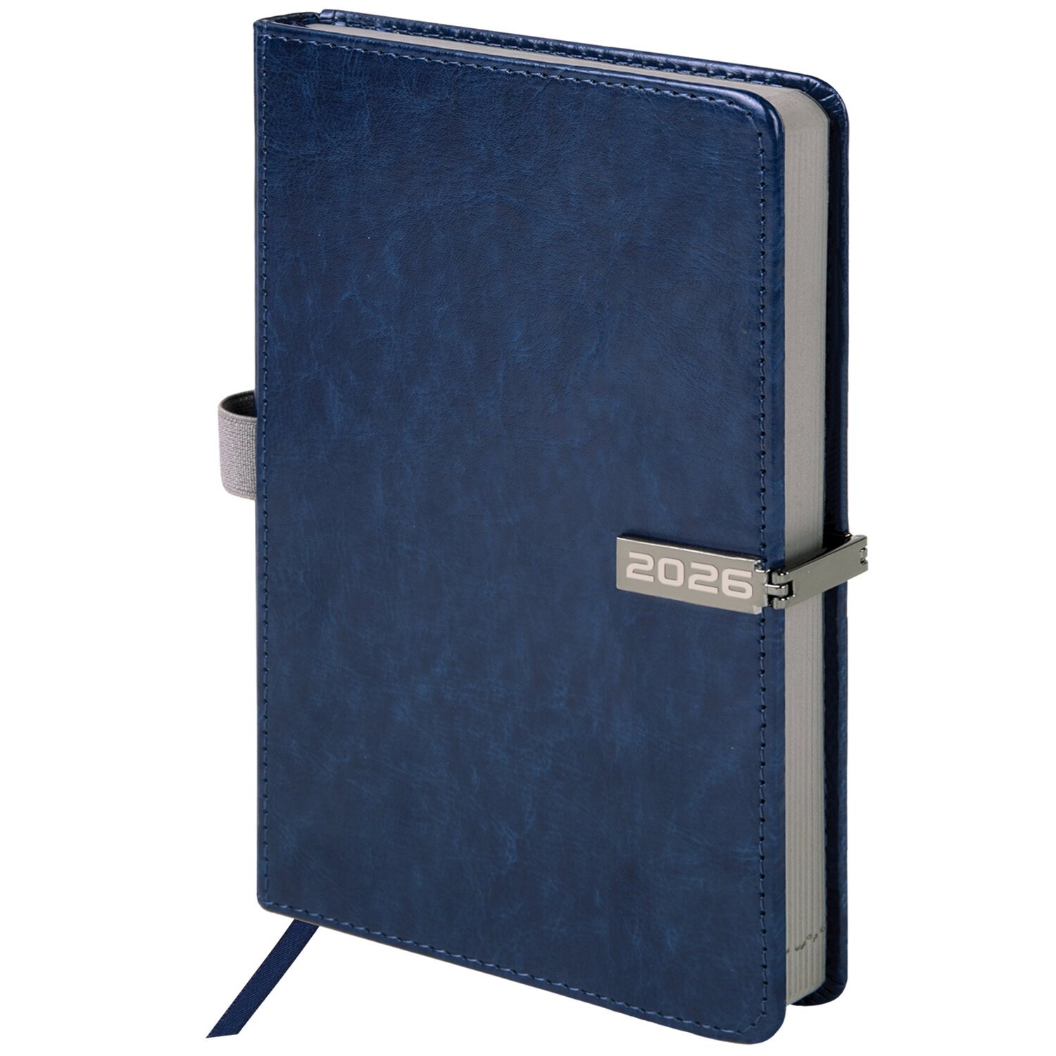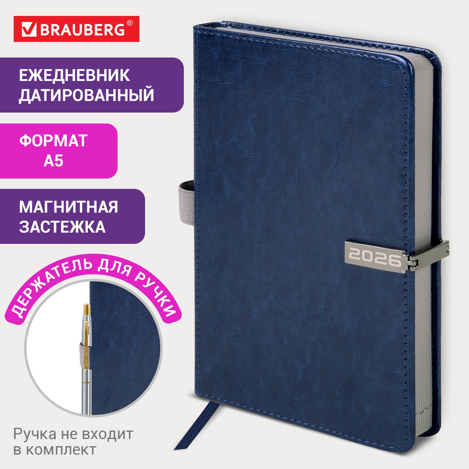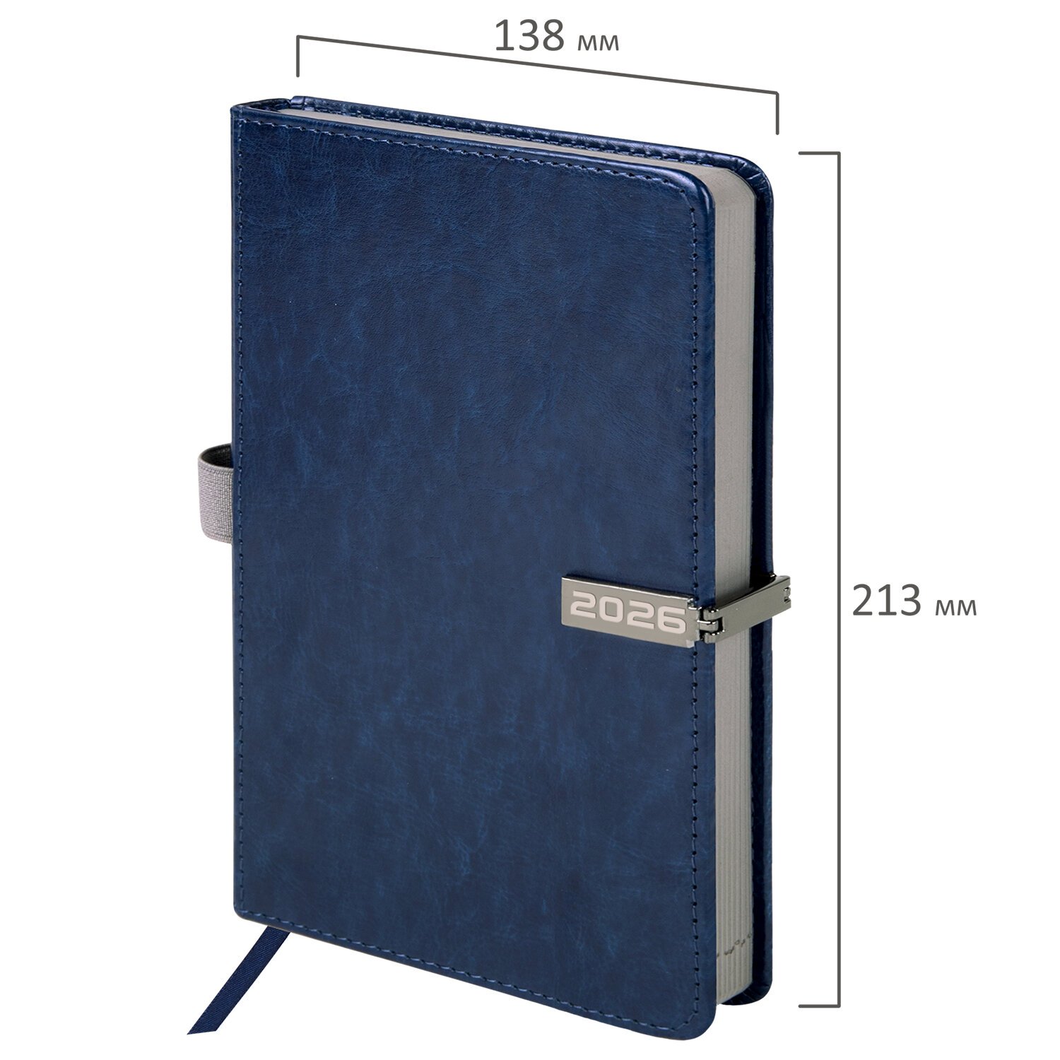 Ежедневник датированный 2026 А5 150x213мм BRAUBERG Up, под кожу софт-тач, держатель для ручки, синий, 117118