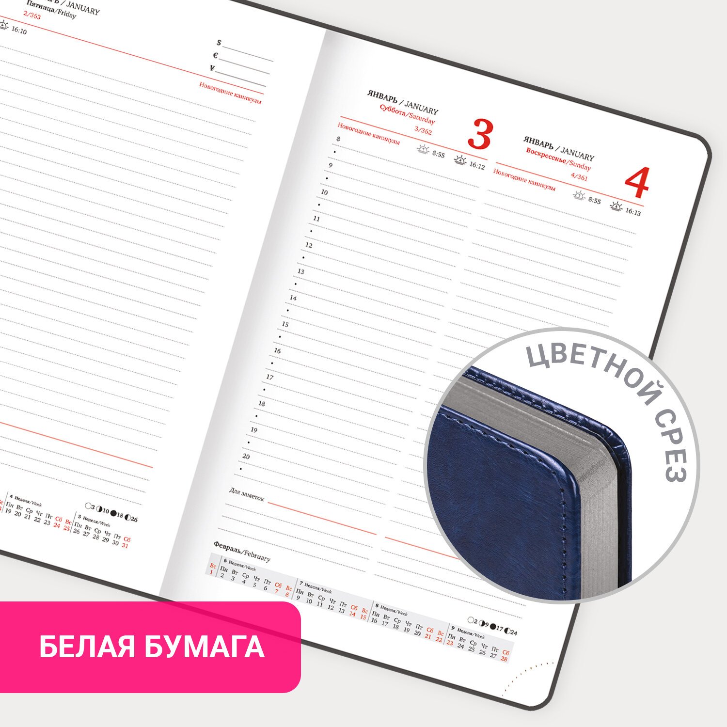 Ежедневник датированный 2026 А5 138x213мм BRAUBERG Inspiration, под кожу, цветной срез, синий, 117474