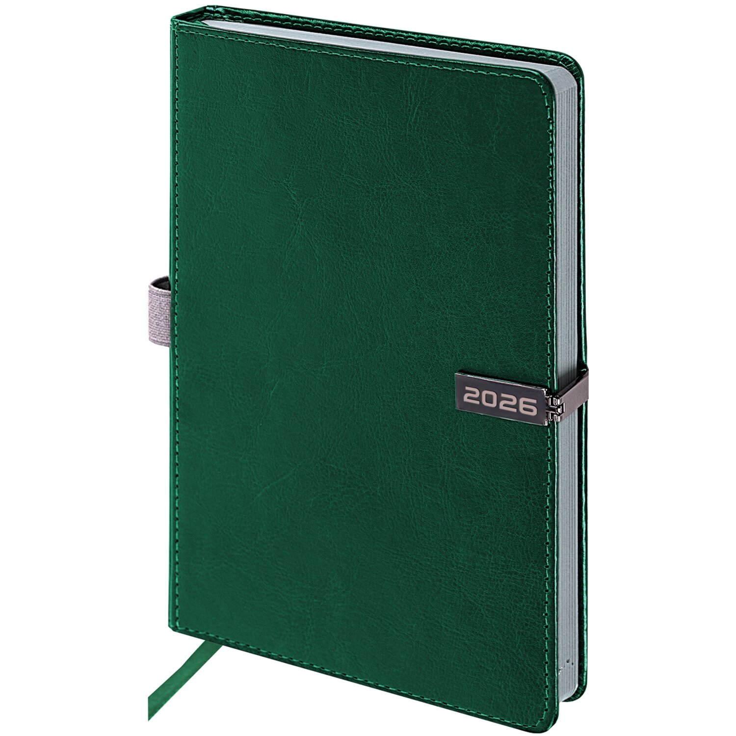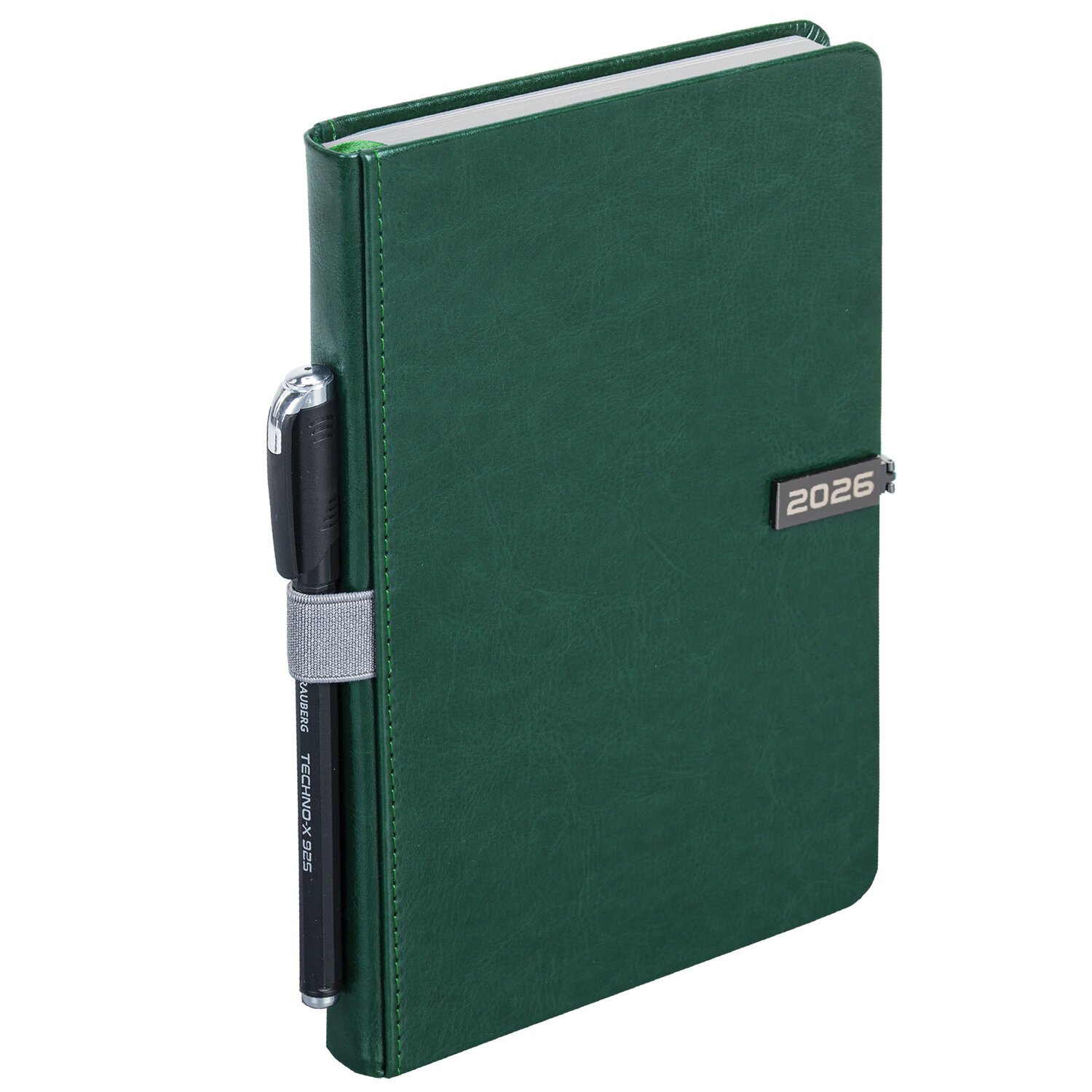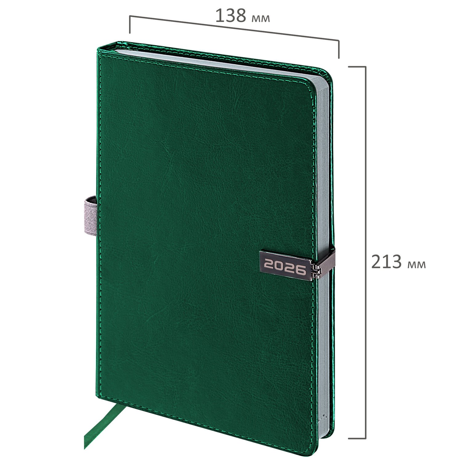 Ежедневник датированный 2026 А5 150x213мм BRAUBERG Up, под кожу софт-тач, держатель для ручки, зеленый, 117117