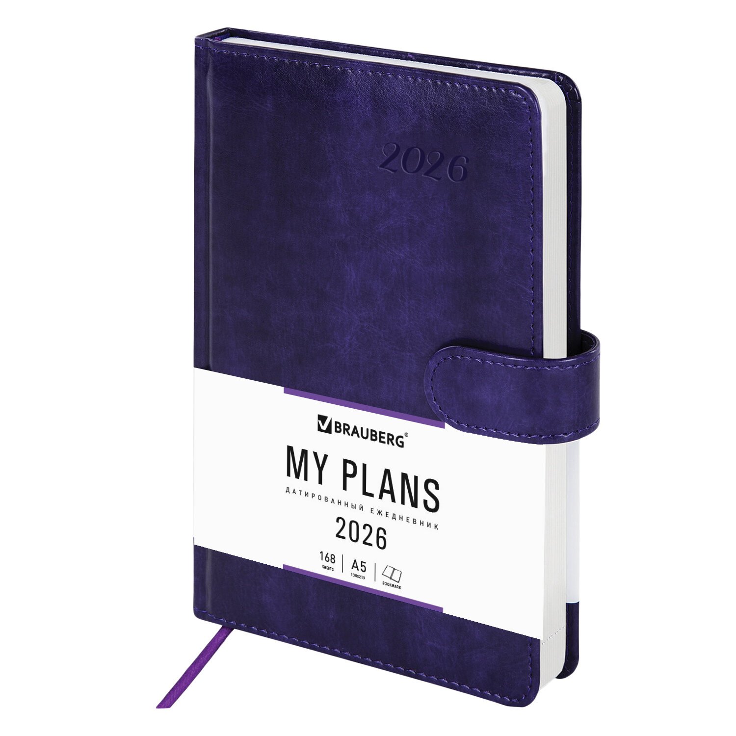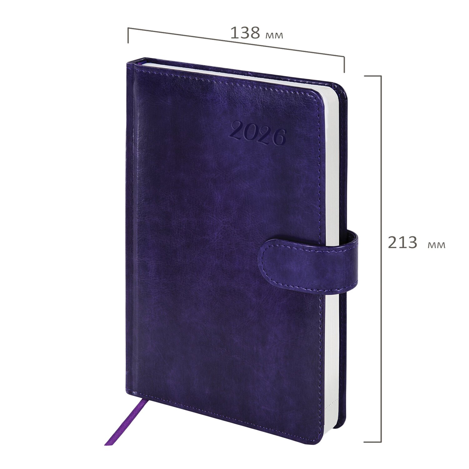 Ежедневник датированный 2026 А5 138x213мм BRAUBERG Legend, под кожу, застежка, фиолетовый, 117069