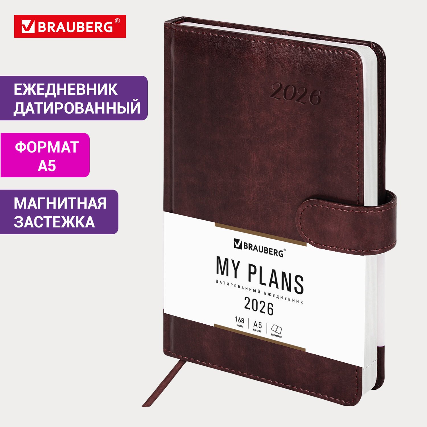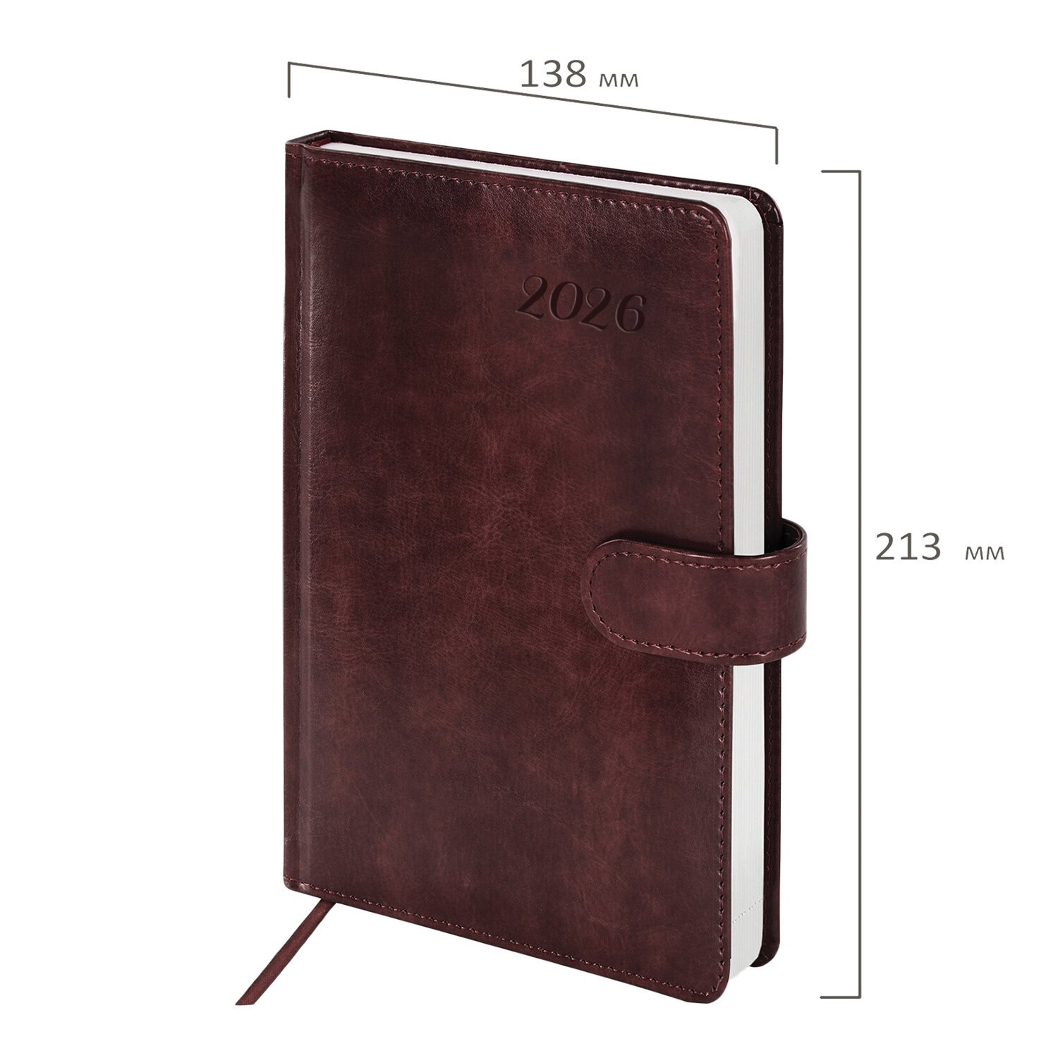 Ежедневник датированный 2026 А5 138x213мм BRAUBERG Legend, под кожу, застежка, коричневый, 117071