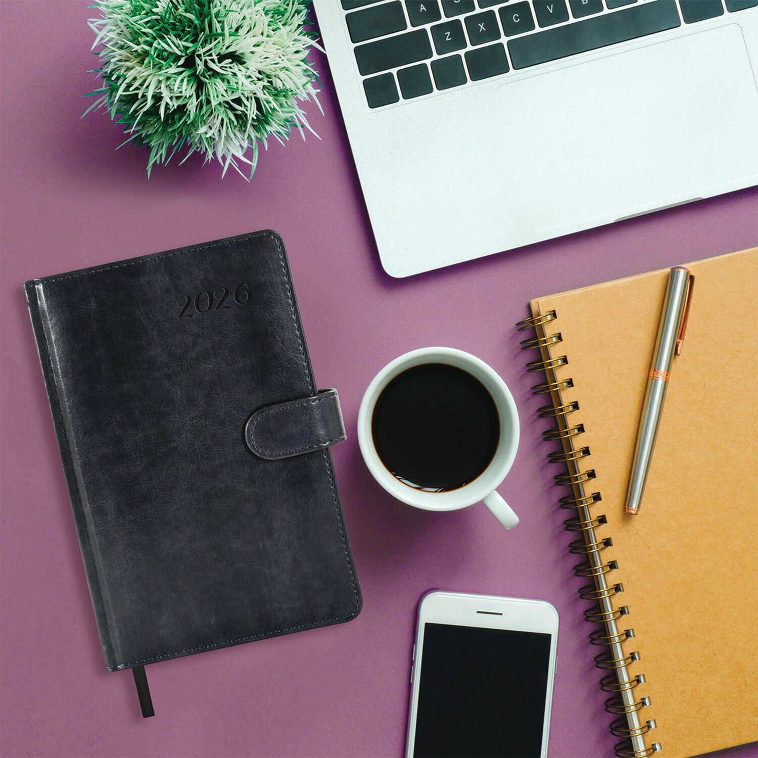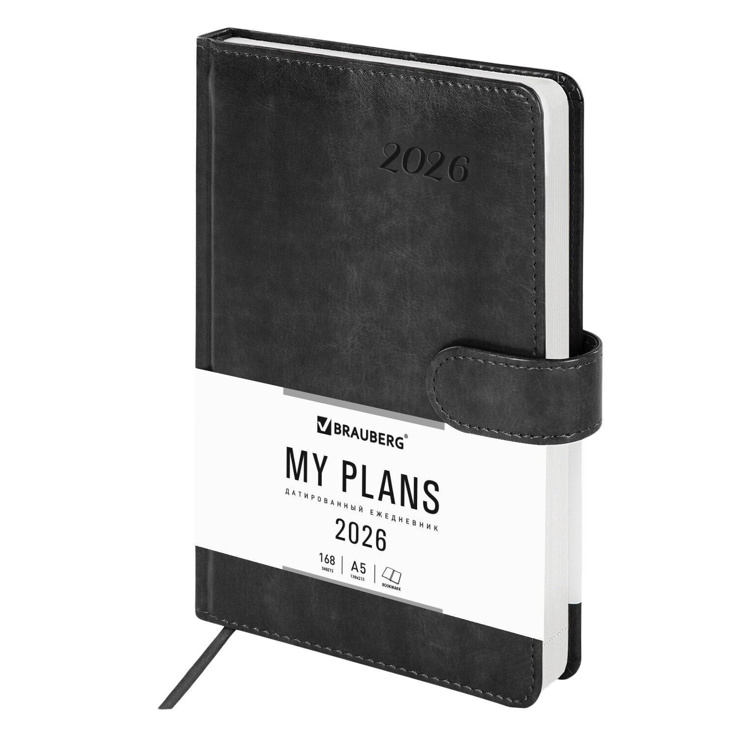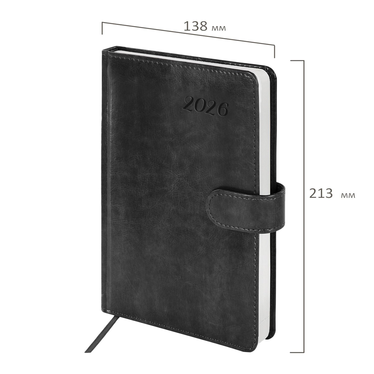 Ежедневник датированный 2026 А5 138x213мм BRAUBERG Legend, под кожу, застежка, черный, 117070