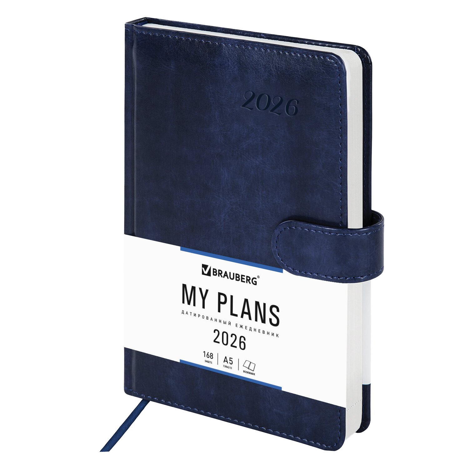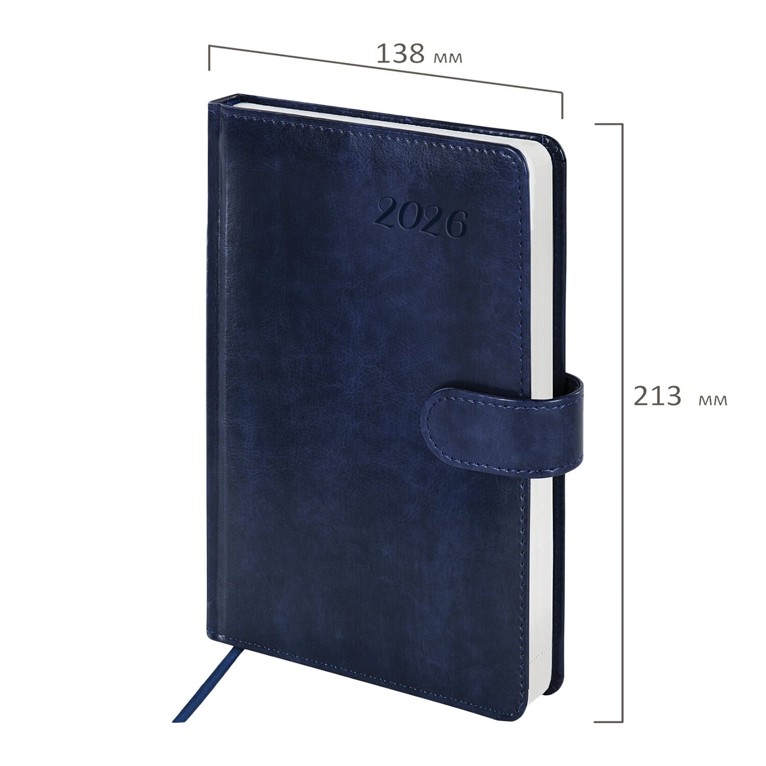 Ежедневник датированный 2026 А5 138x213мм BRAUBERG Legend, под кожу, застежка, синий, 117067